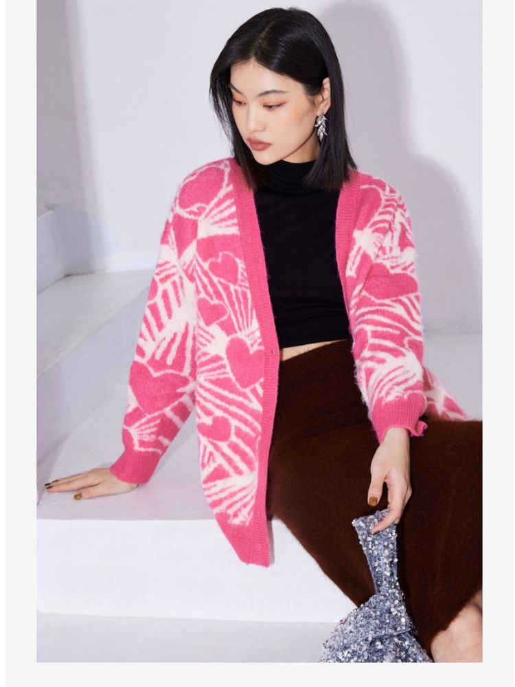 宽松中长款V领爱心针织衫开衫女气质百搭时尚春夏 010769
