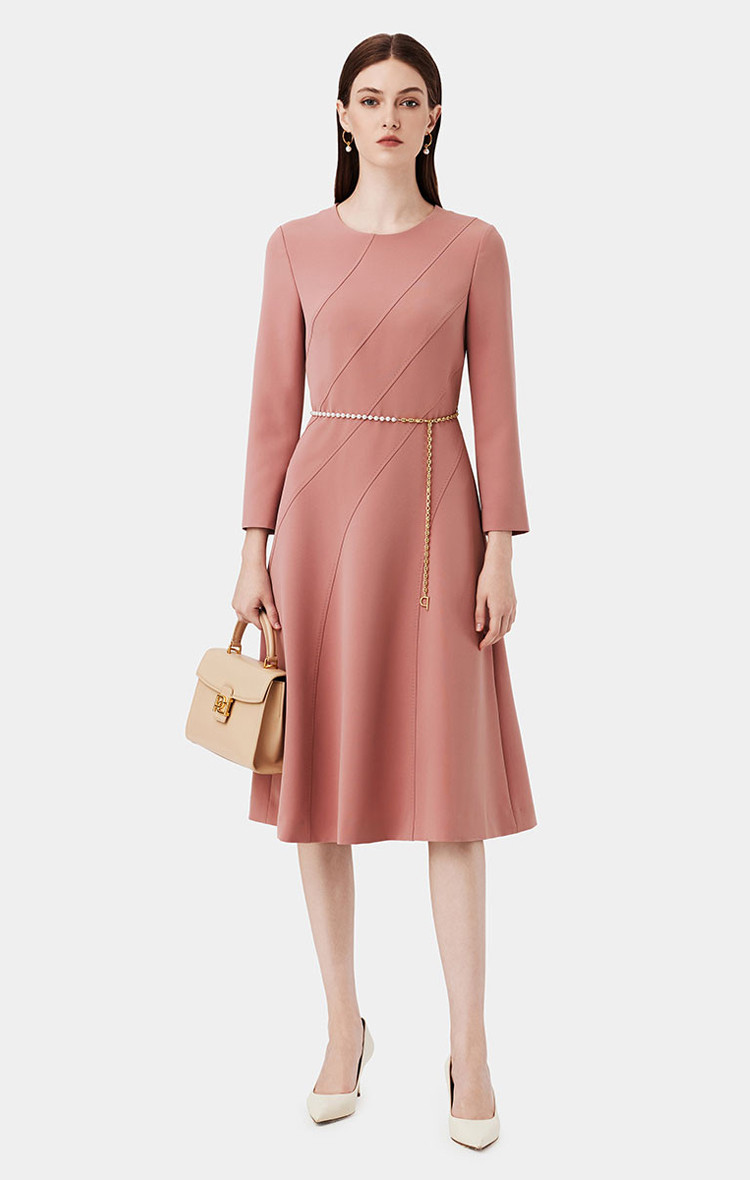 商品名称:宝姿女装秋季时尚气质舒适通勤中袖中长连衣裙 029706