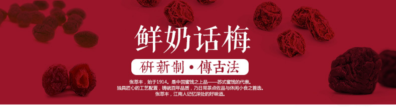 商品名称:张萃丰鲜奶味话梅果脯干果脯办公室休闲清香脆蜜饯出游小零食