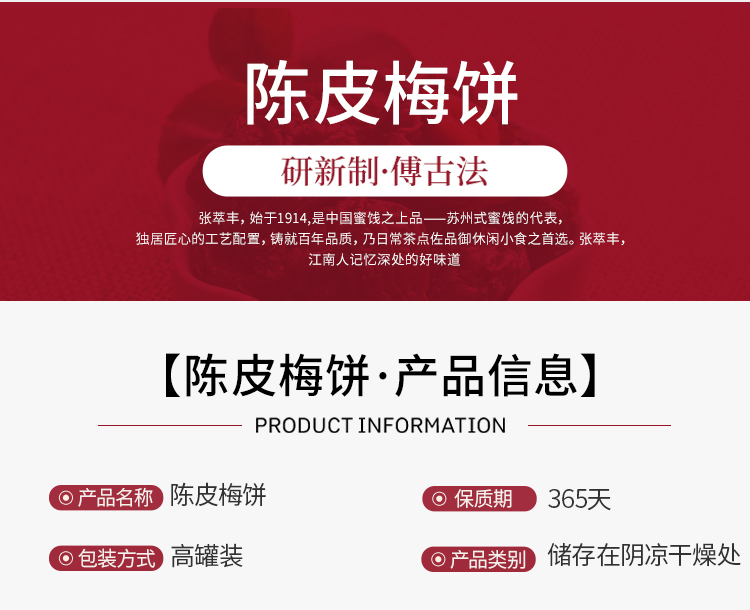 商品名称:张萃丰梅饼高罐装陈皮话梅肉原味无核酸梅子干甜休闲蜜饯解馋小零食