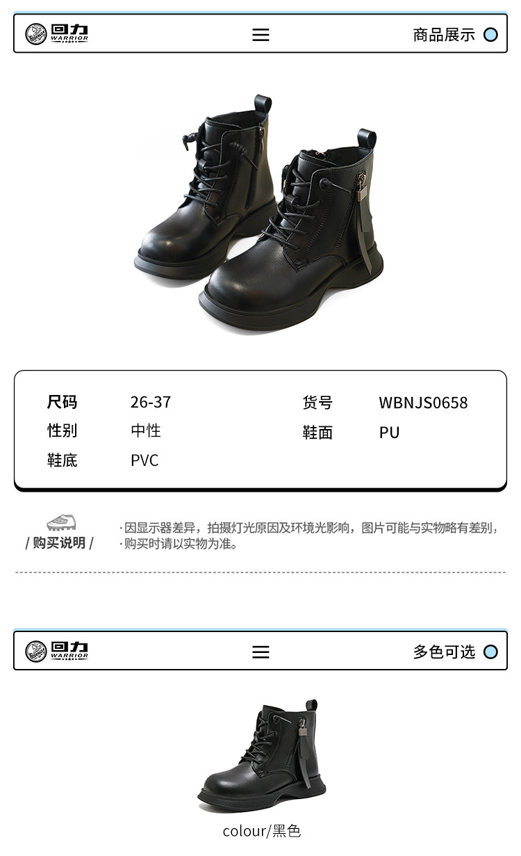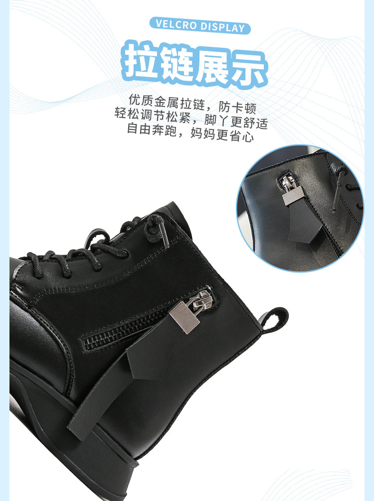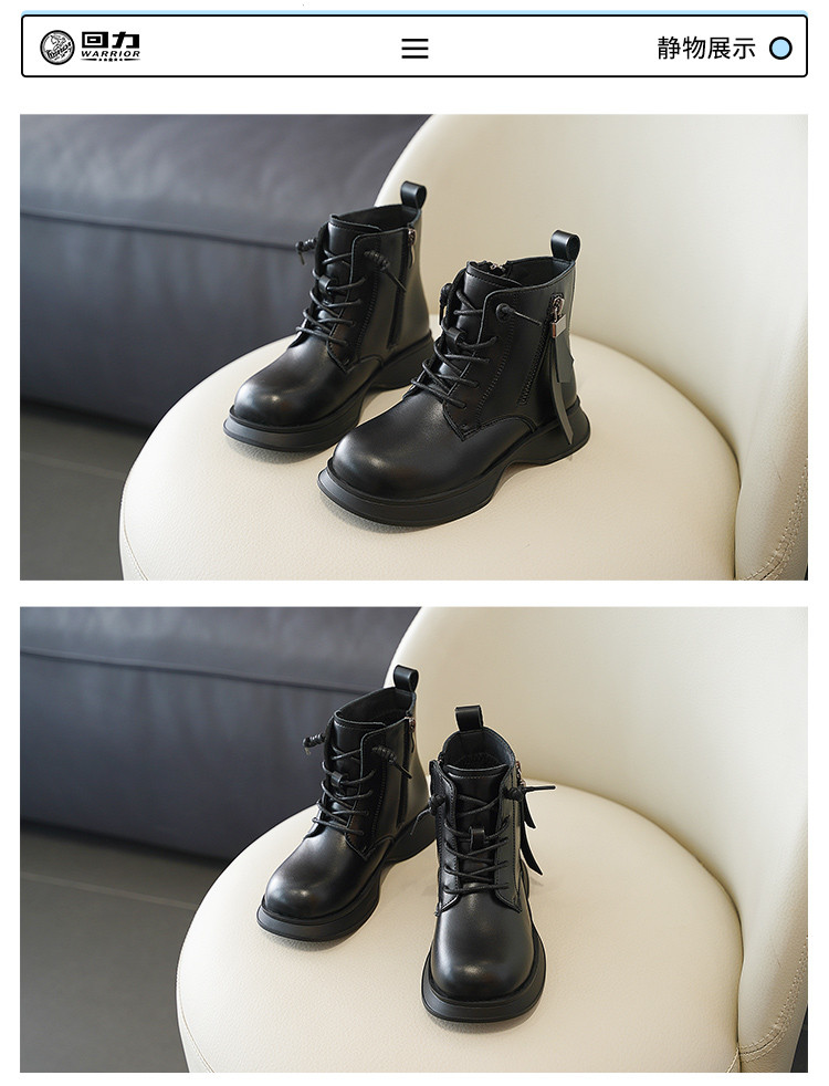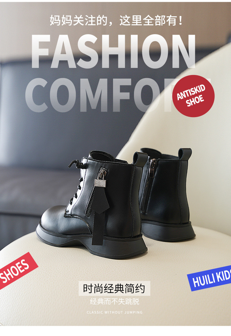 商品名称:【春季爆款】时尚英伦风儿童短靴舒适耐磨软底皮靴加绒保暖马丁靴 831555