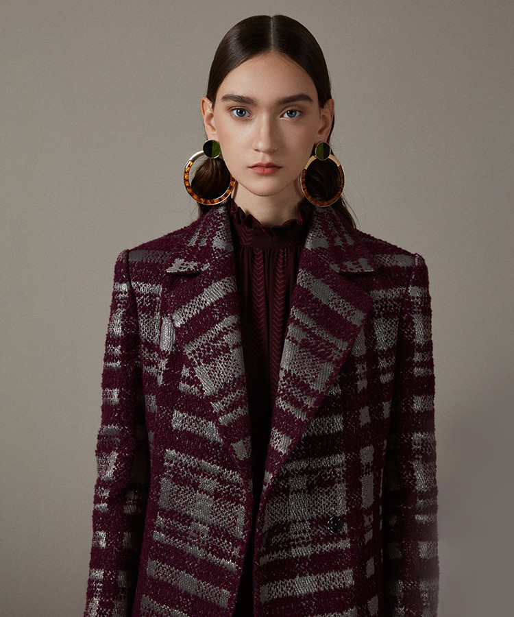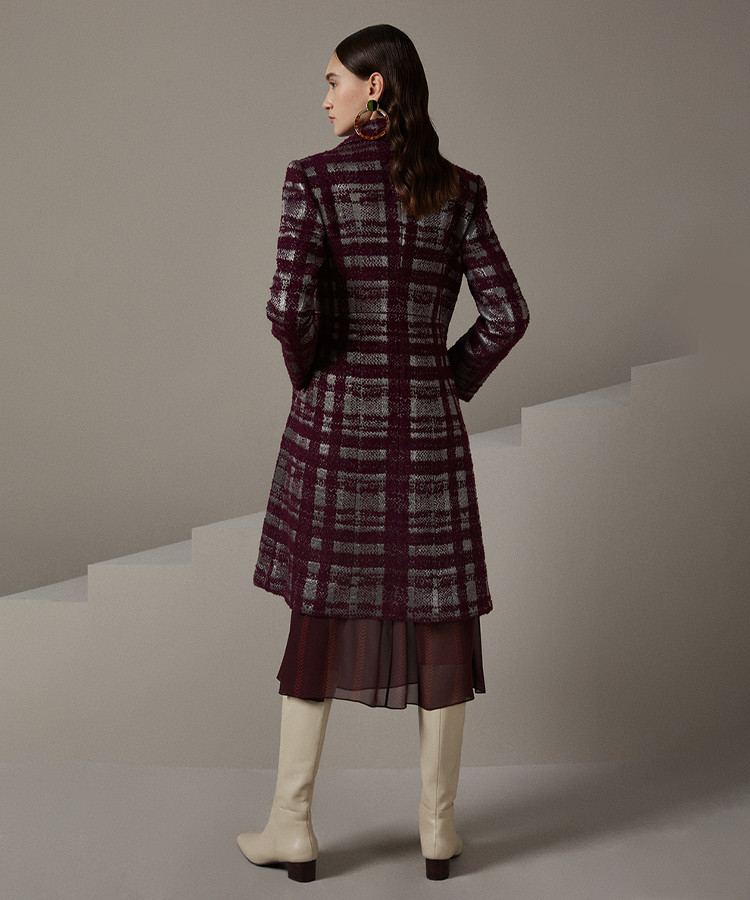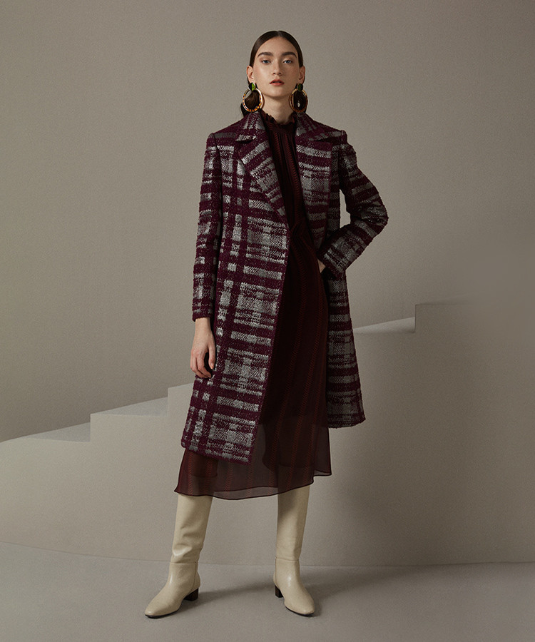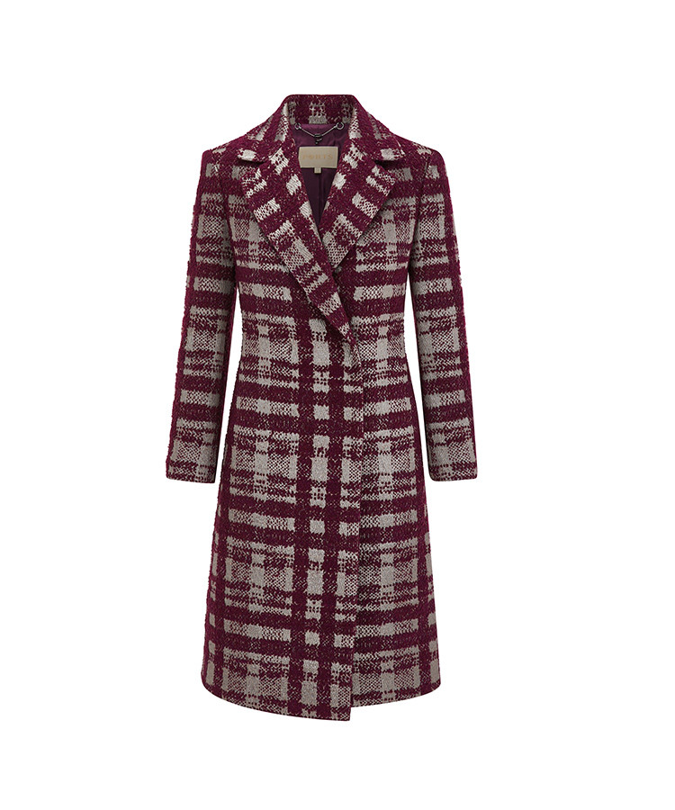 商品名称:宝姿女装时尚通勤百搭休闲日常保暖大翻领格纹中长款呢大衣 933962