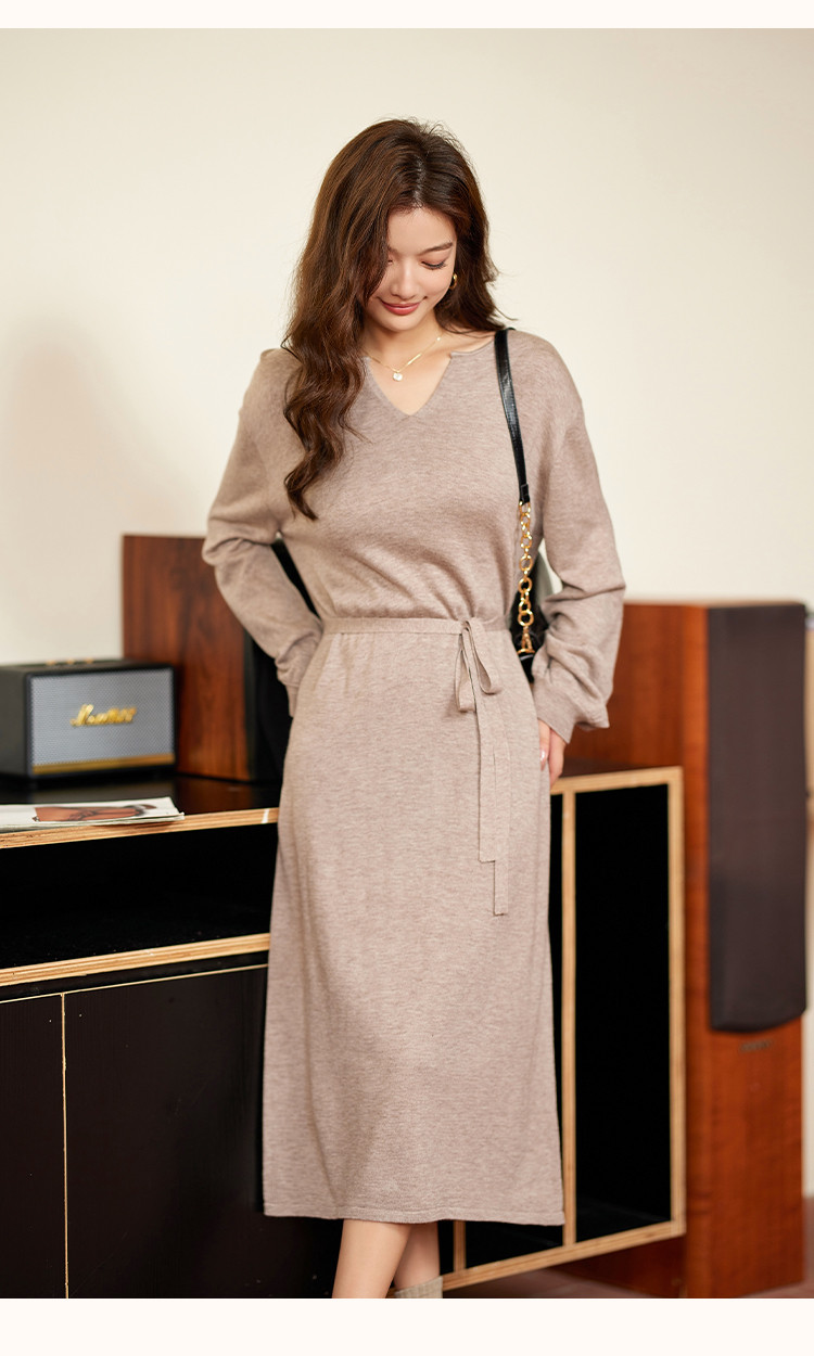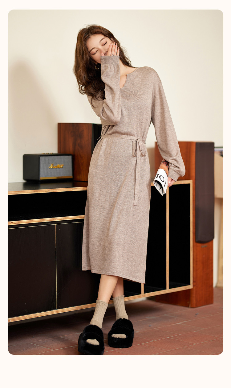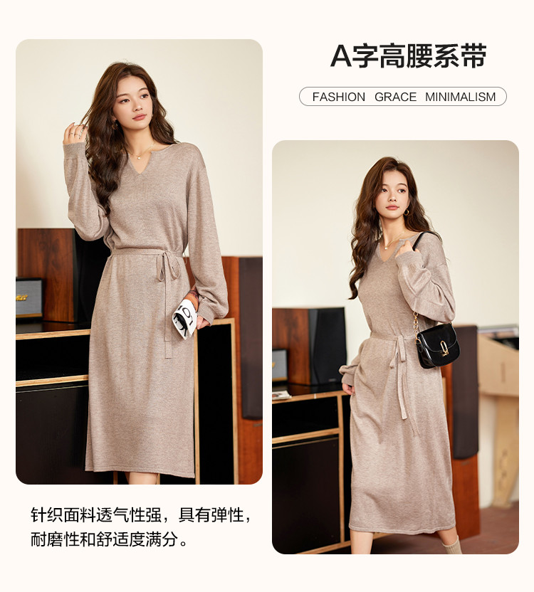商品名称:【浪漫巴黎】秋冬法式系带气质打底连衣裙高级长袖显瘦针织裙子女 422401