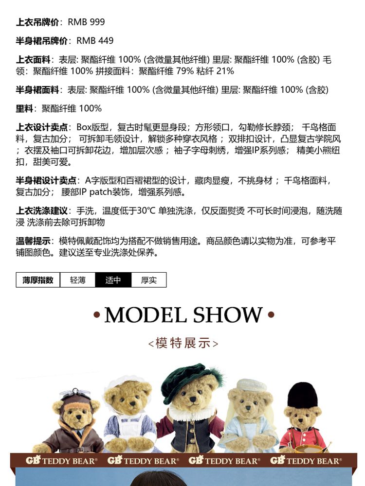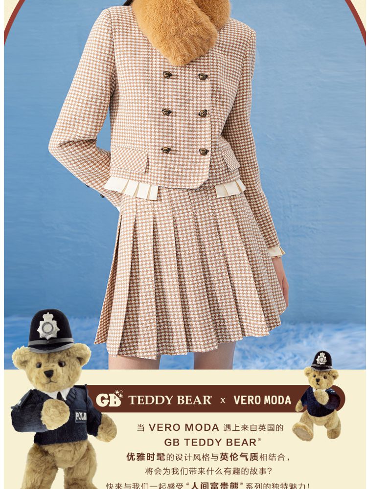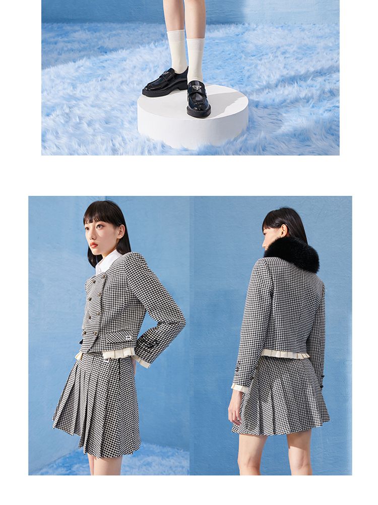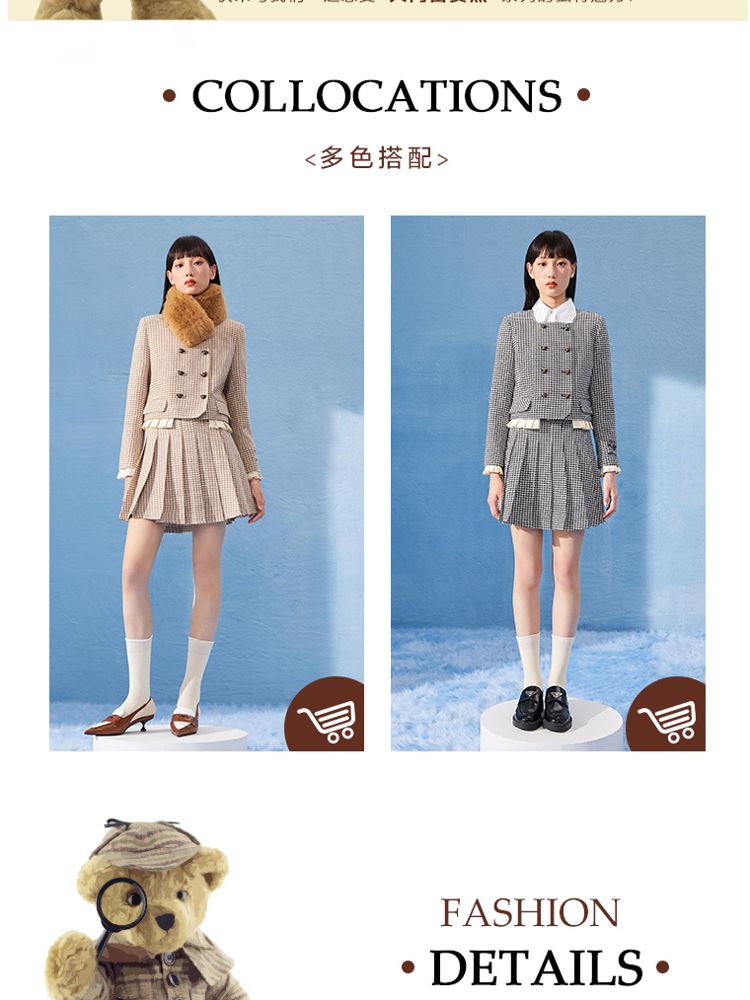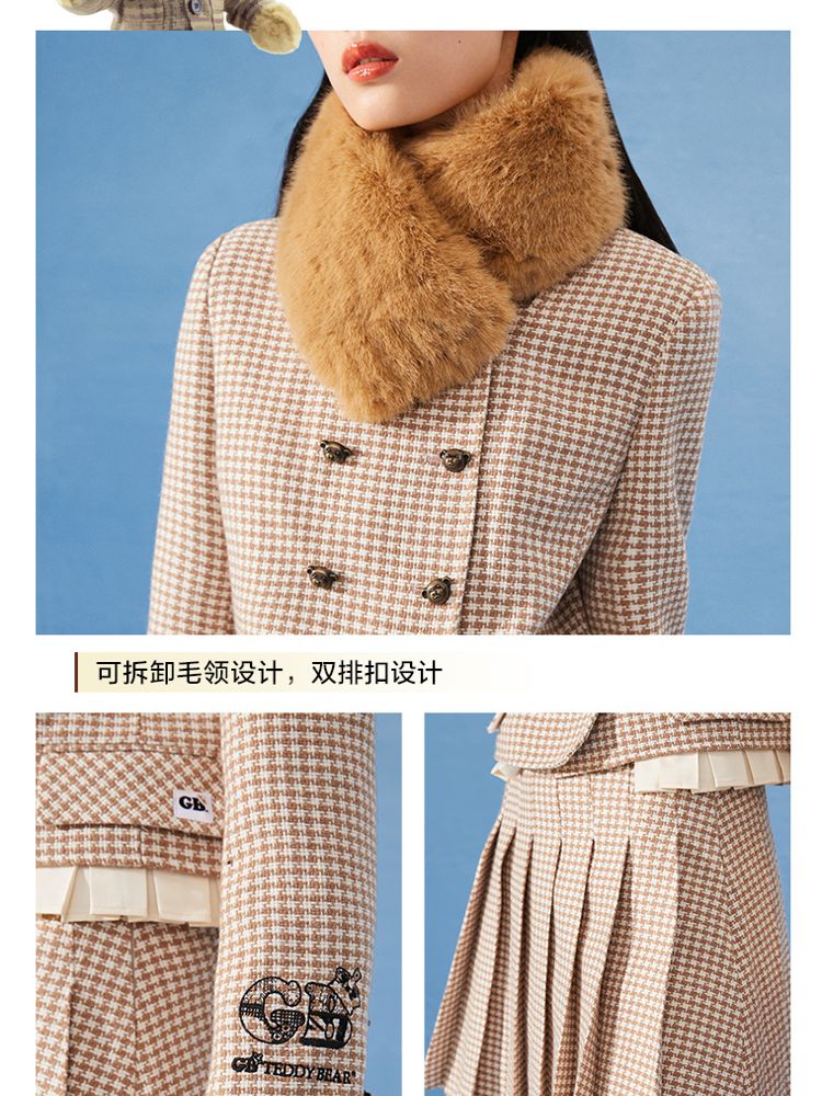 商品名称:【春秋美拉德】【泰迪熊联名】直筒千鸟格双排扣长袖气质外套 348881