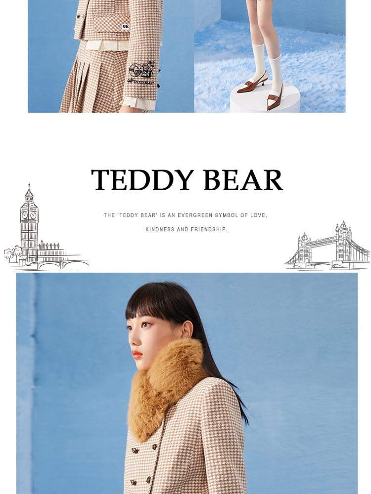 【春秋美拉德】【泰迪熊联名】直筒千鸟格双排扣长袖气质外套 348881