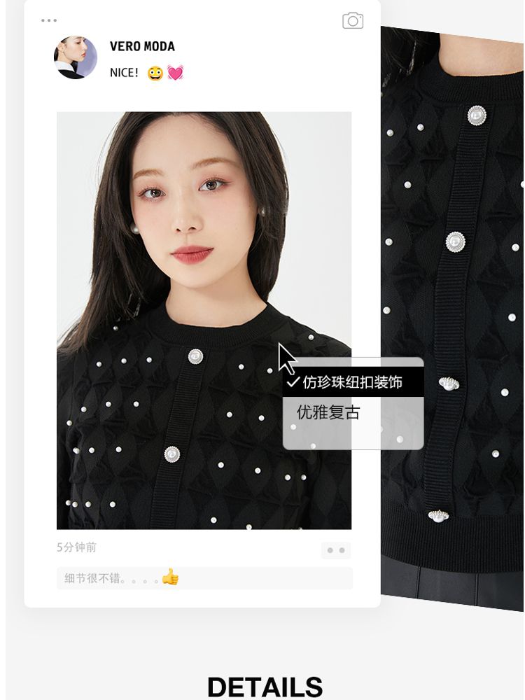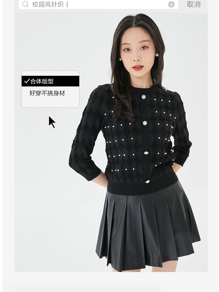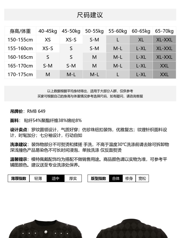 商品名称:【专柜同款】春秋针织衫女圆领小香风七分袖优雅百搭 296593