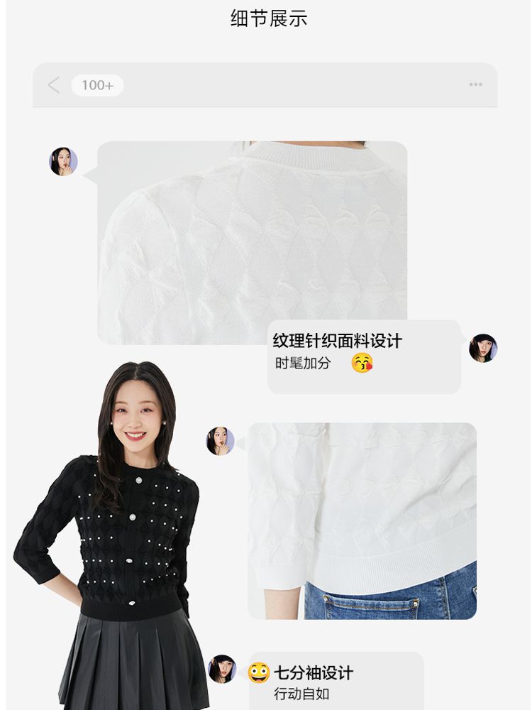 【专柜同款】春秋针织衫女圆领小香风七分袖优雅百搭 296593