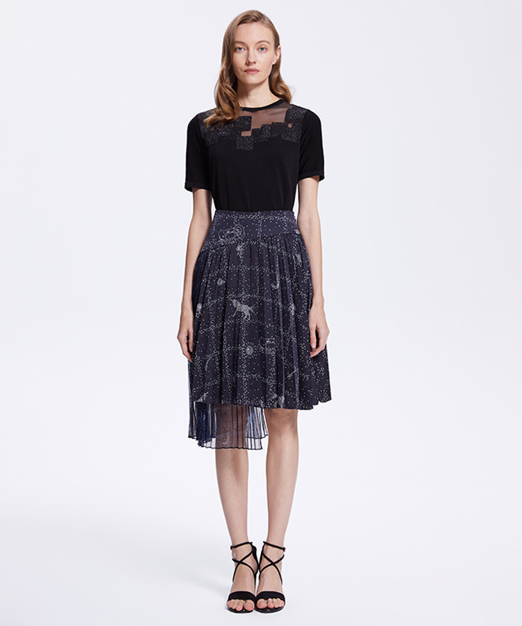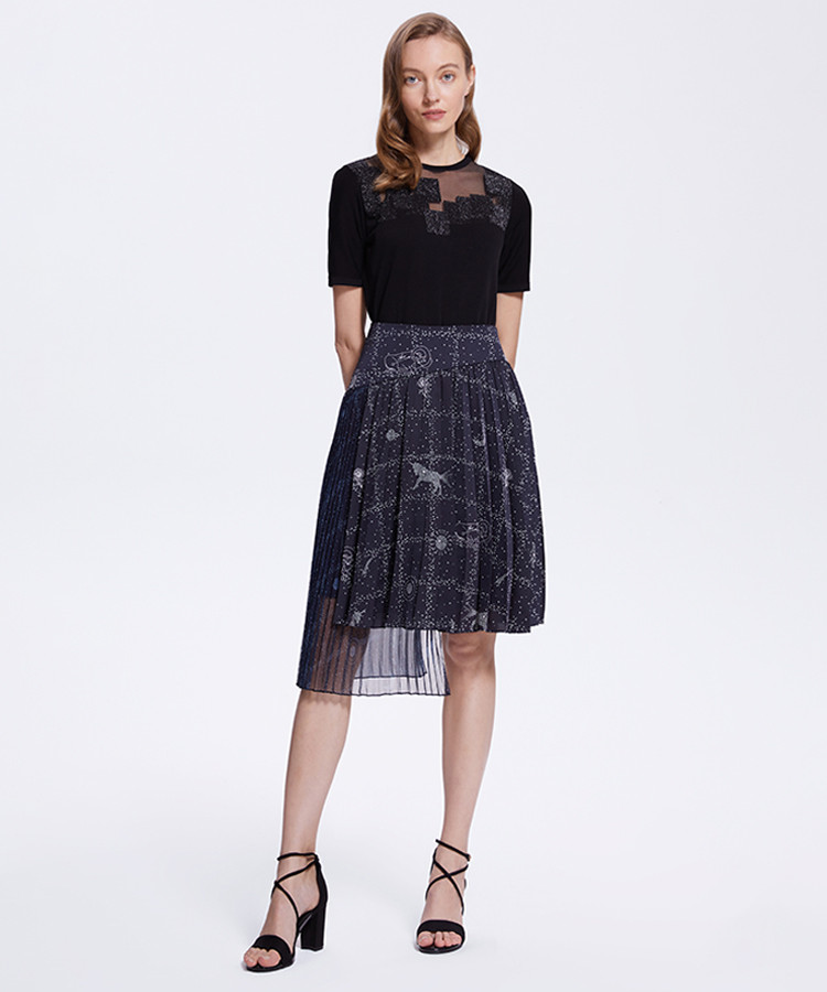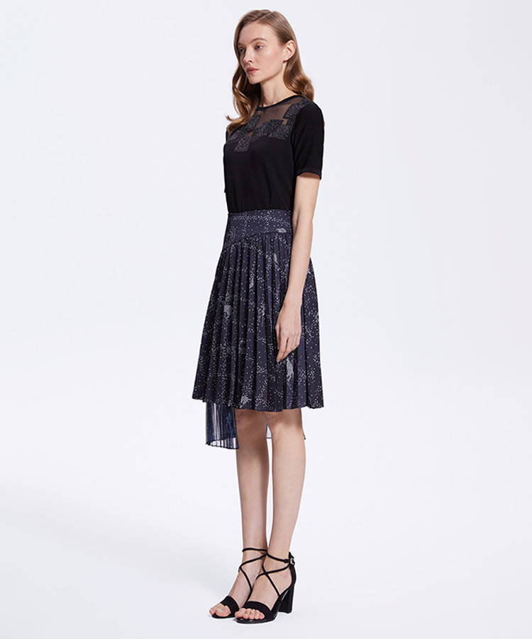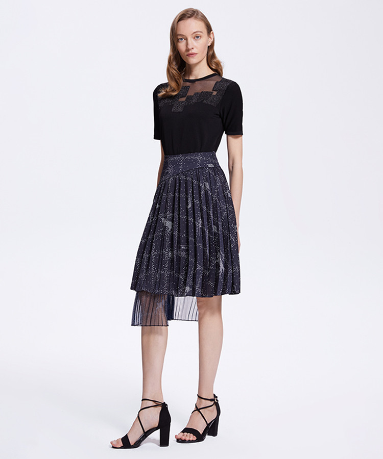 商品名称:宝姿女装春夏时尚波点印花设计时尚气质通勤百搭中长裙 249290