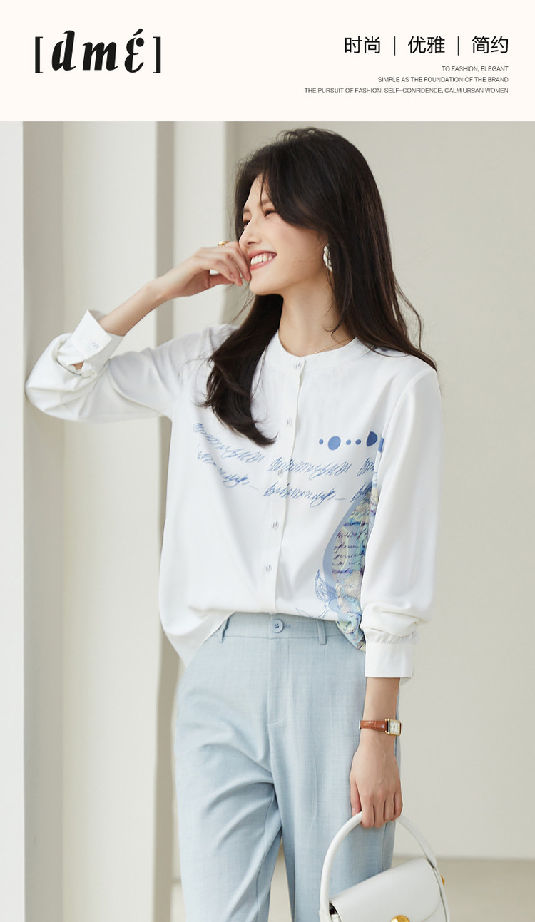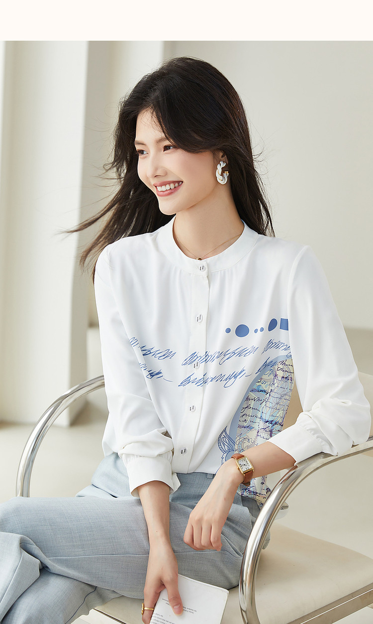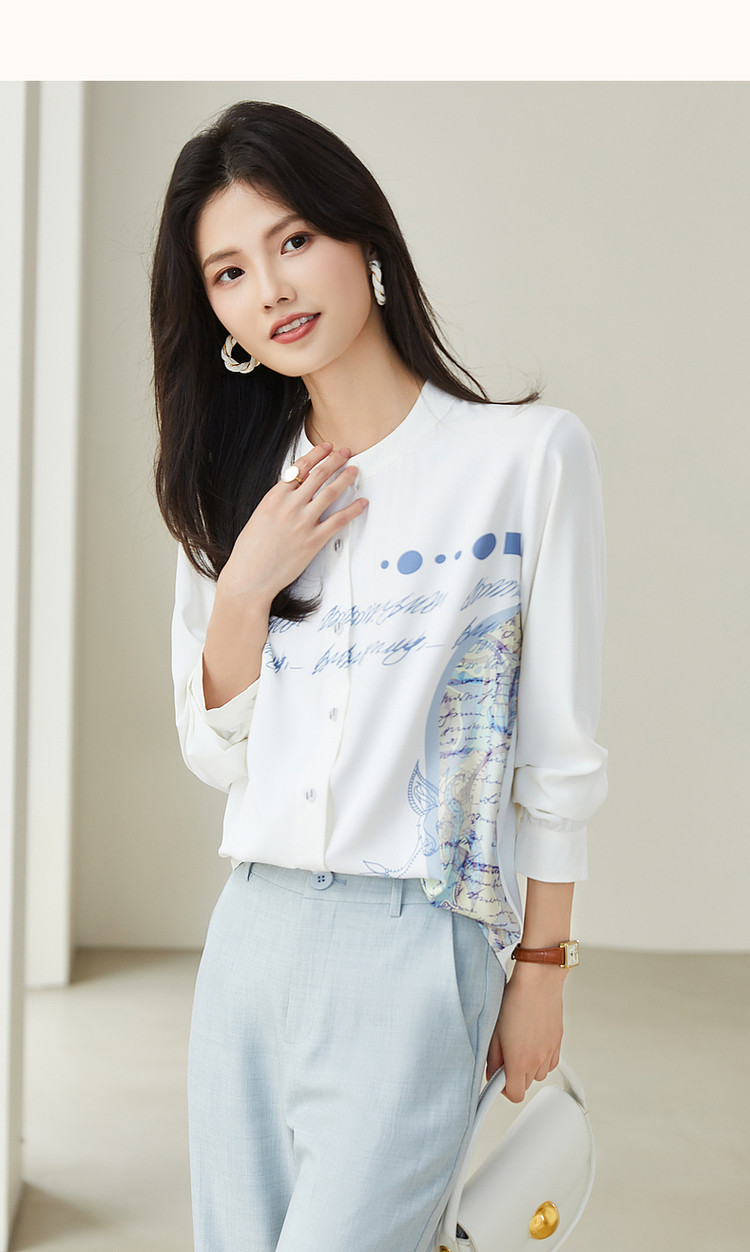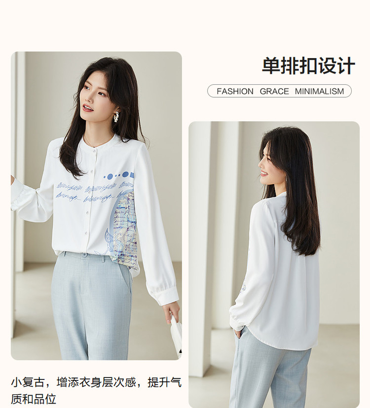 商品名称:【浪漫巴黎】春秋圆领雪纺衬衫长袖印花衬衣女装上衣 841217
