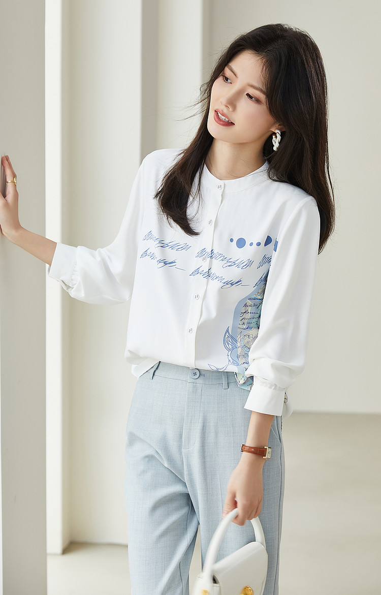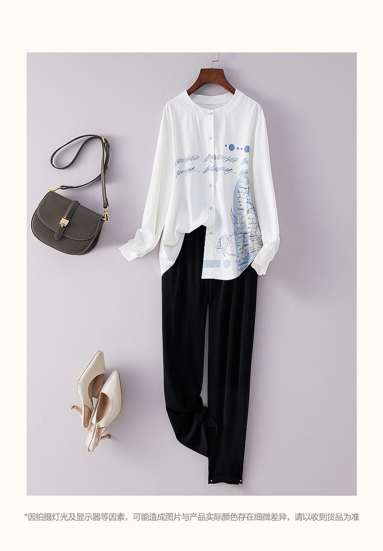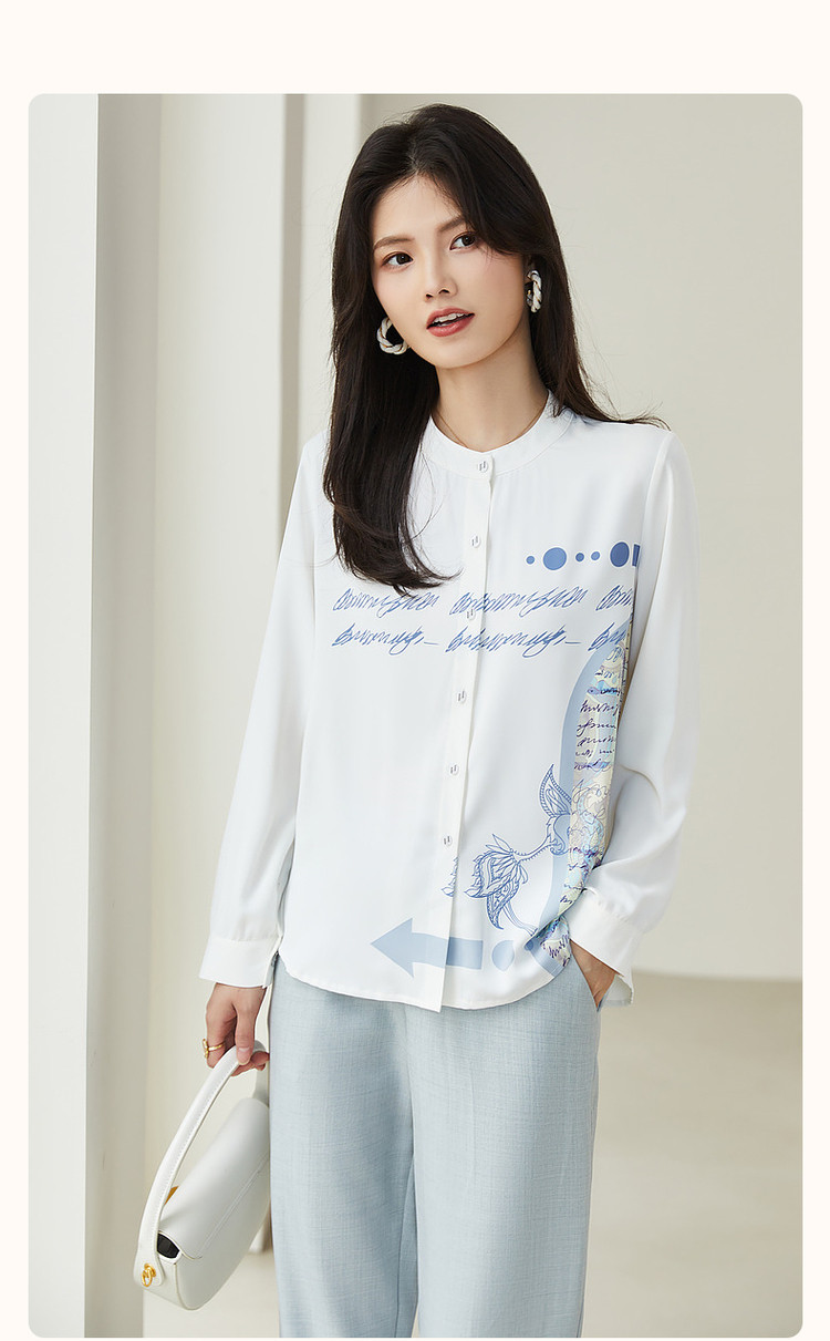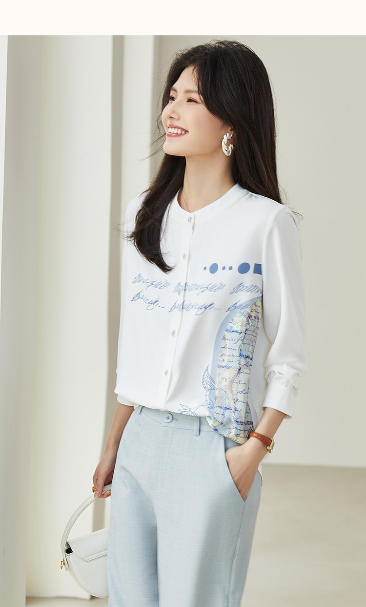 商品名称:【浪漫巴黎】春秋圆领雪纺衬衫长袖印花衬衣女装上衣 841217