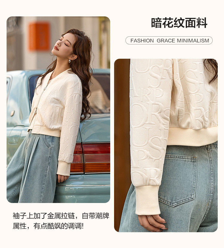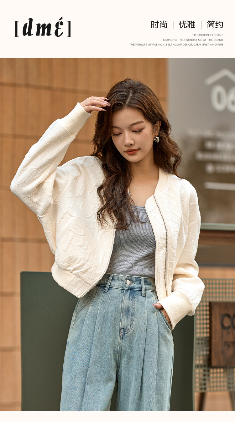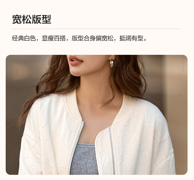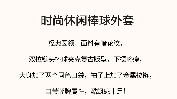 商品名称:【休闲棒球女士外套】时尚简约风长袖宽松显瘦纯色棒球外套女 441025