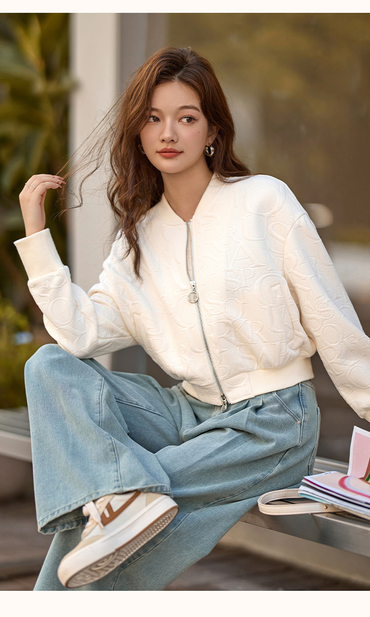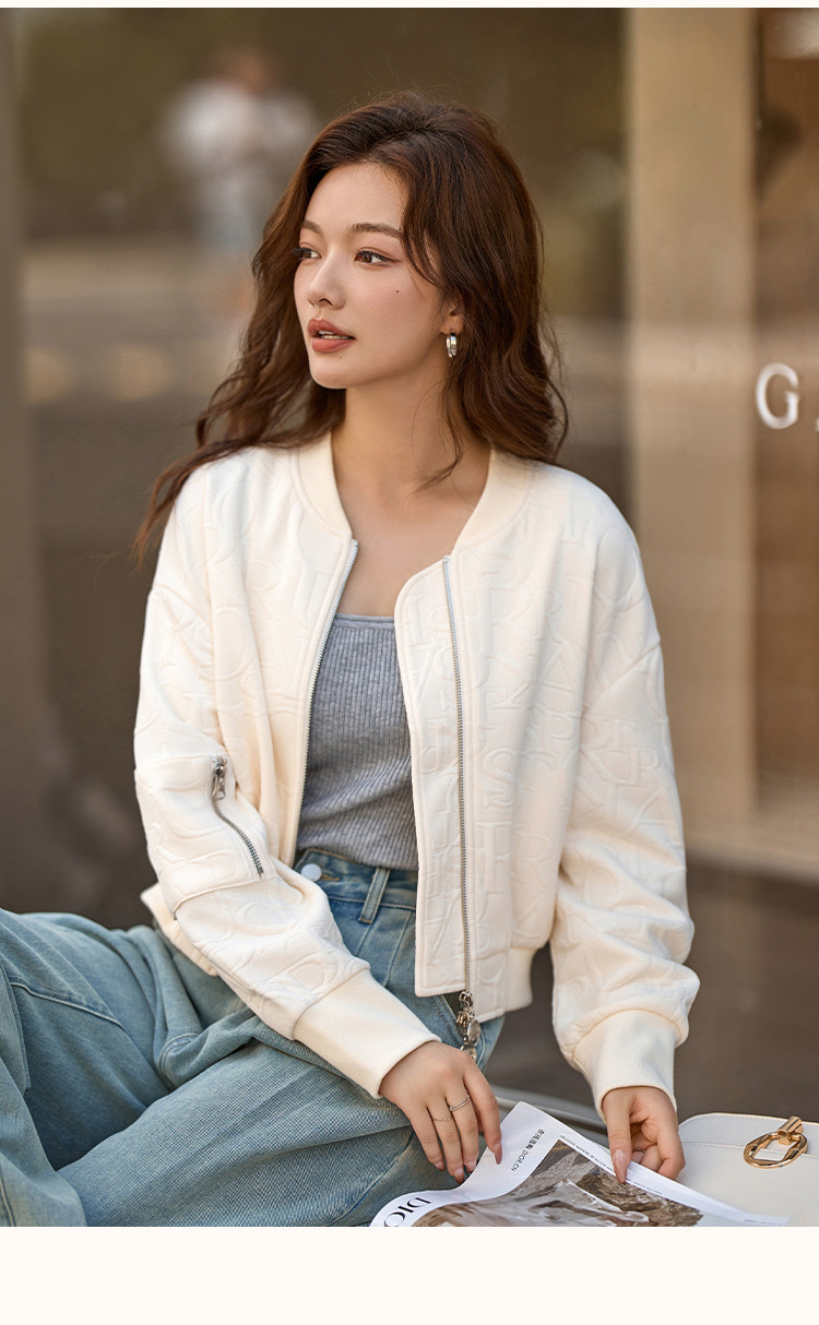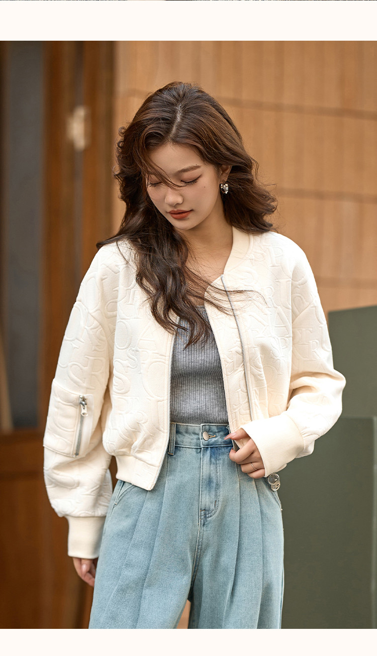 【休闲棒球女士外套】时尚简约风长袖宽松显瘦纯色棒球外套女 441025