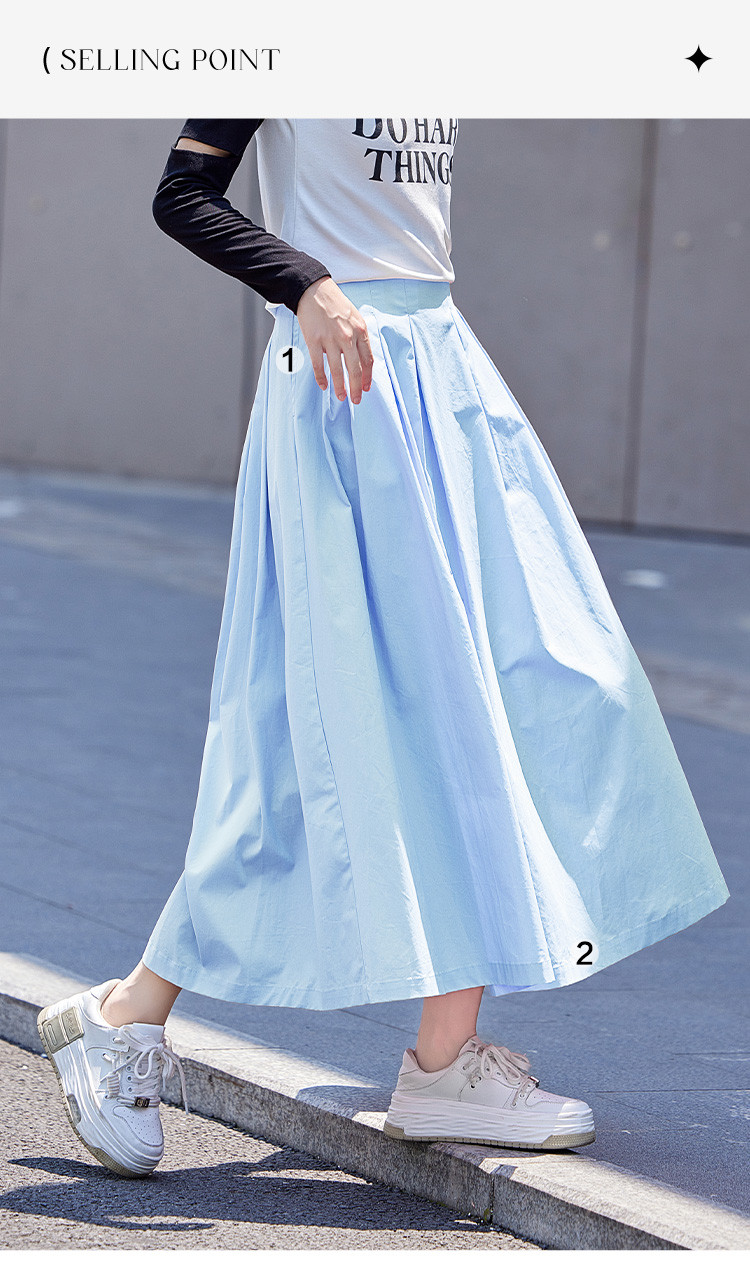 商品名称:【纯色大摆半身裙】夏款百搭时尚隐形拉链百褶裙半身裙女 524738