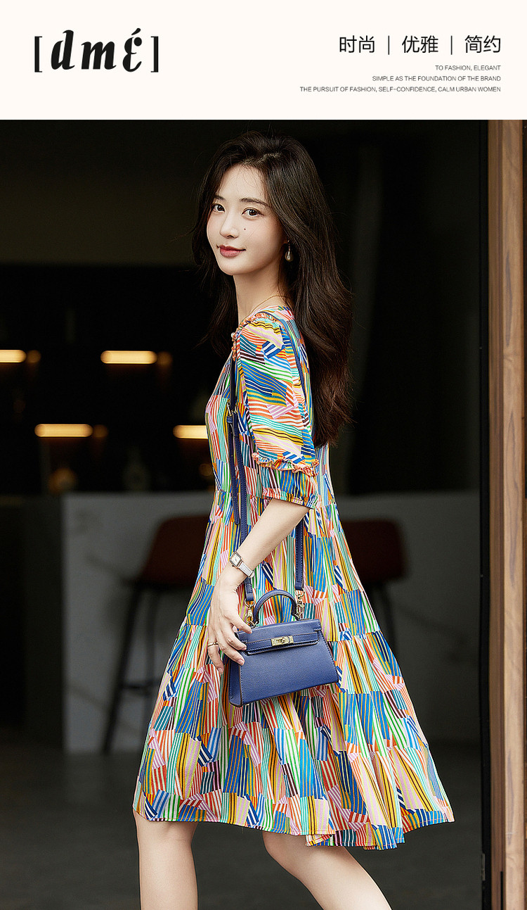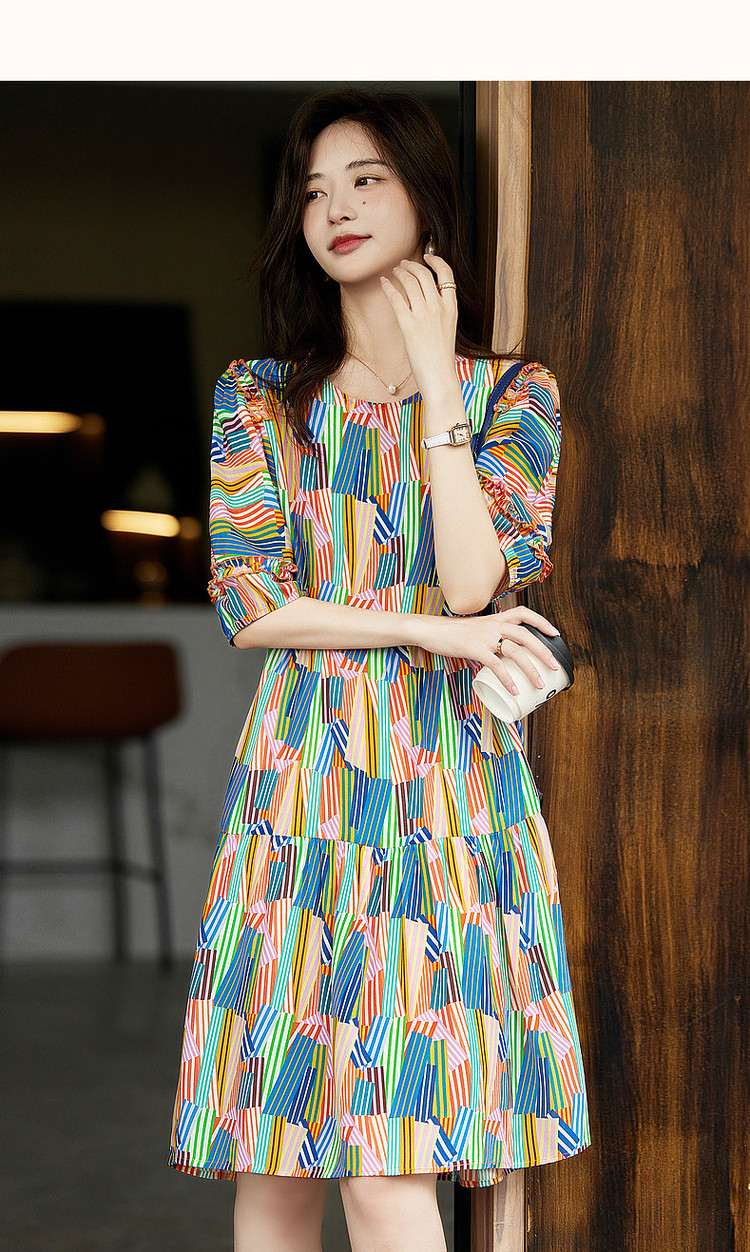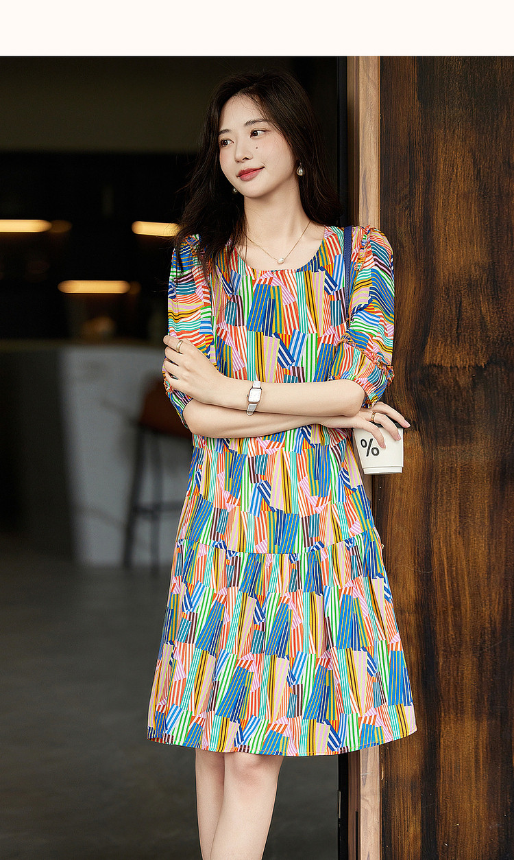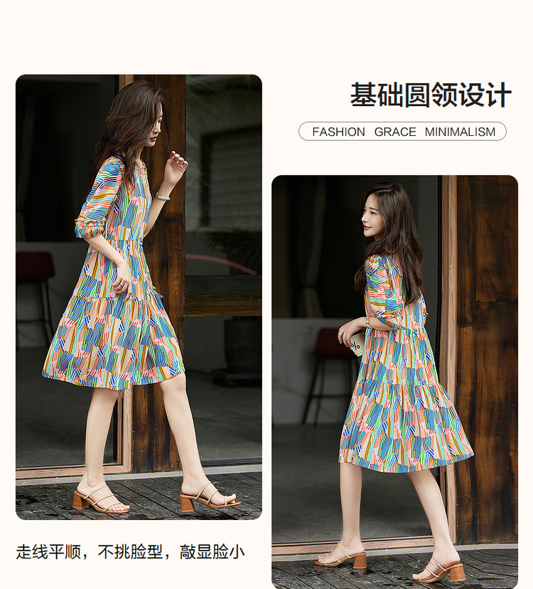 商品名称:【雅奢桑蚕丝蛋糕裙】春秋圆领印花a字连衣裙女中长款 372097