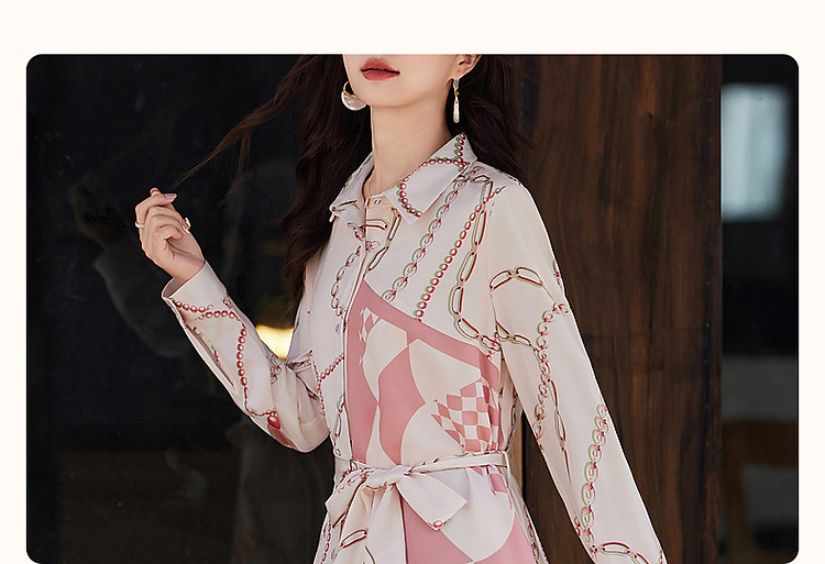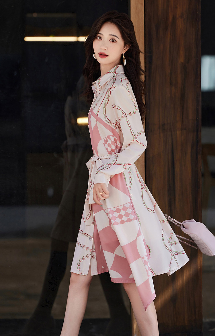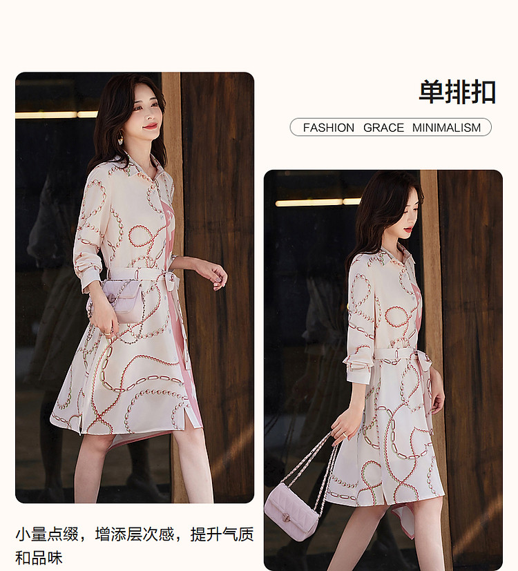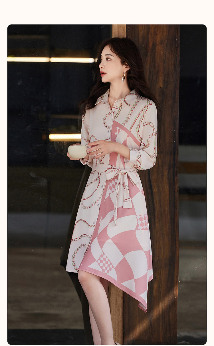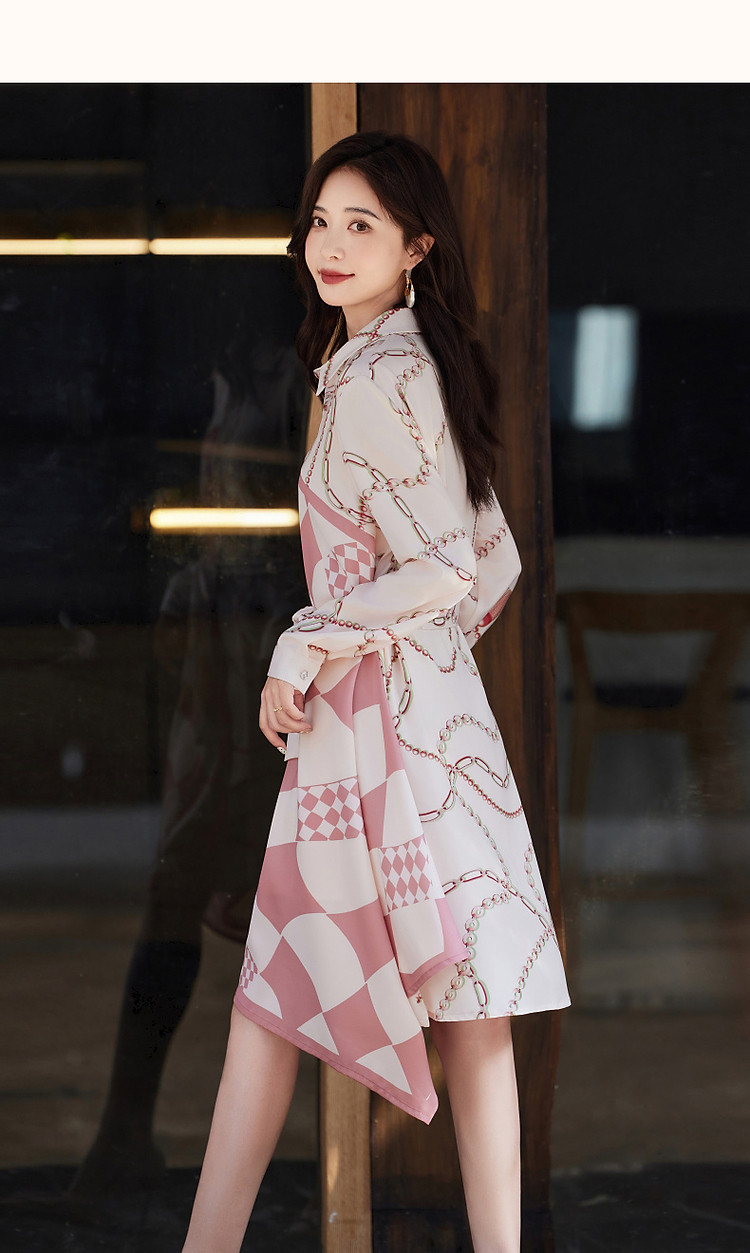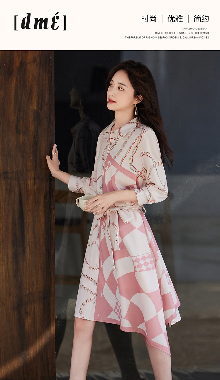商品名称:【轻盈雅致淑女】秋法式氛围翻领修身不规则衬衫式连衣裙女中长款 828673