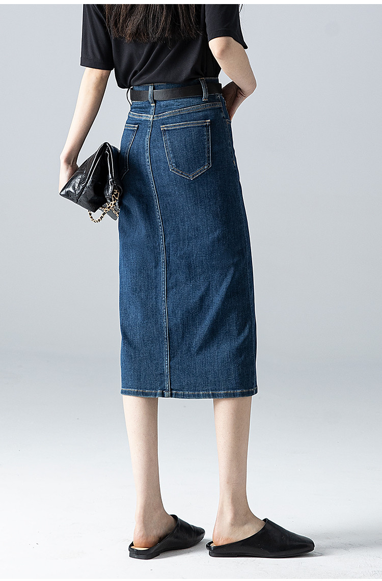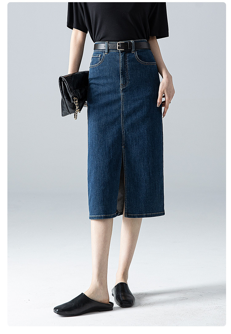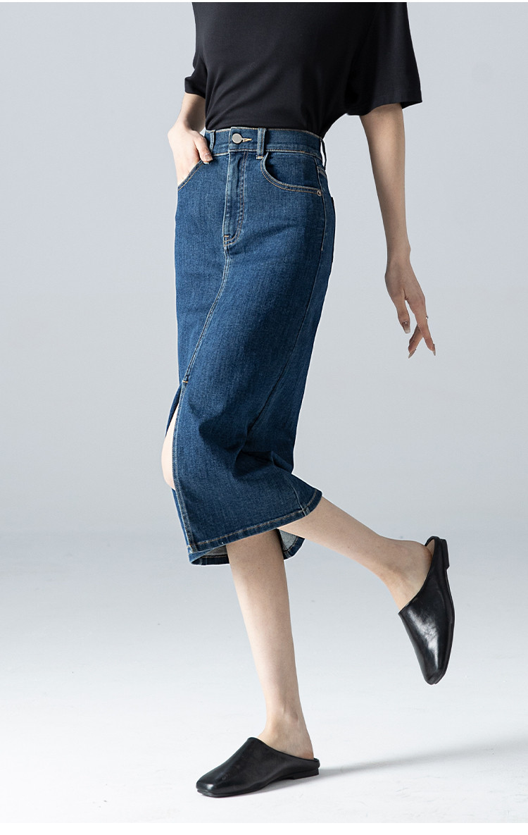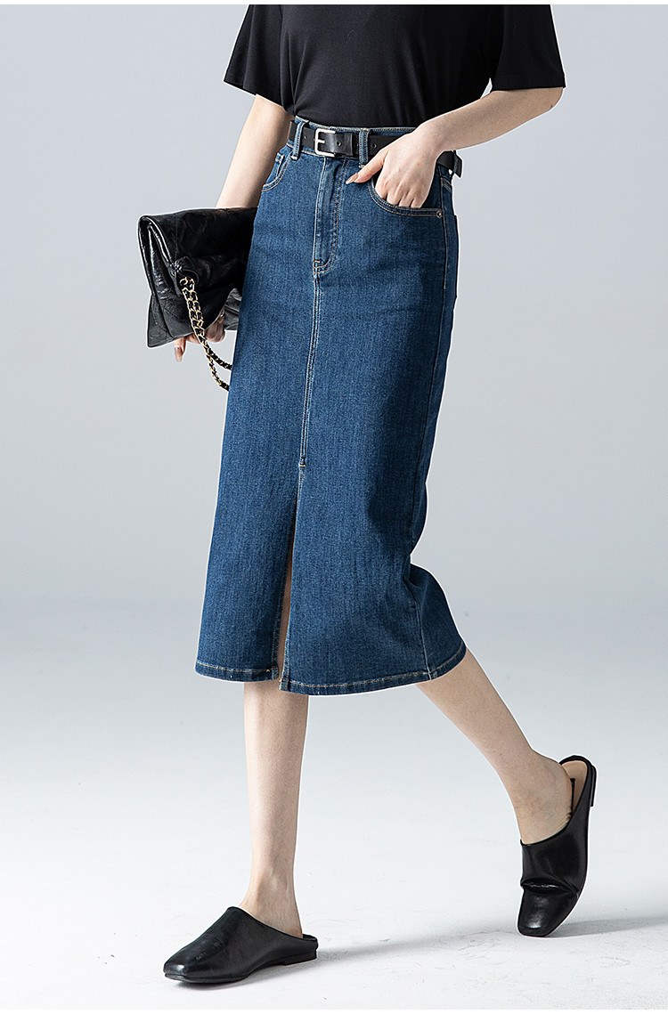 商品名称:【悦己极简】春夏季基础款牛仔裙前开衩百搭中长牛仔半身裙小个子 690497