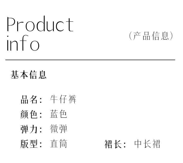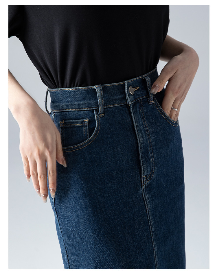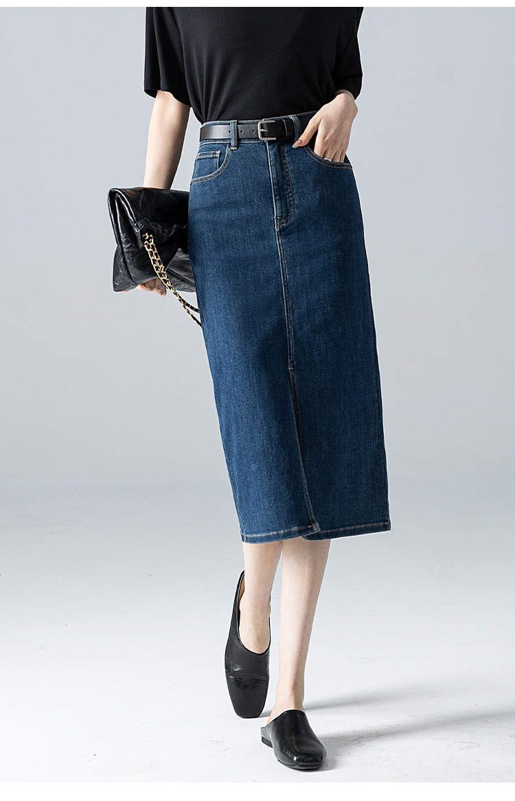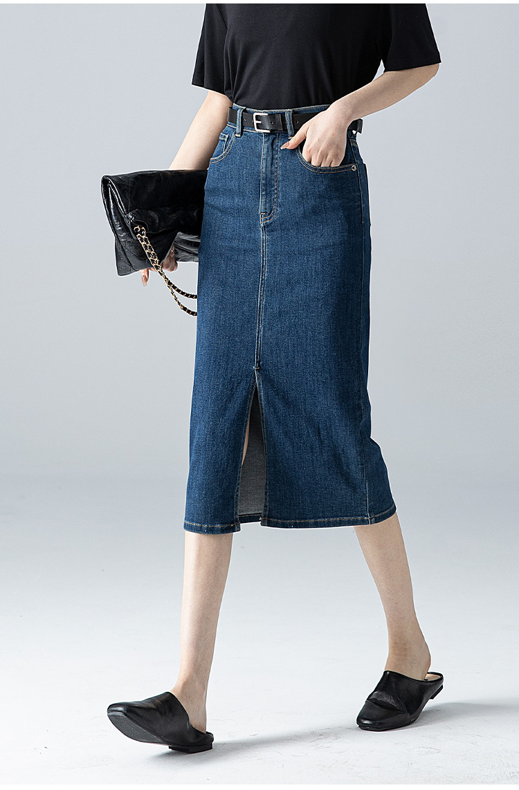 商品名称:【悦己极简】春夏季基础款牛仔裙前开衩百搭中长牛仔半身裙小个子 690497