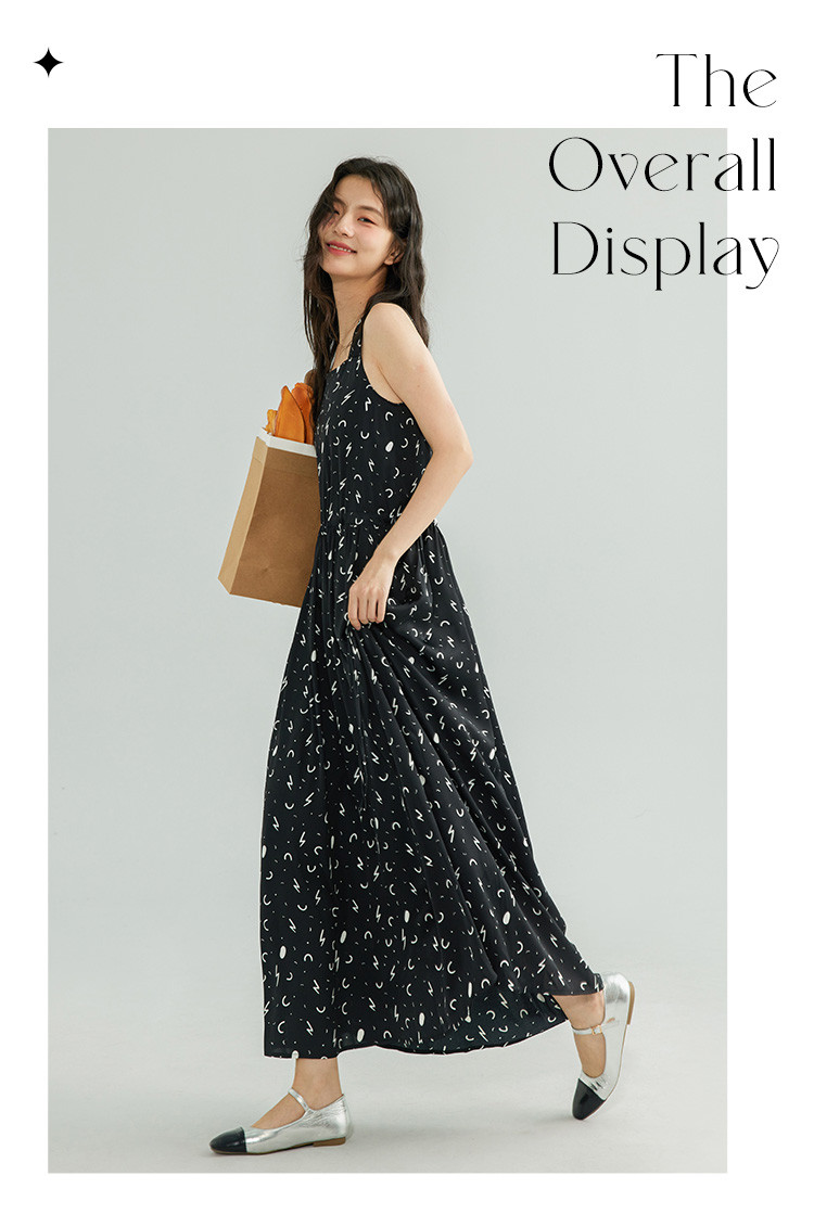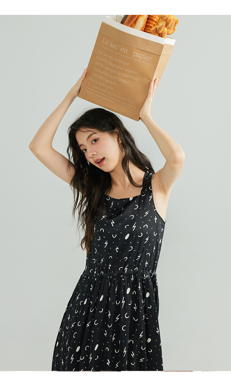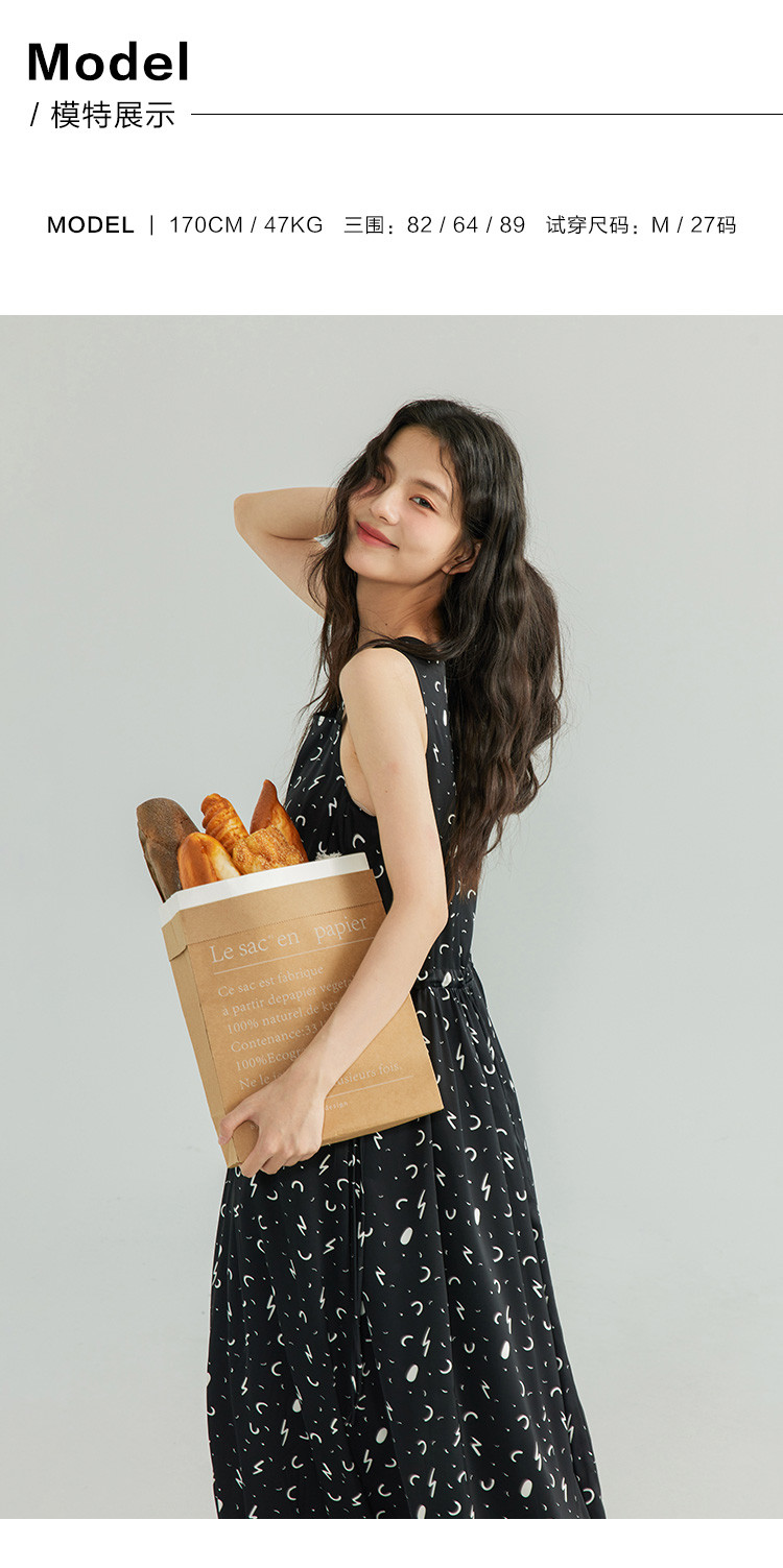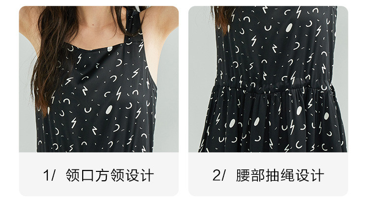 商品名称:【无袖方领裙】秋装气质抽绳收腰式长款背心连衣裙女 416706