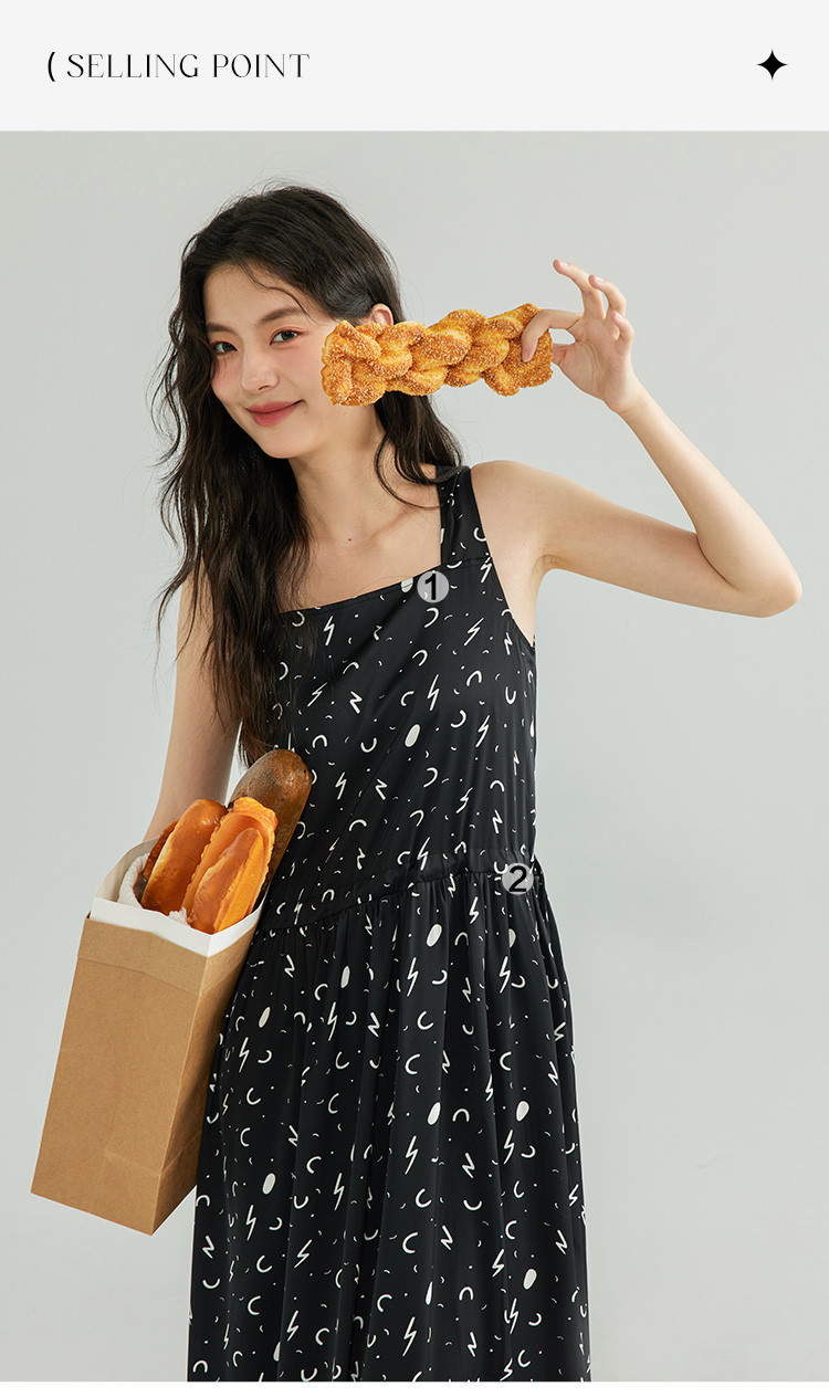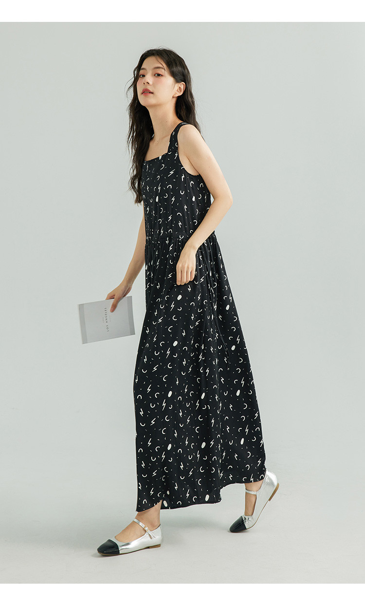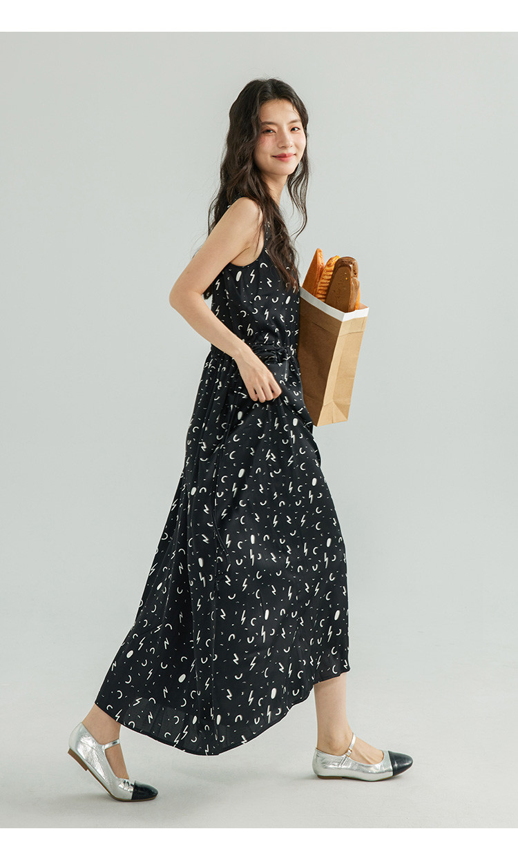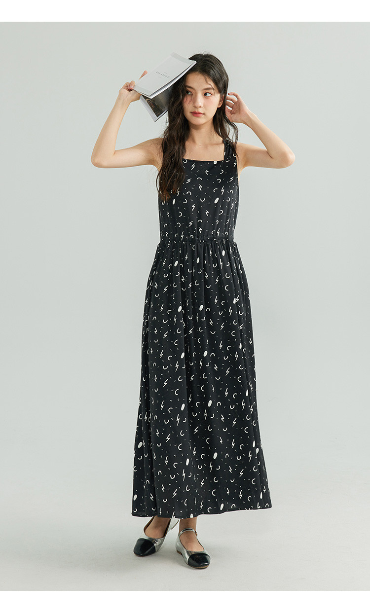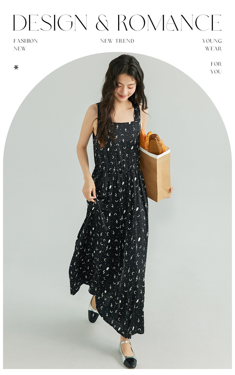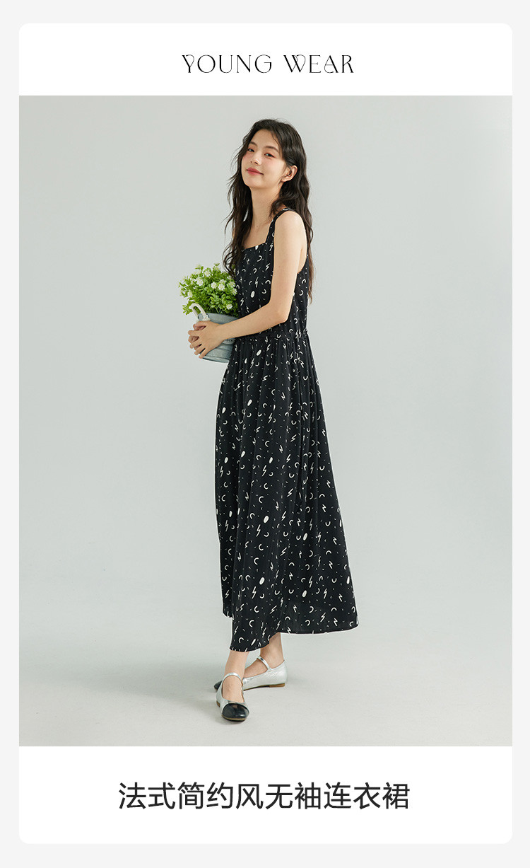 【无袖方领裙】秋装气质抽绳收腰式长款背心连衣裙女 416706