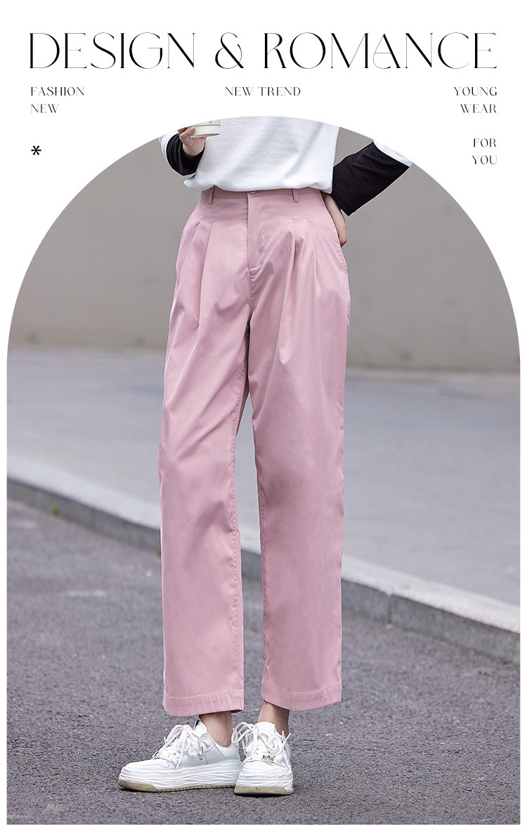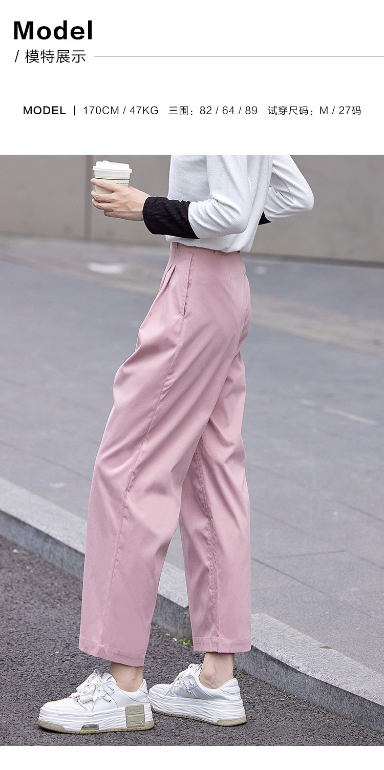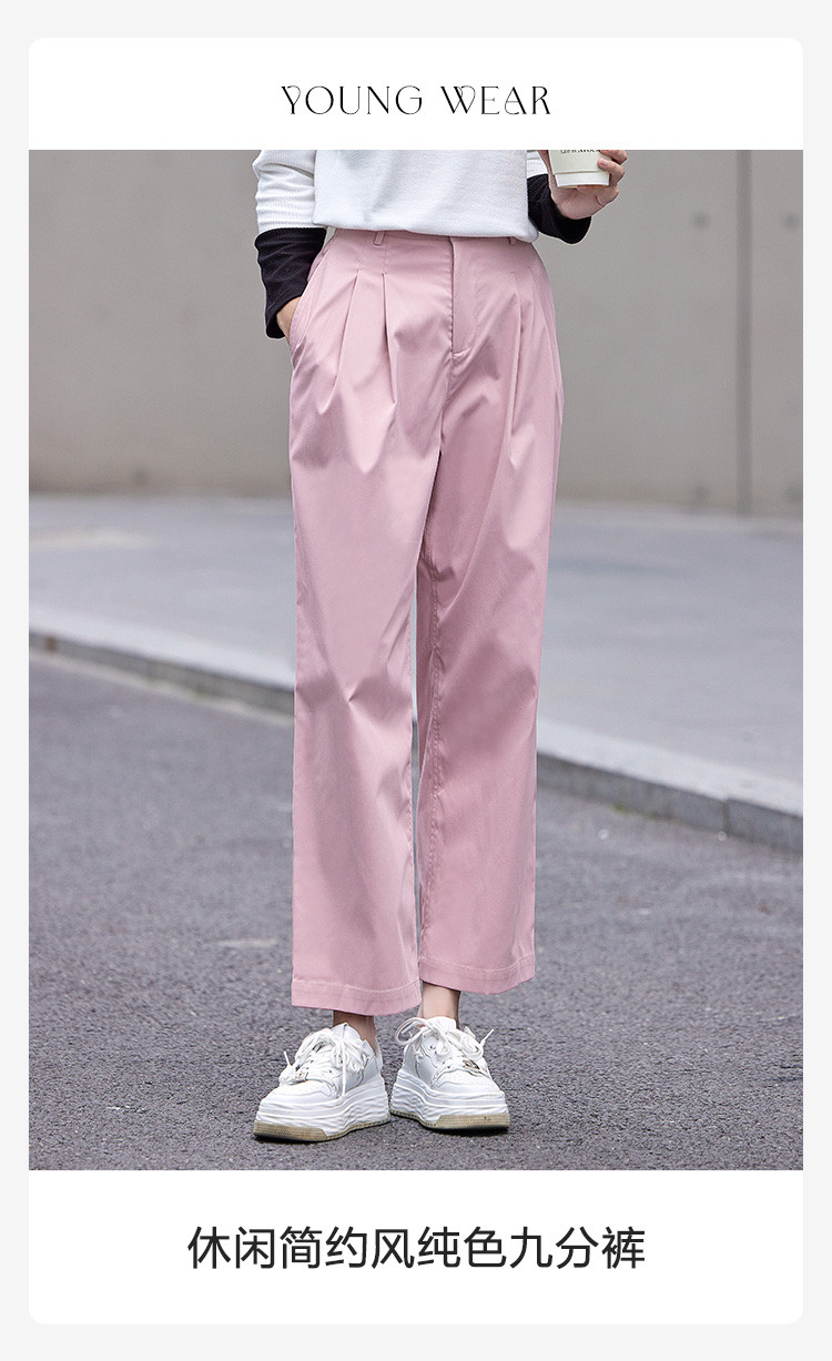 商品名称:【双压褶装饰休闲裤】秋款腰部一粒扣休闲九分裤女 412610