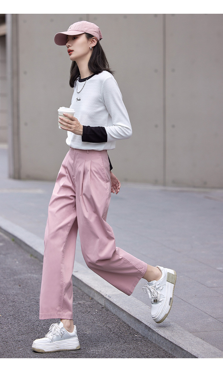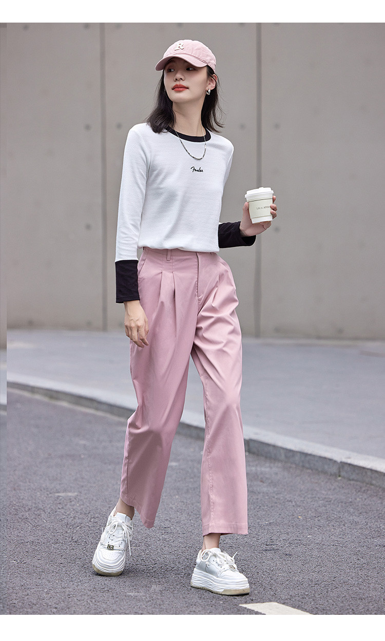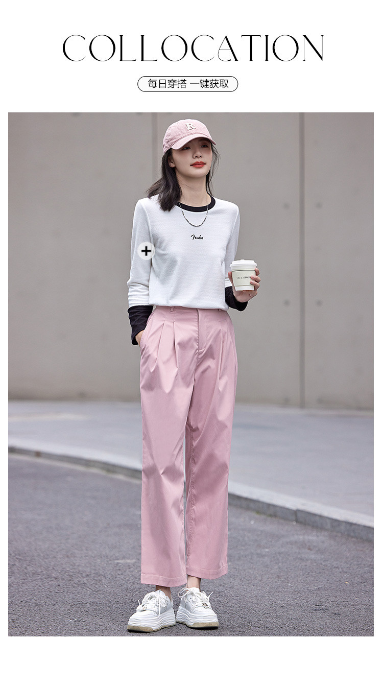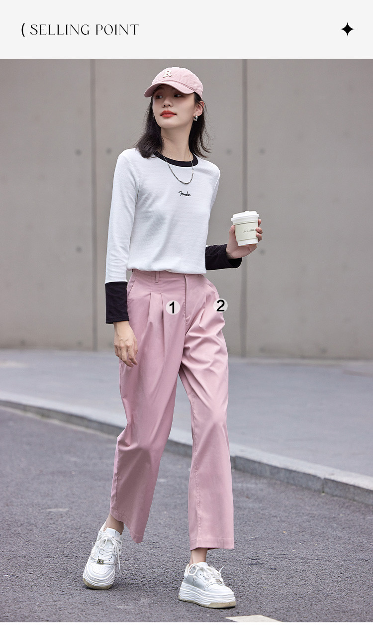 商品名称:【双压褶装饰休闲裤】秋款腰部一粒扣休闲九分裤女 412610