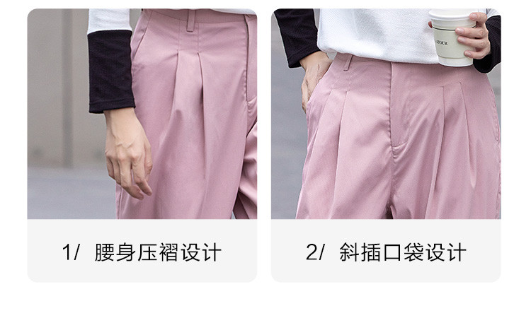 【双压褶装饰休闲裤】秋款腰部一粒扣休闲九分裤女 412610