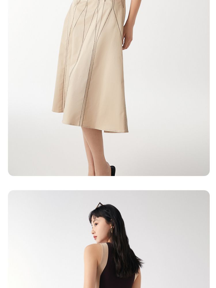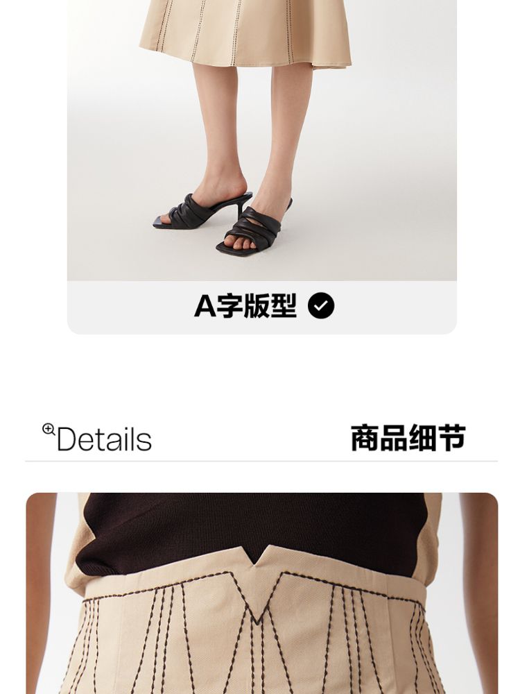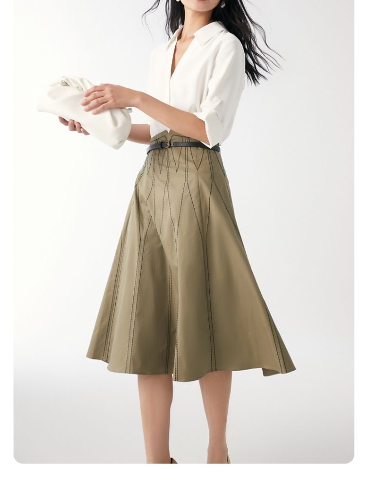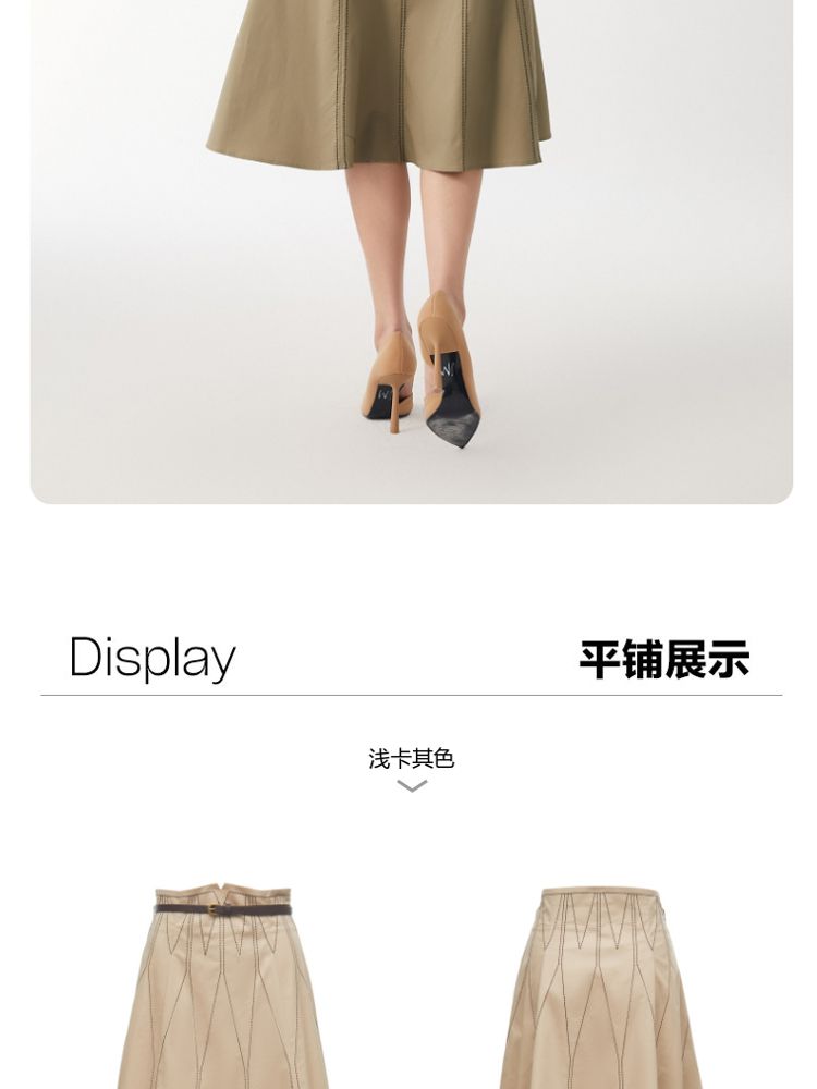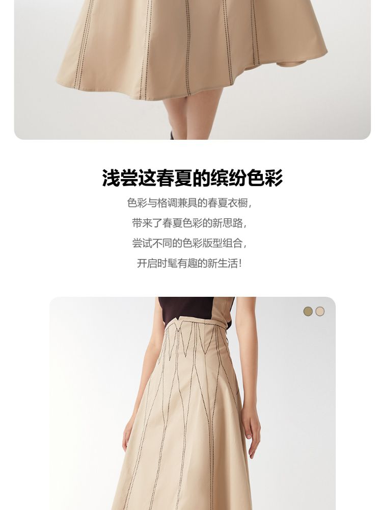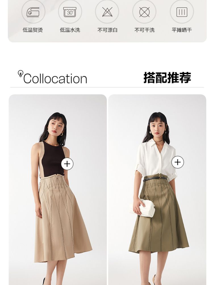 商品名称:【高腰简约】春夏专柜款A字中长迷笛纯色半身裙气质百搭时尚 560913