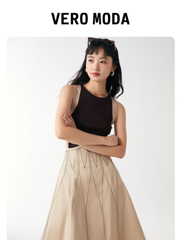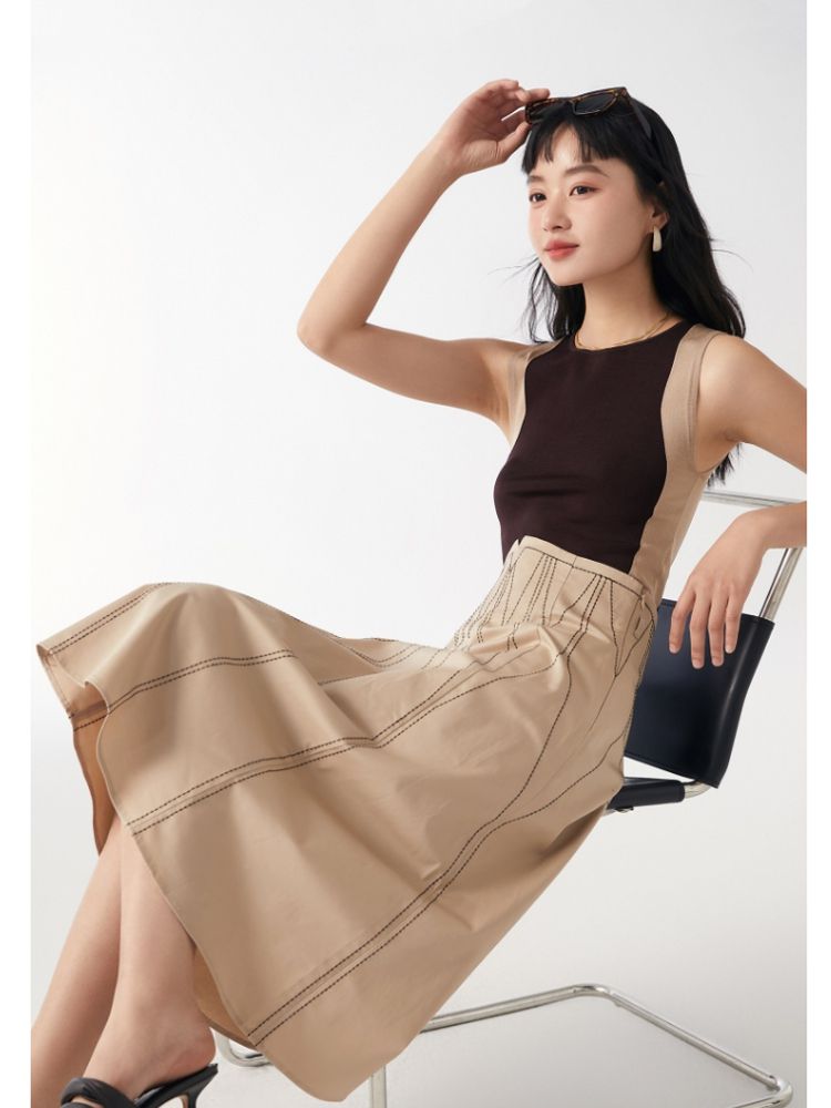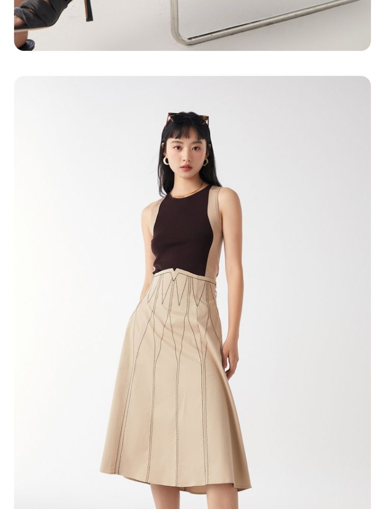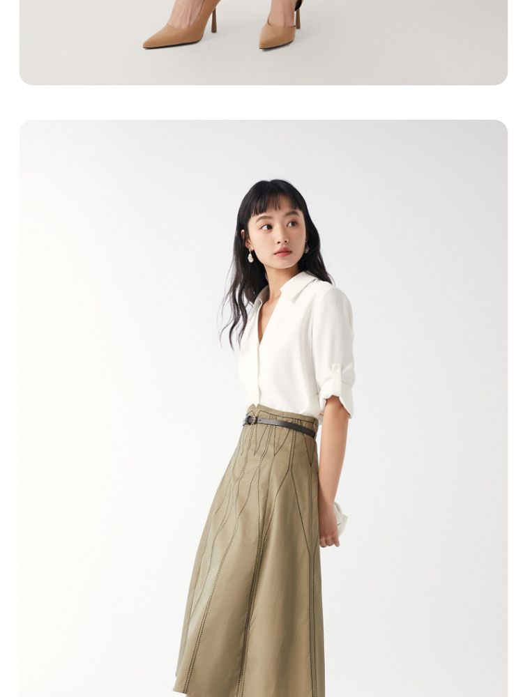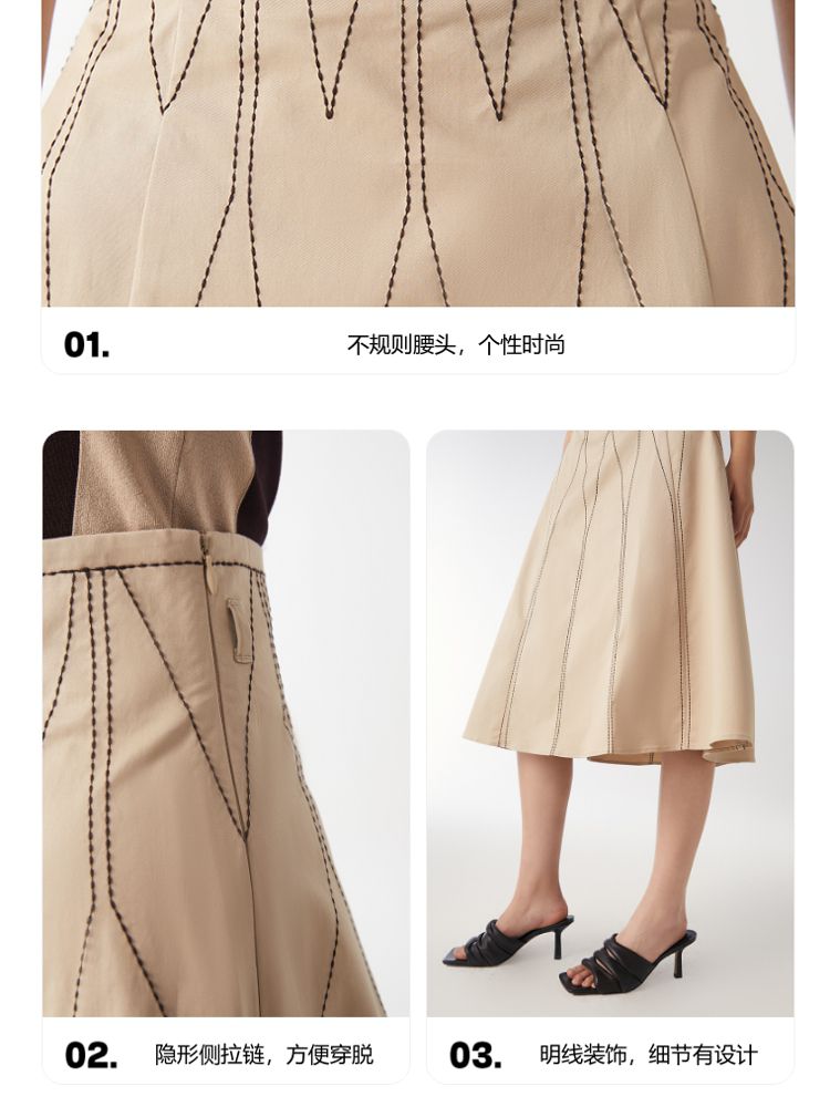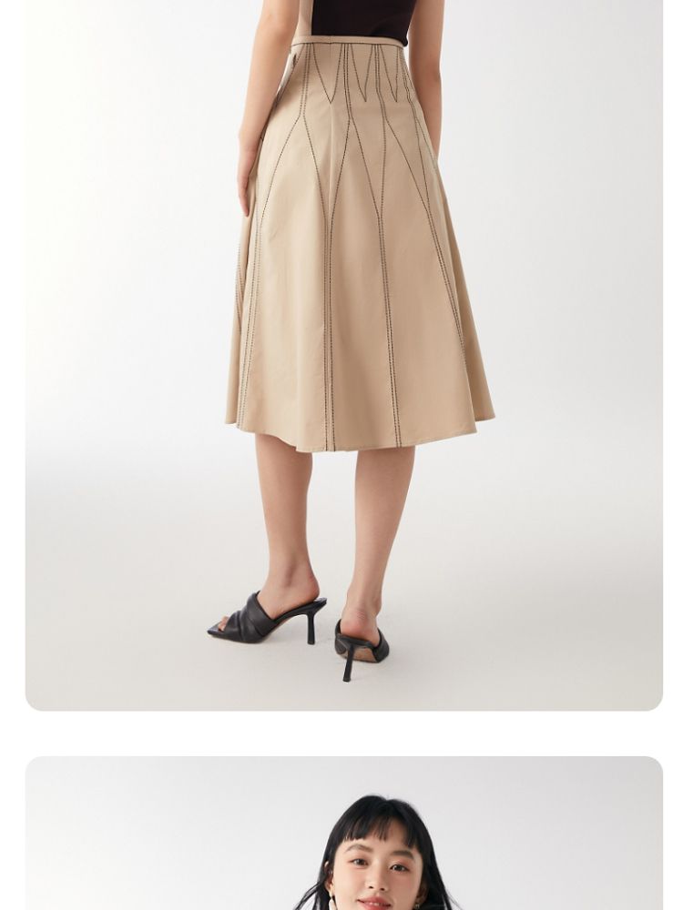 商品名称:【高腰简约】春夏专柜款A字中长迷笛纯色半身裙气质百搭时尚 560913