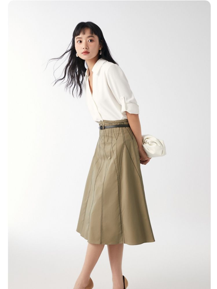 【高腰简约】春夏专柜款A字中长迷笛纯色半身裙气质百搭时尚 560913