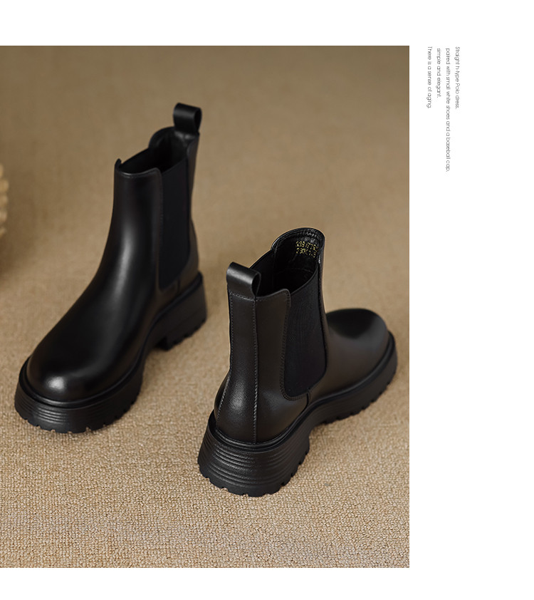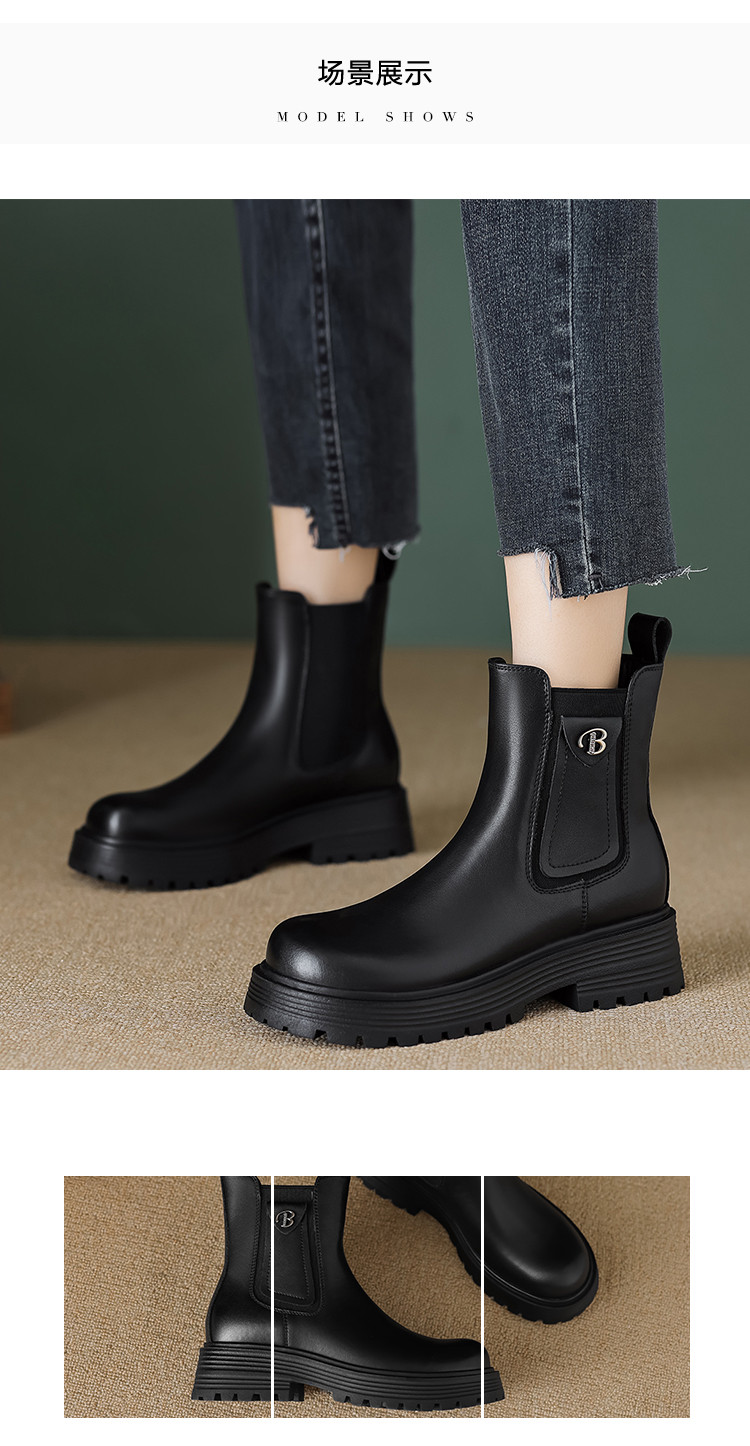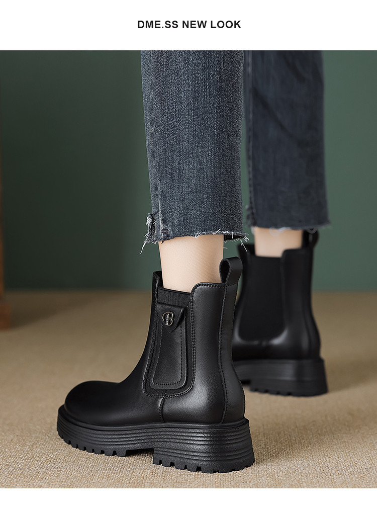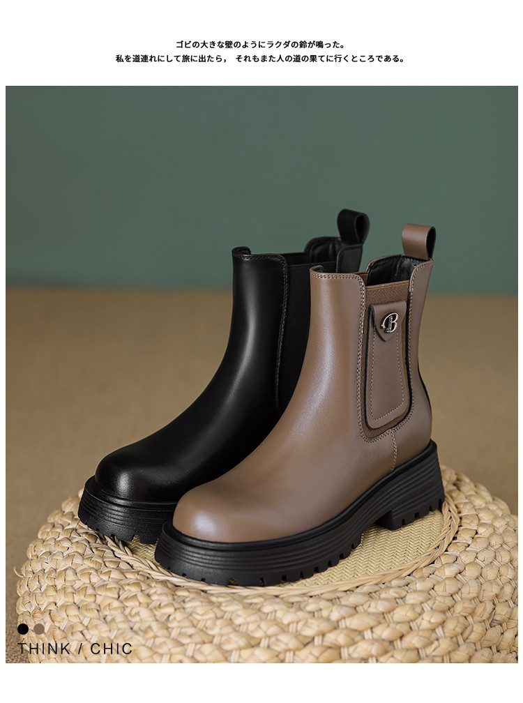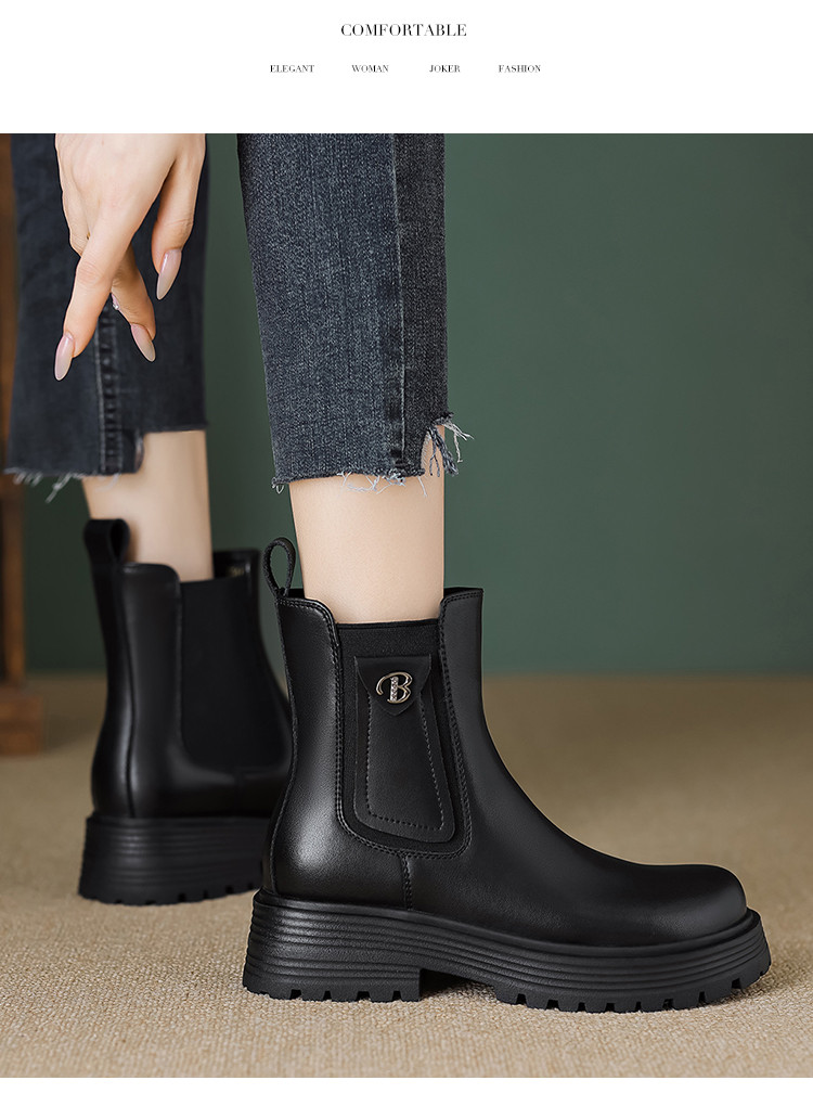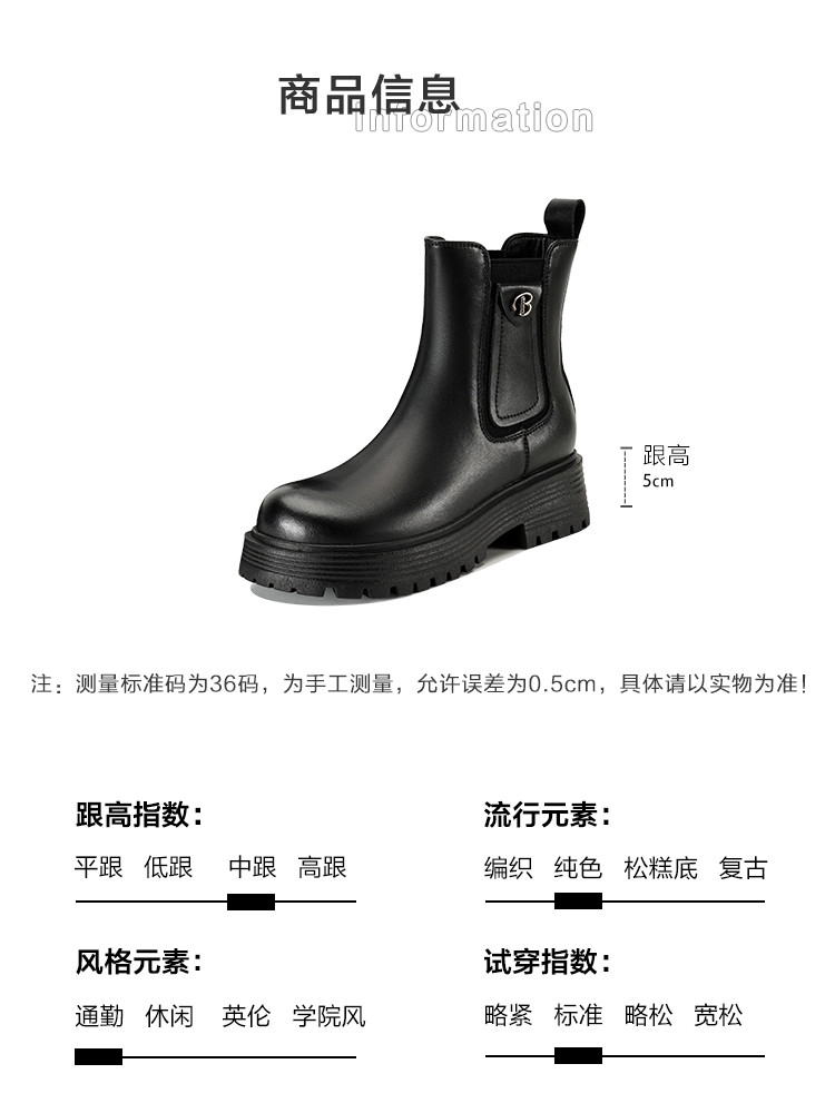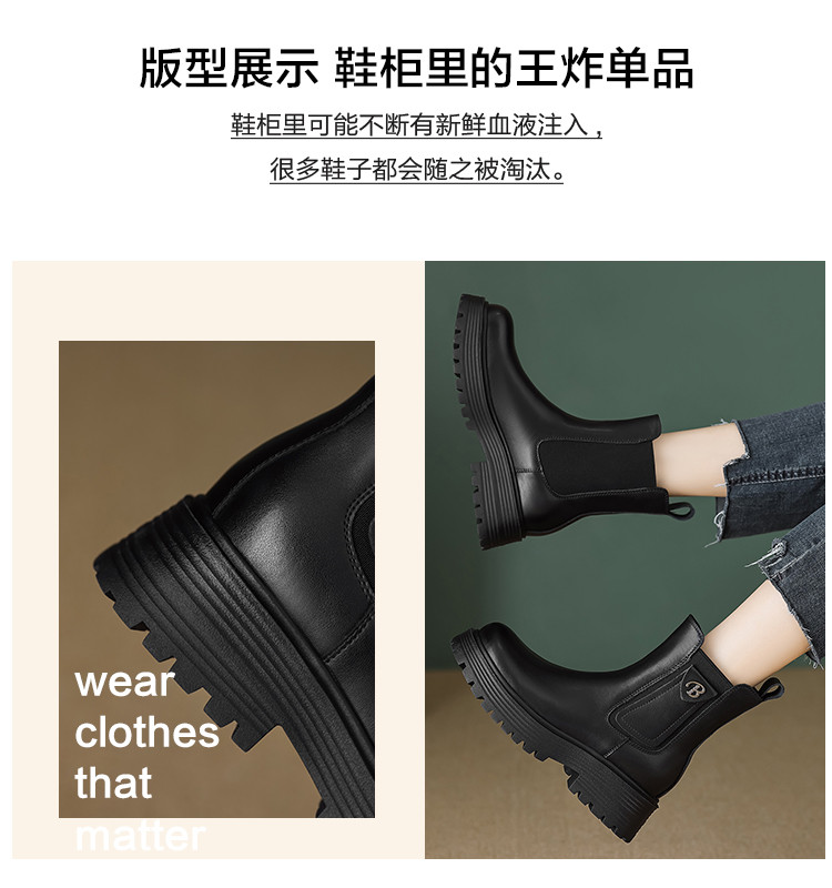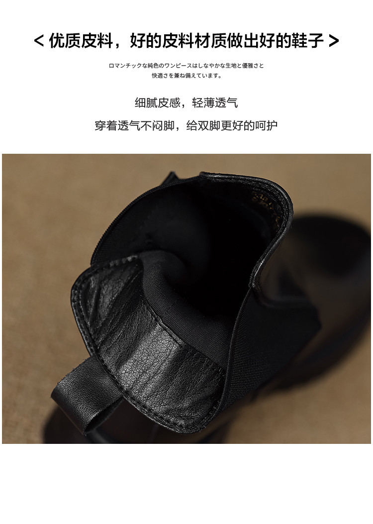 商品名称:春复古百搭潮拼接圆头撞色侧边口袋装饰切尔西靴靴 060289
