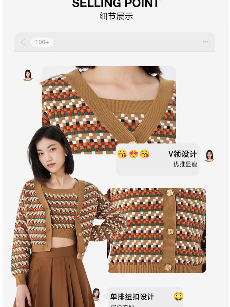 商品名称:【春夏美拉德】【专柜同款】宽吊带针织两件套针织衫女百搭时尚 393169