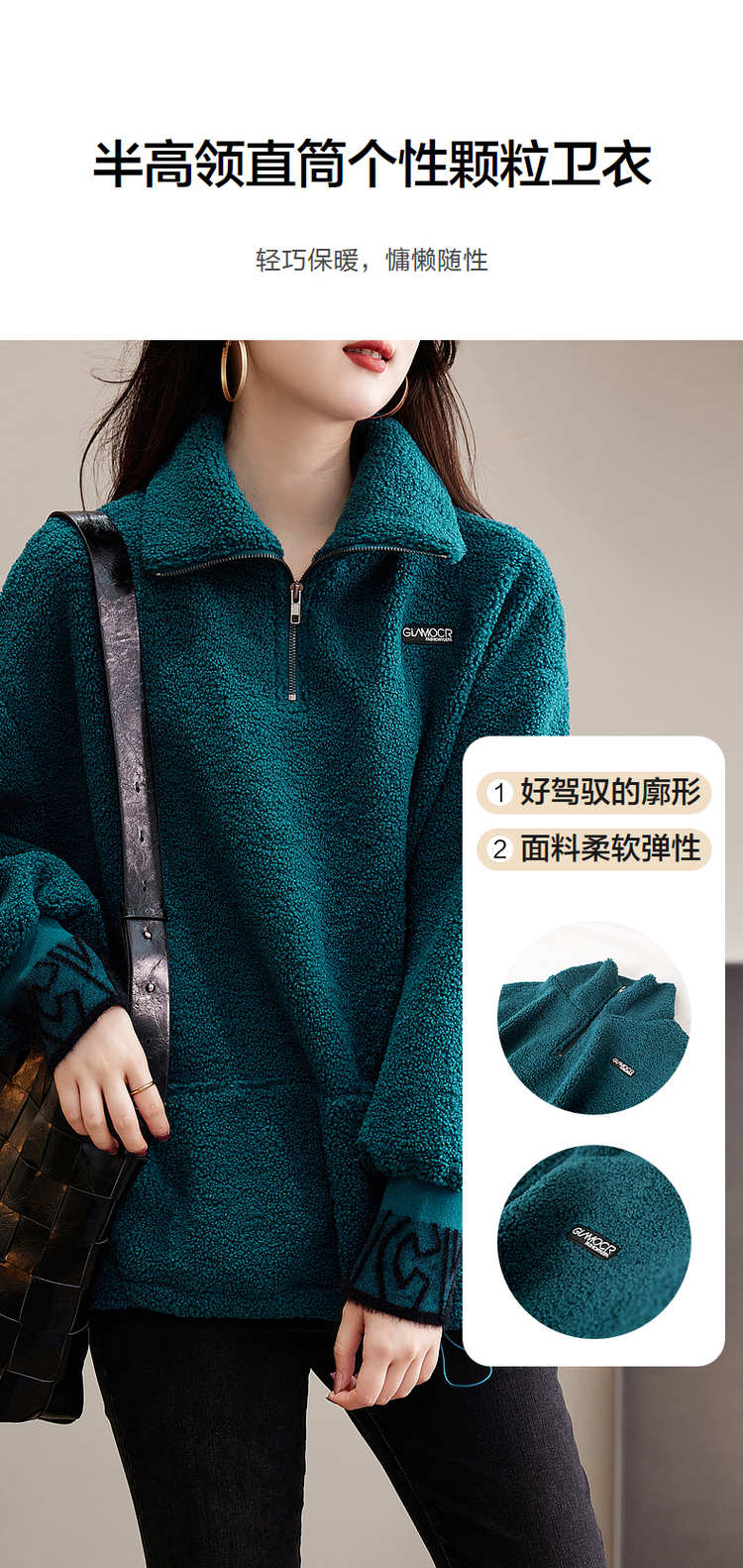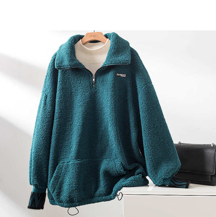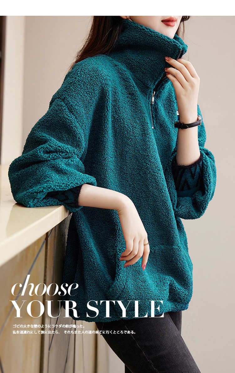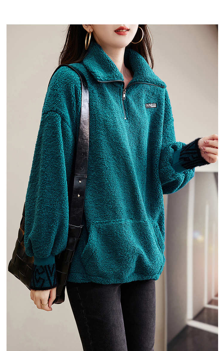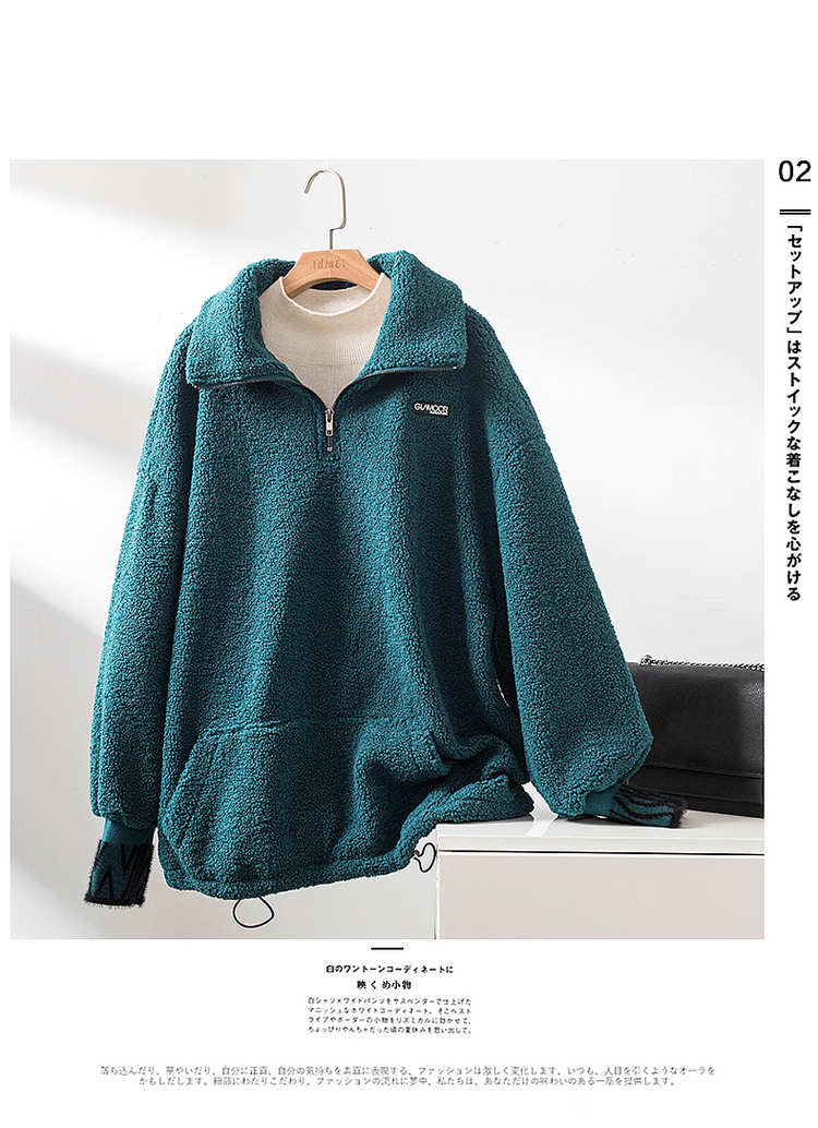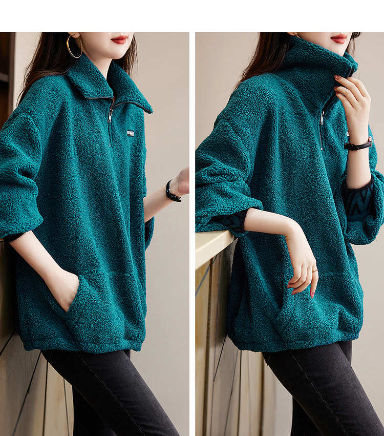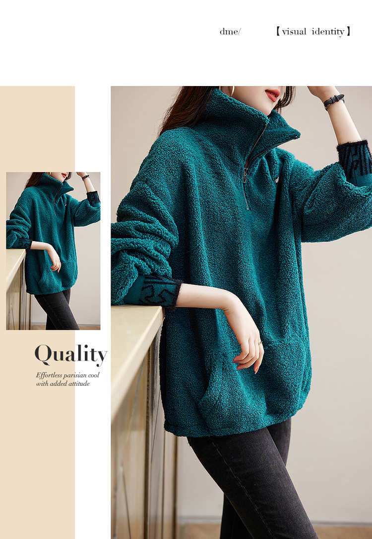 商品名称:【长袖卫衣】冬季通勤翻领BF宽松落肩撞色抽绳长袖卫衣女 528193