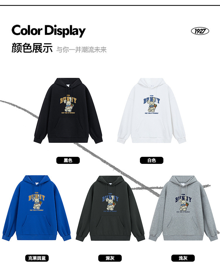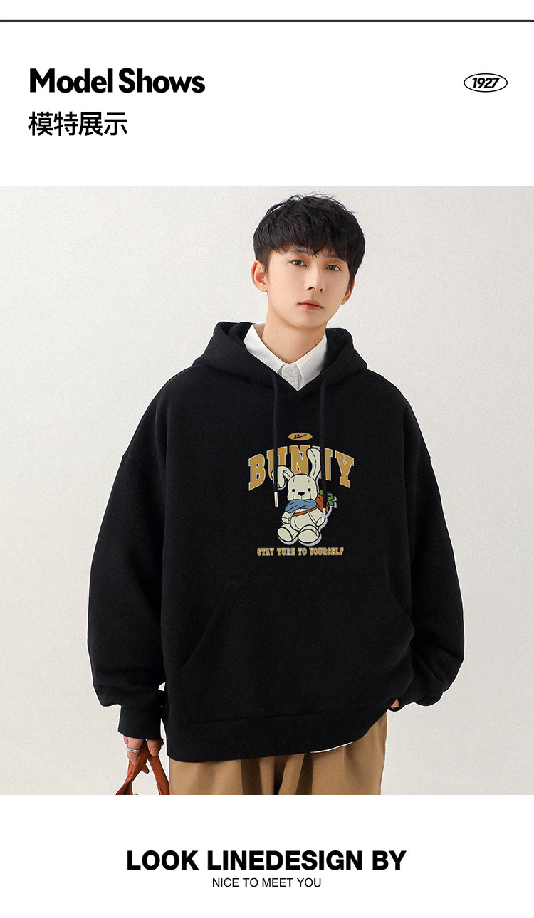 商品名称:连帽卫衣男女春秋季潮牌ins宽松情侣外套港风男生纯色休闲上衣 620627