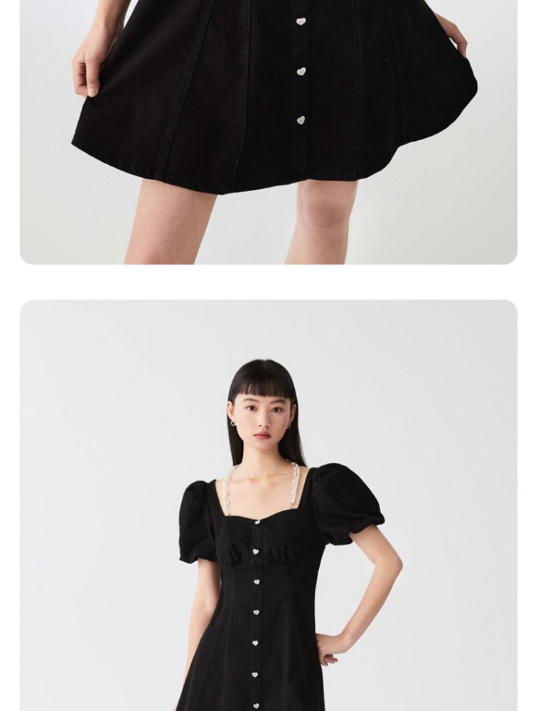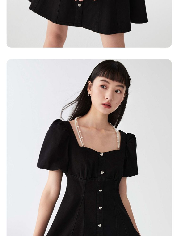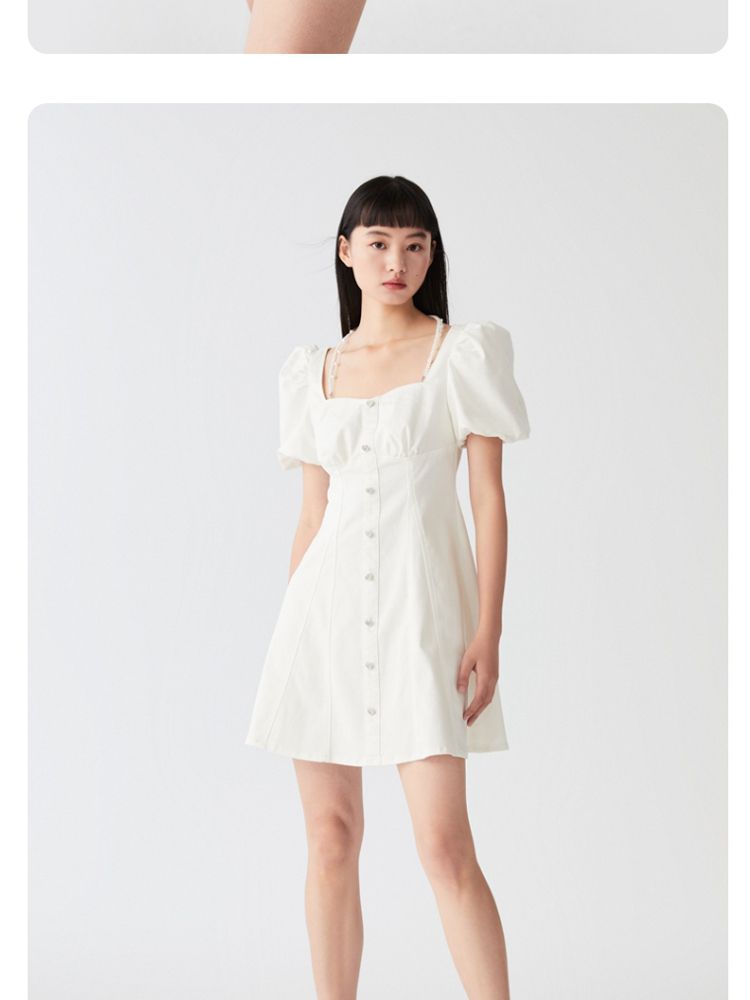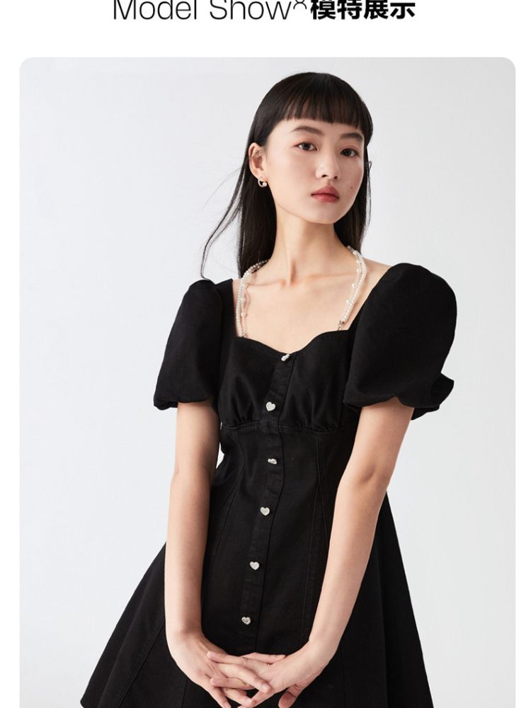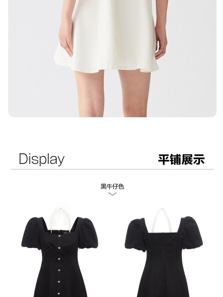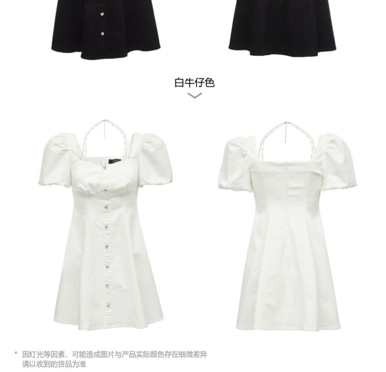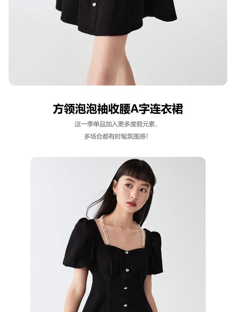 商品名称:【专柜款夏】春夏方领泡泡袖收腰A字裙牛仔裙连衣裙气质百搭时尚 183185