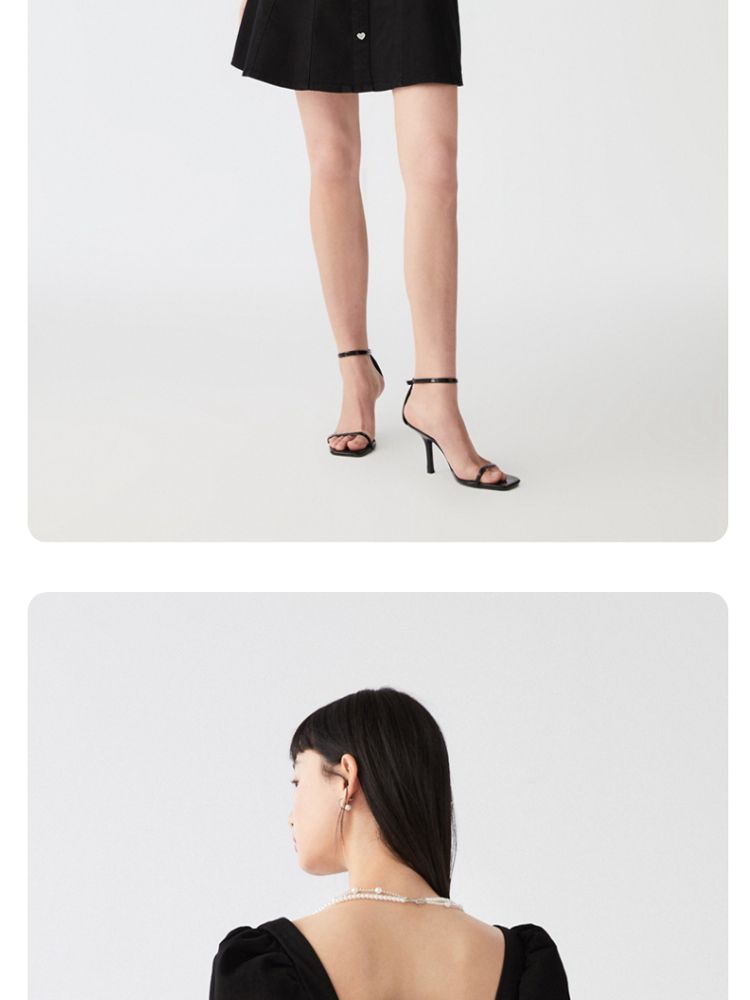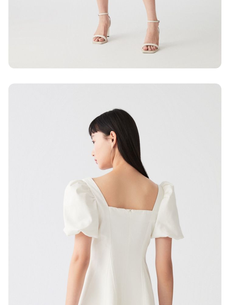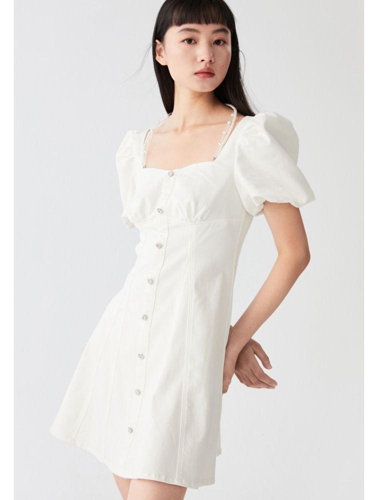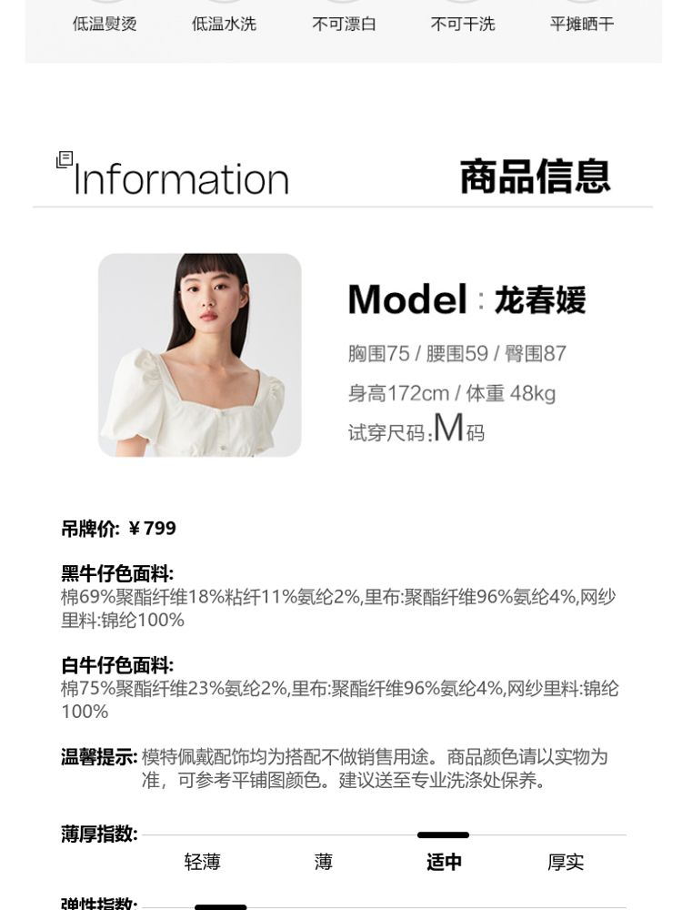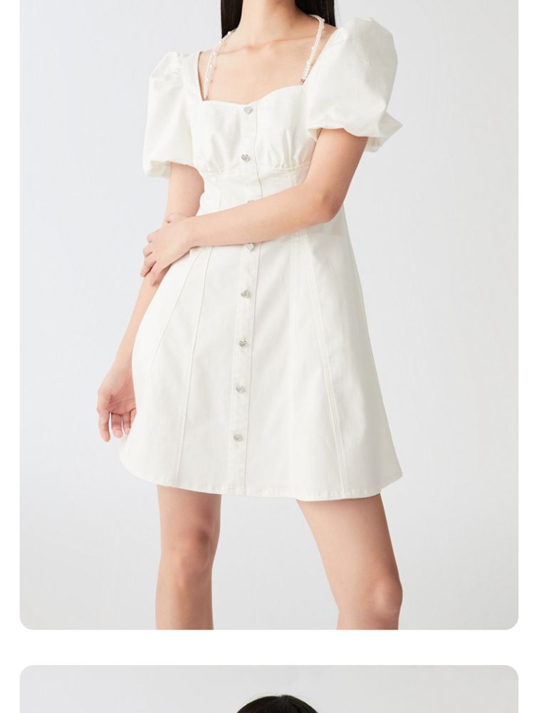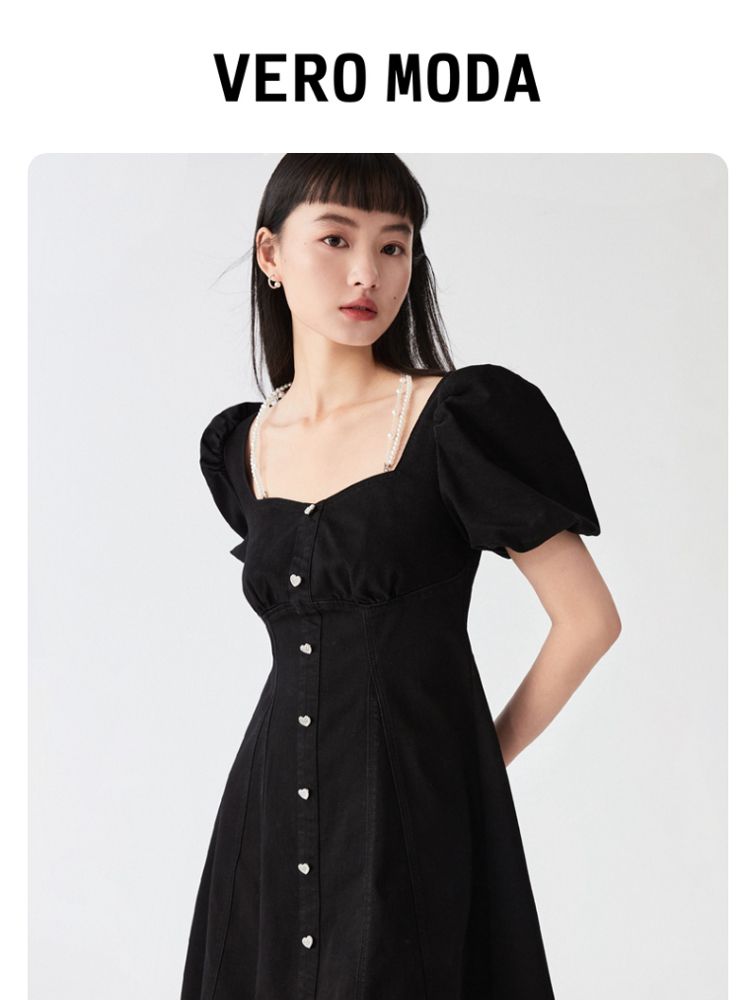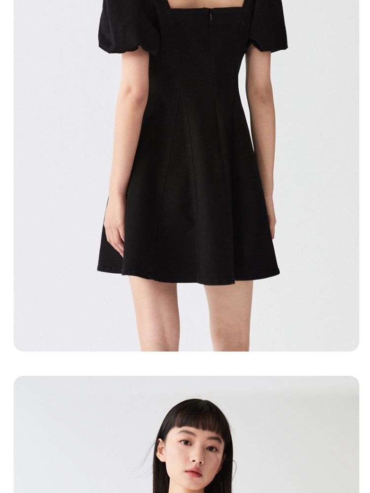 商品名称:【专柜款夏】春夏方领泡泡袖收腰A字裙牛仔裙连衣裙气质百搭时尚 183185