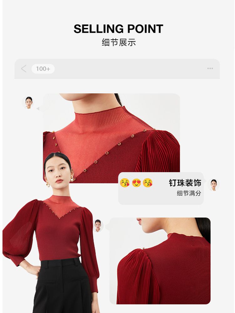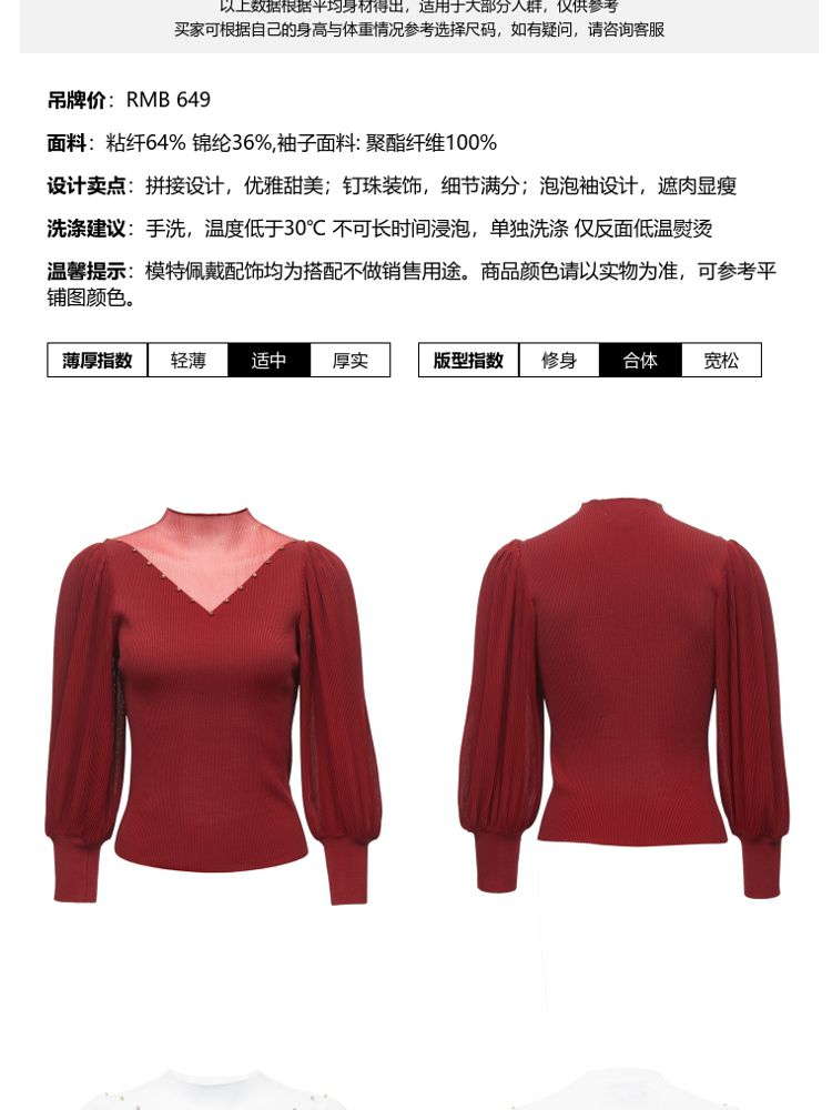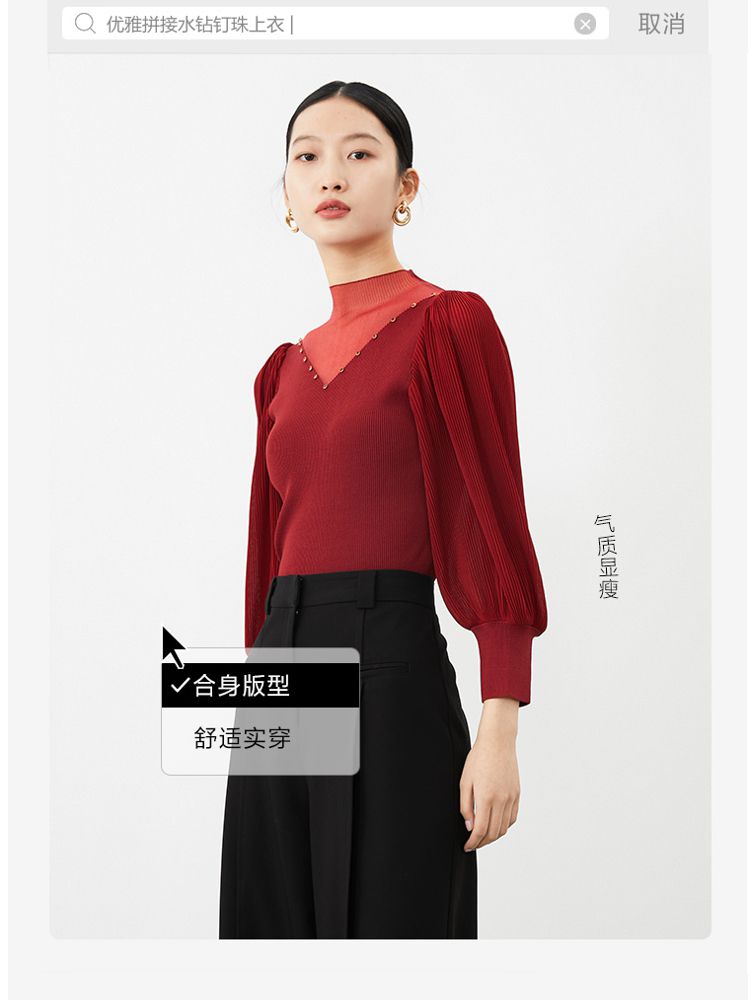 商品名称:优雅拼接水钻钉珠针织衫女气质百搭时尚春夏 698065