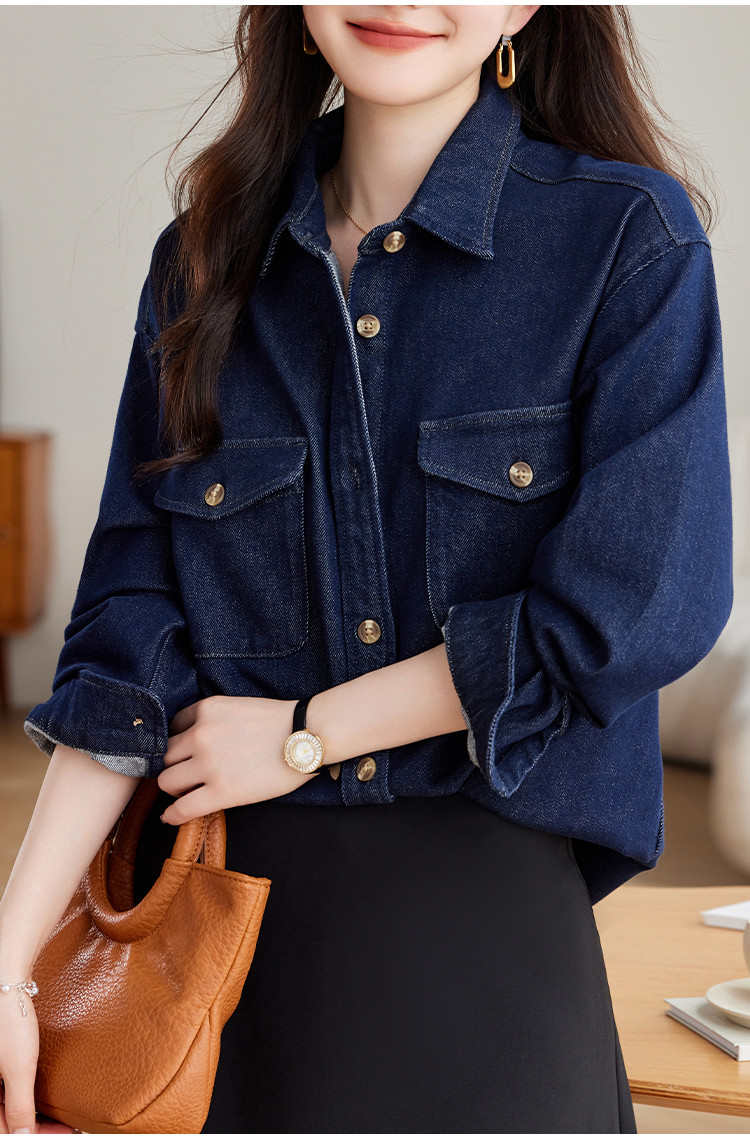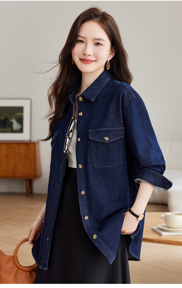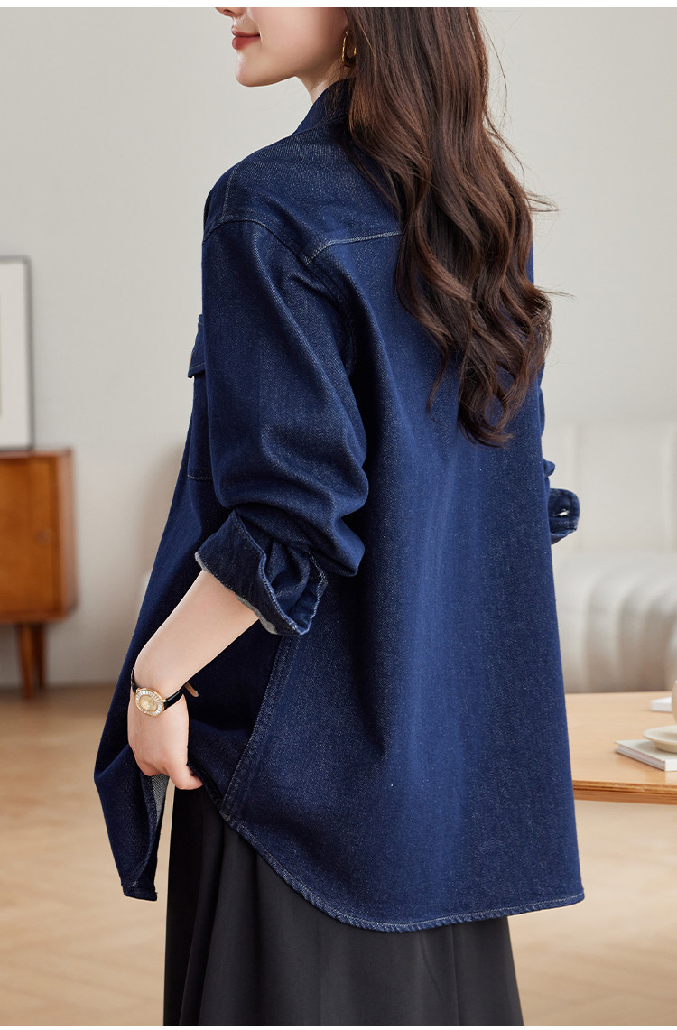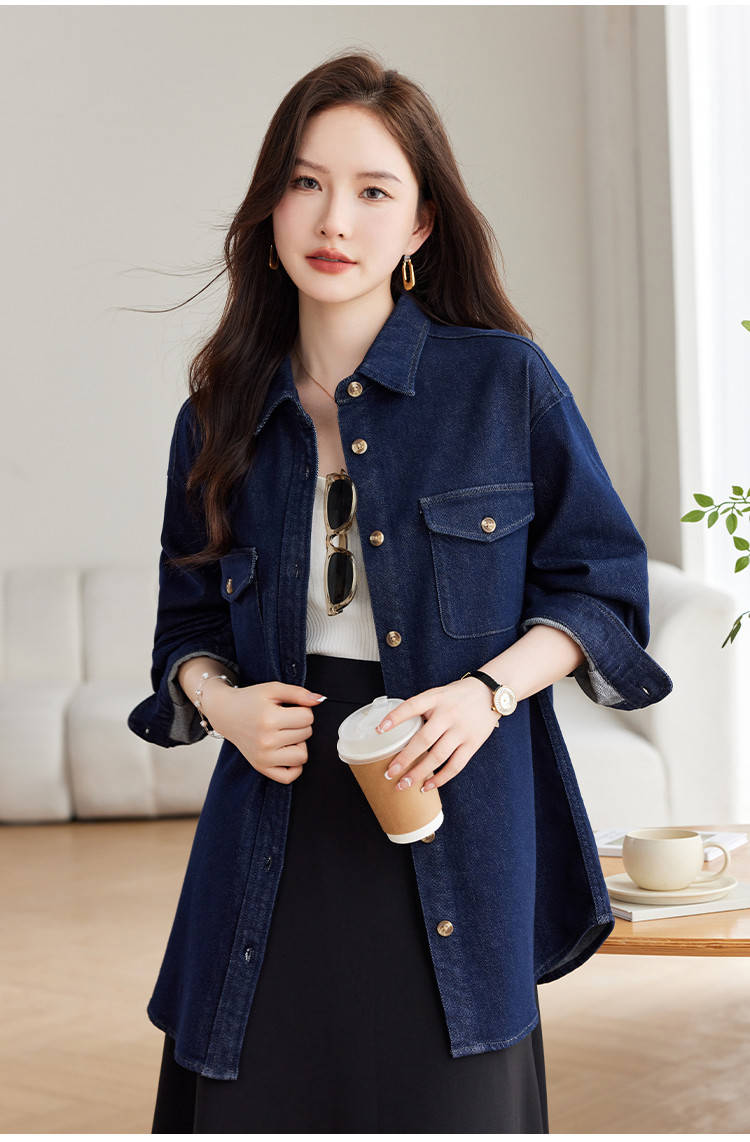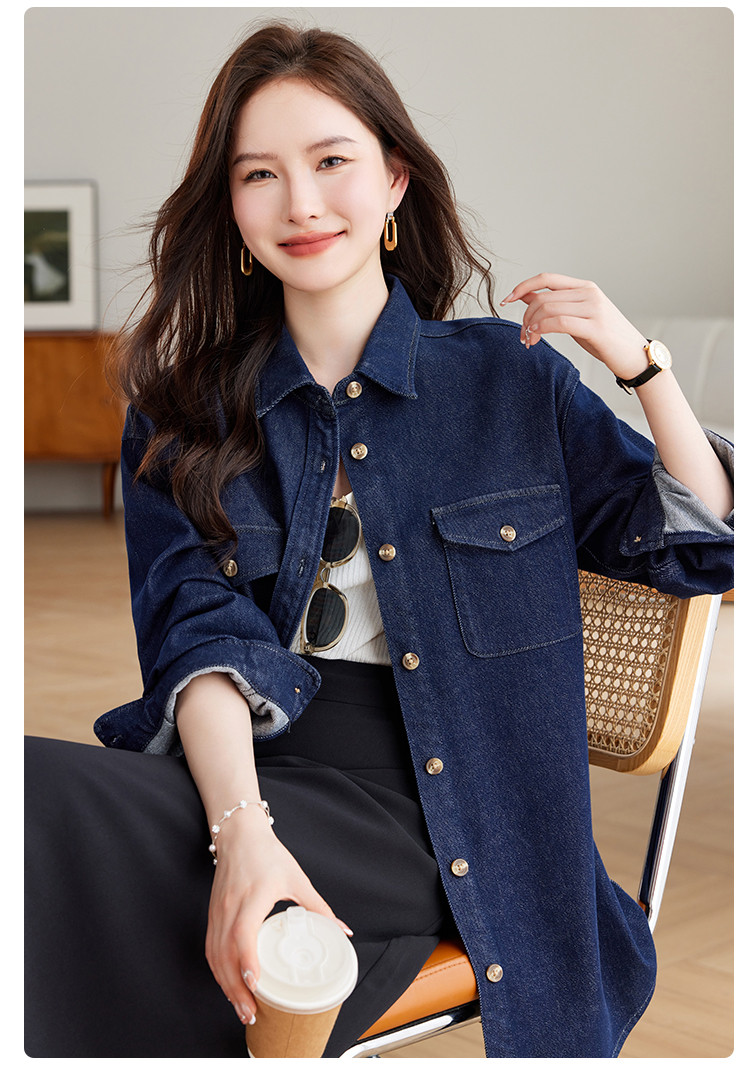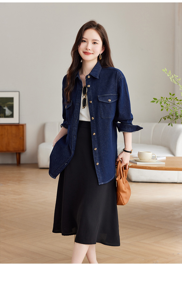 【不易褪色牛仔】春秋款女装显瘦水洗长袖牛仔外套女宽松上衣长款 396033