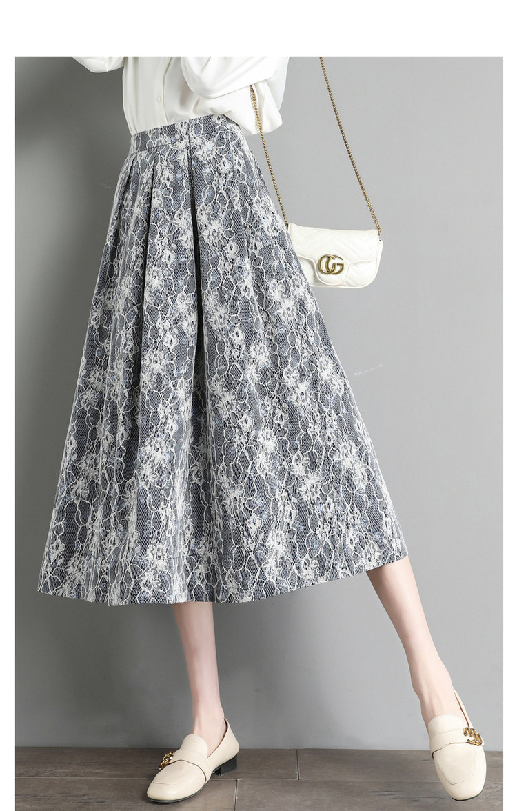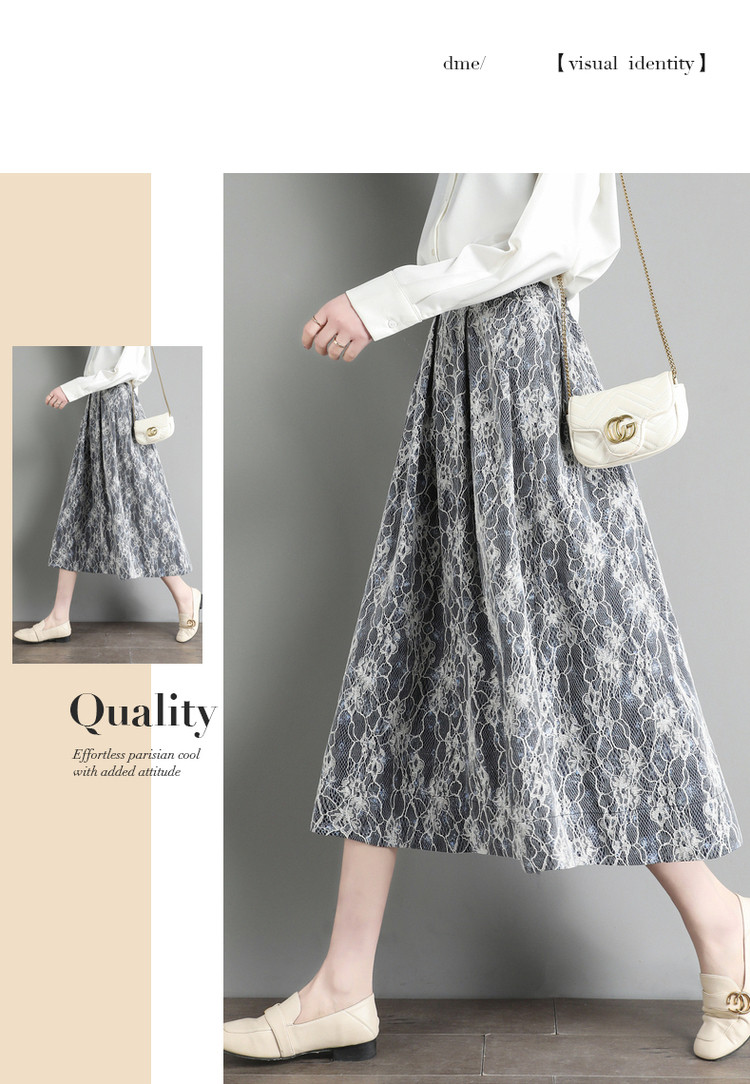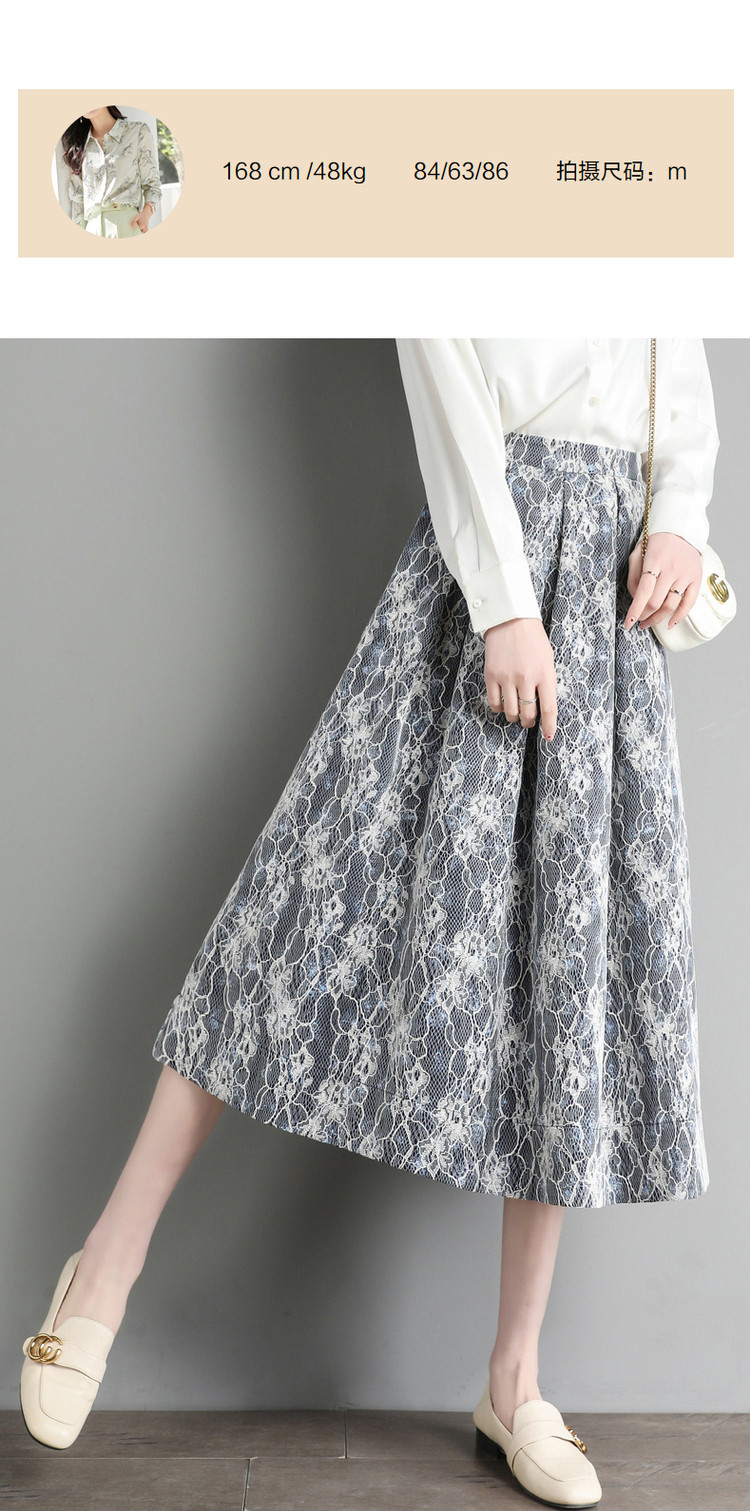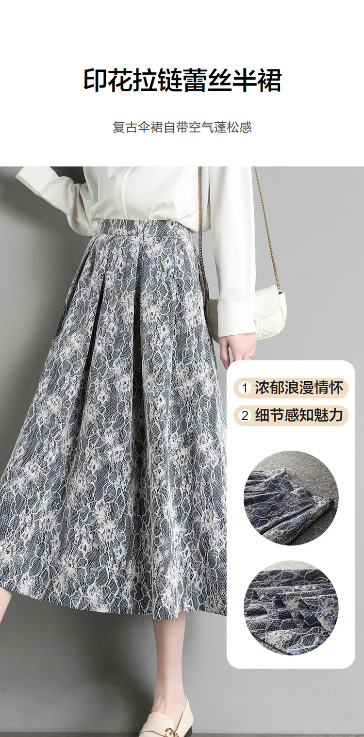 商品名称:【雪纺蕾丝伞裙】春秋对称工字褶印花半身裙女中长款 557761