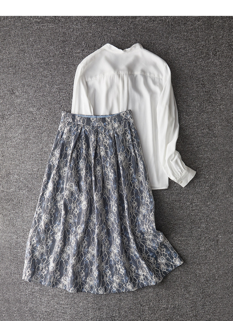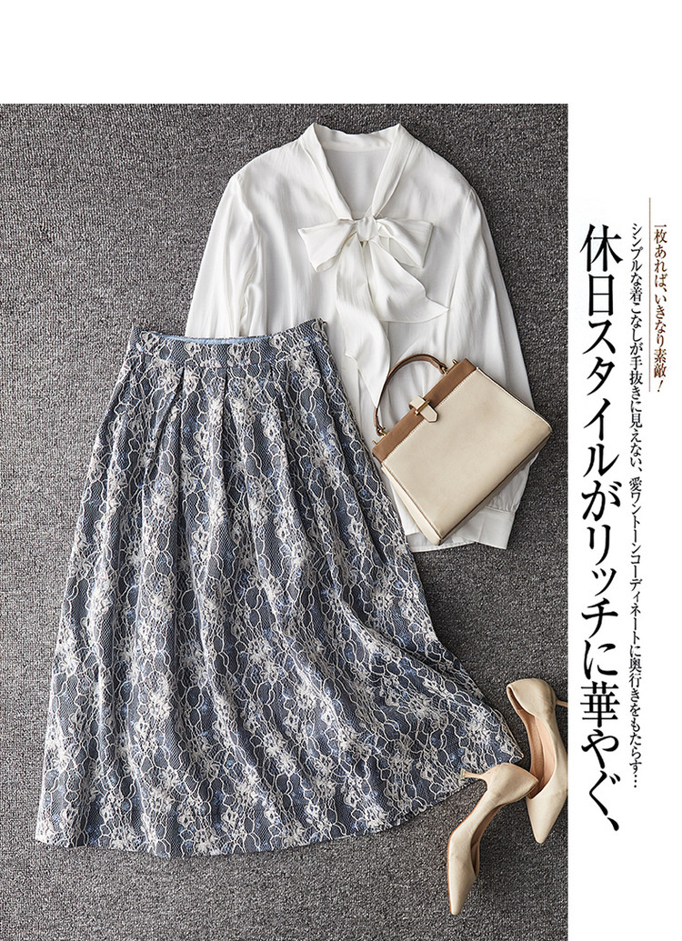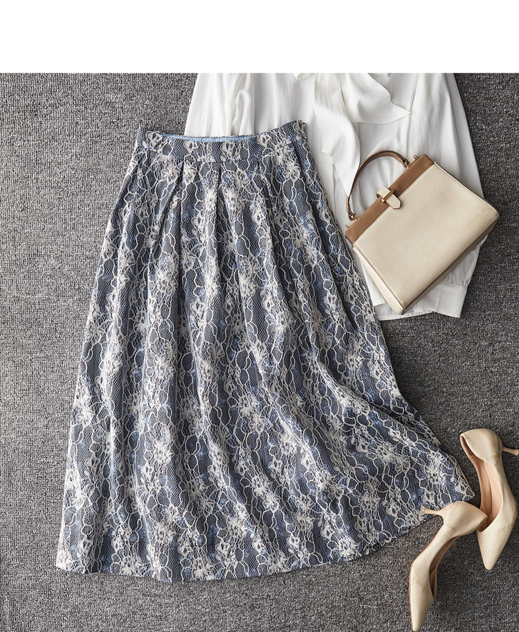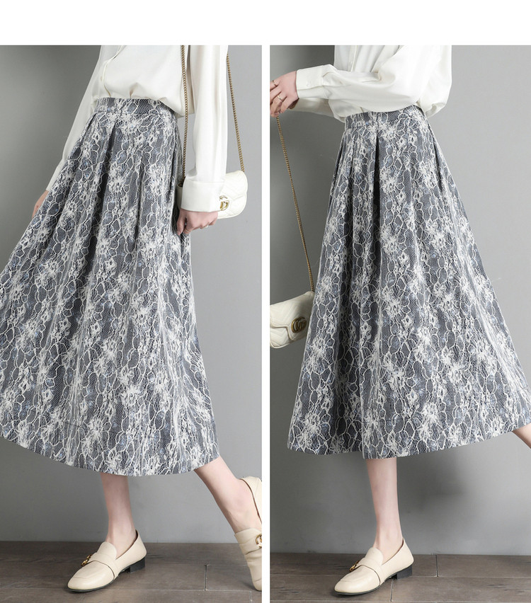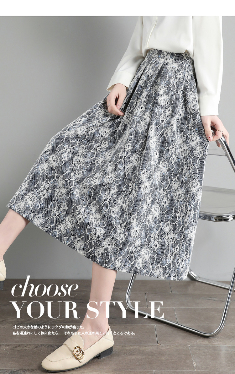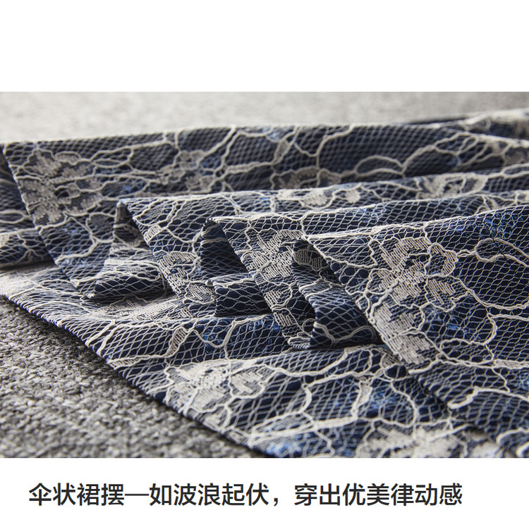 商品名称:【雪纺蕾丝伞裙】春秋对称工字褶印花半身裙女中长款 557761
