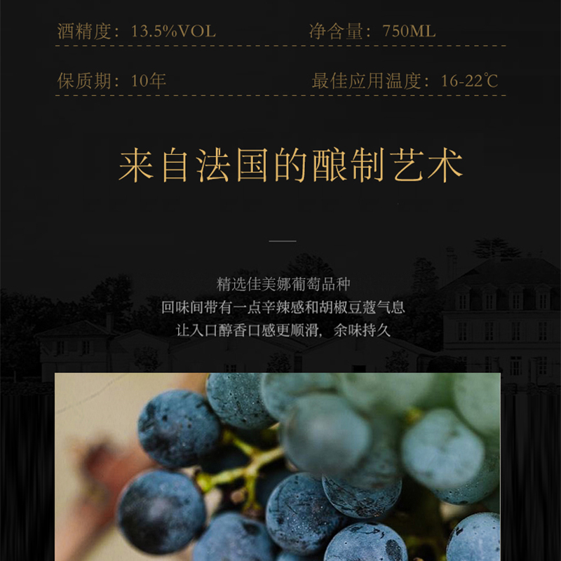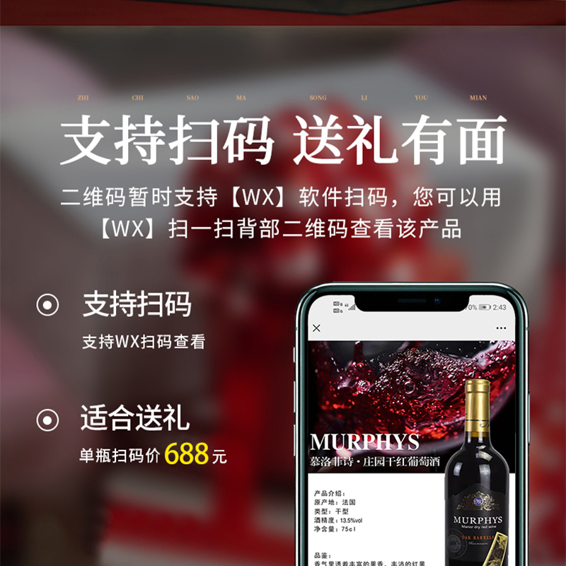 商品名称:法国进口慕洛菲诗庄园干红750ml*2瓶装赠木盒
