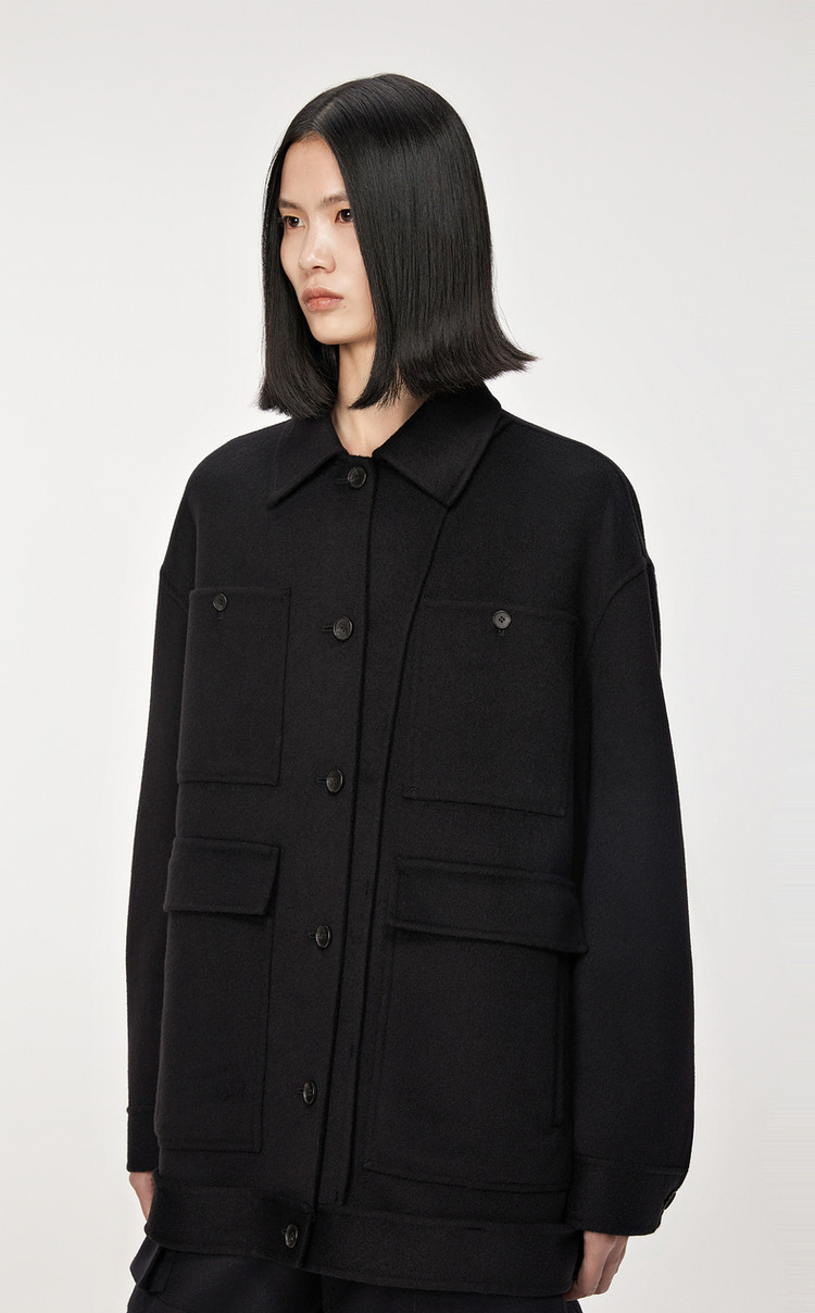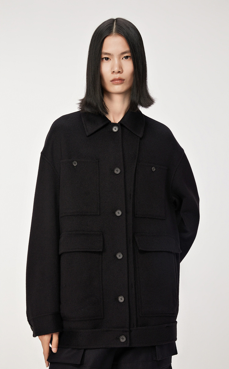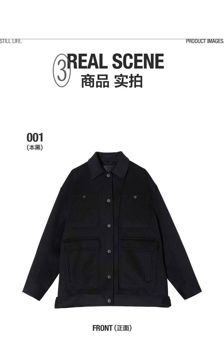 商品名称:冬毛呢夹克翻领宽松外套女 798411