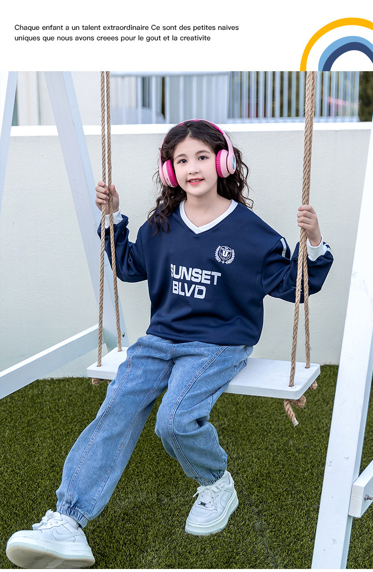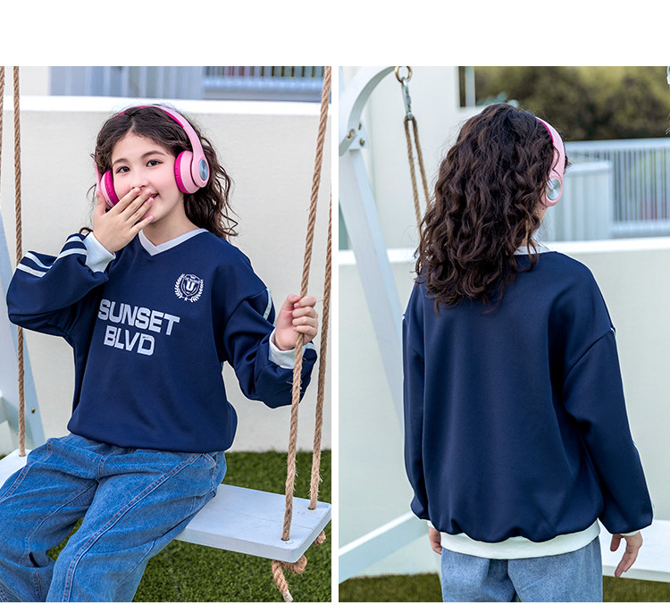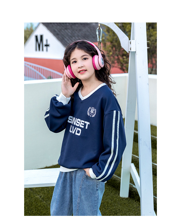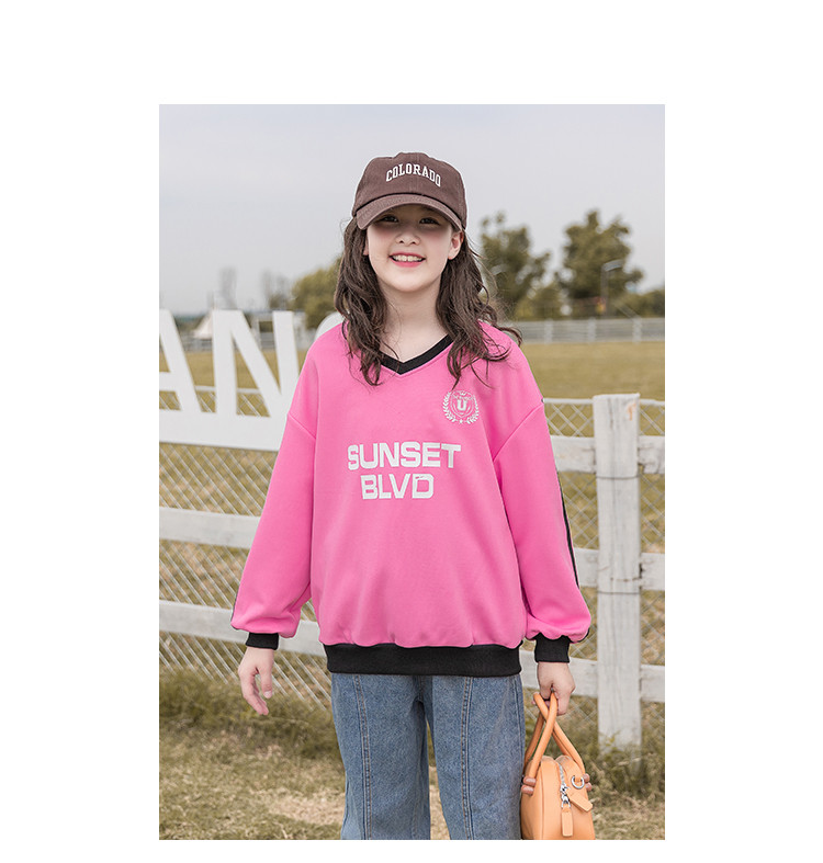 商品名称:【童装】春季女童中大童韩版时尚V领运动儿童卫衣 262227