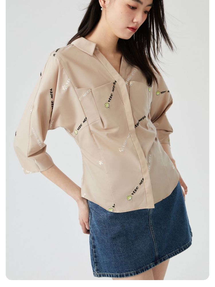 【蝙蝠七分袖】23春夏修身蝙蝠七分袖V领简约通勤 965201
