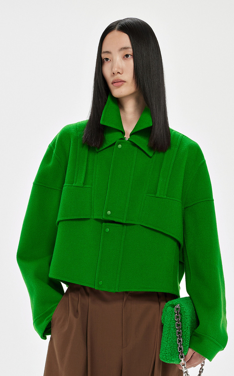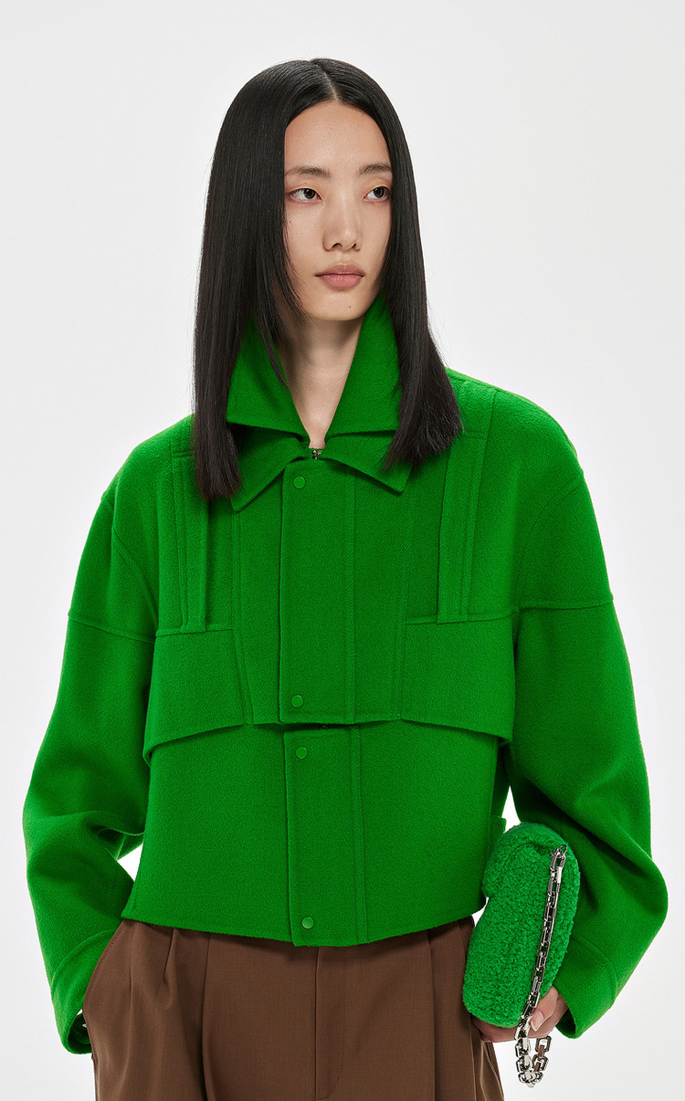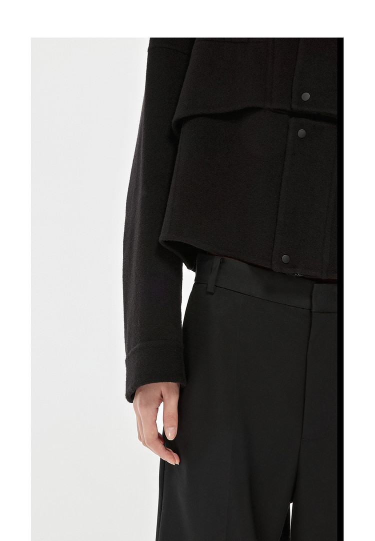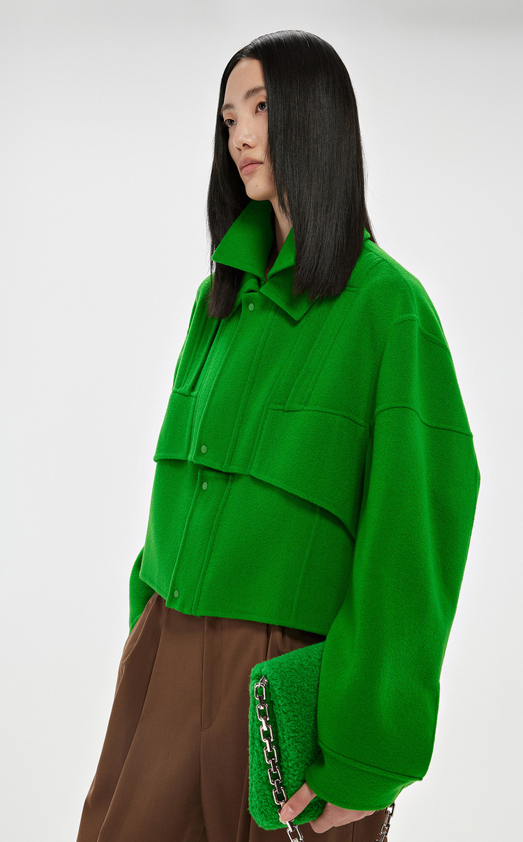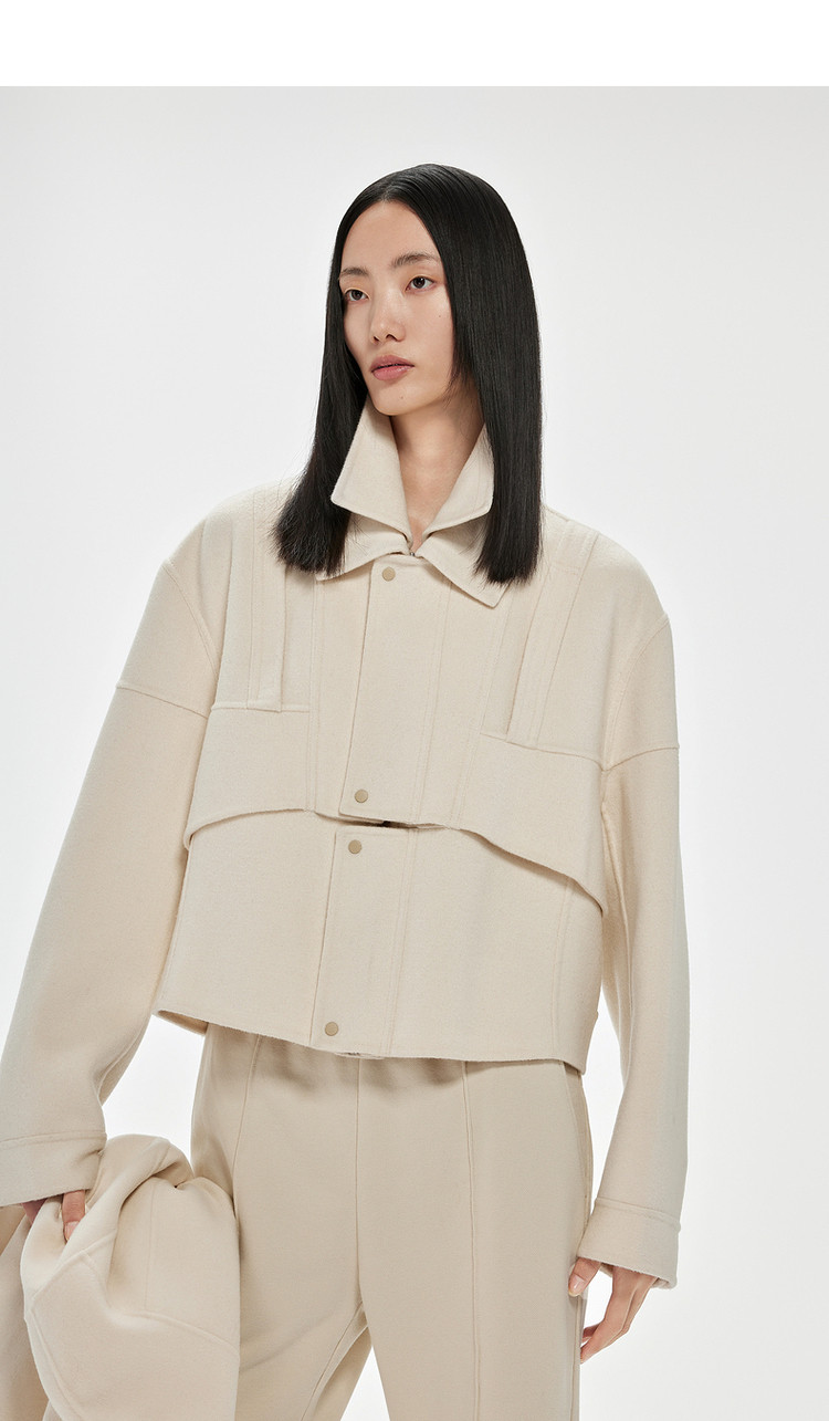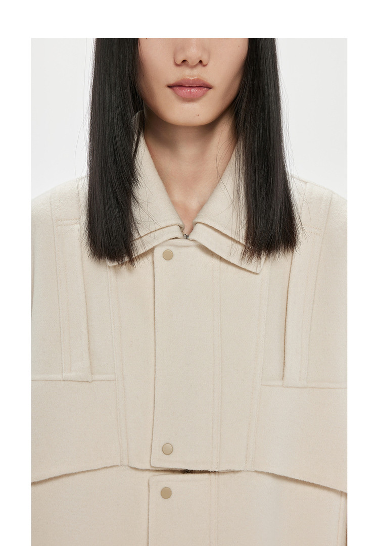 商品名称:秋夹克毛呢宽松翻领毛衫女 493323