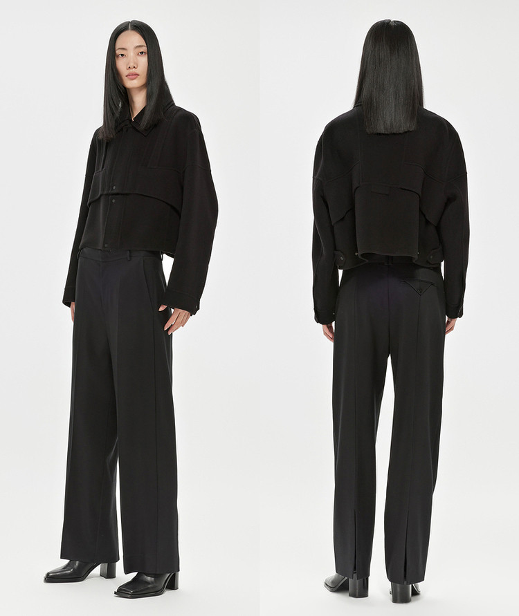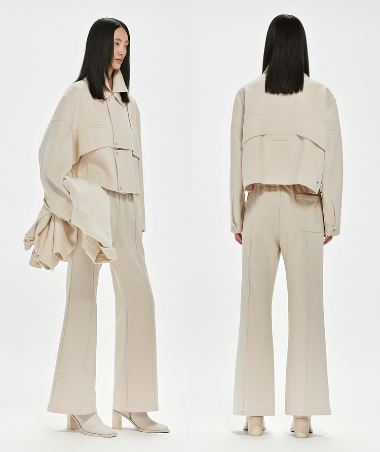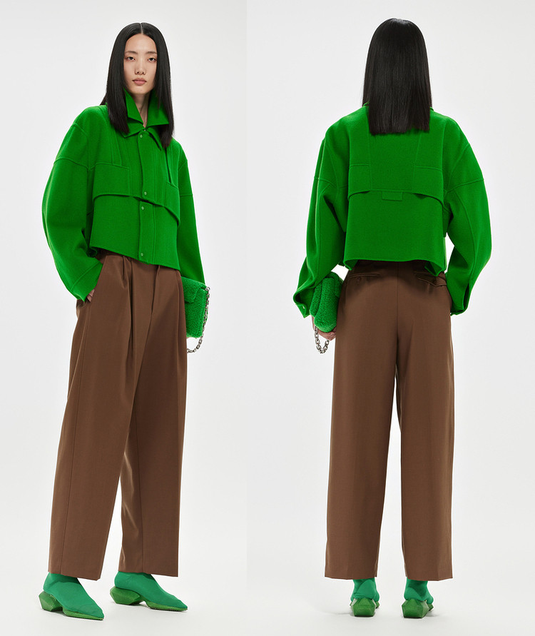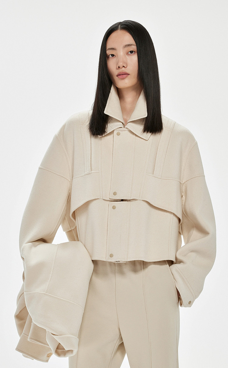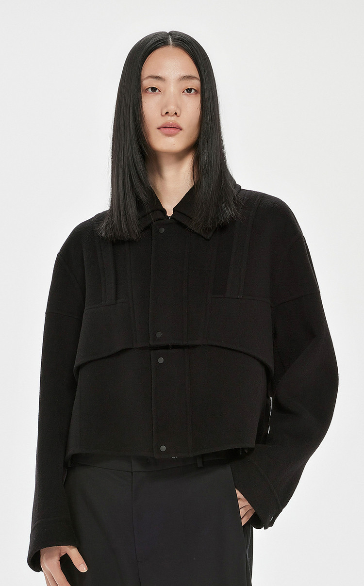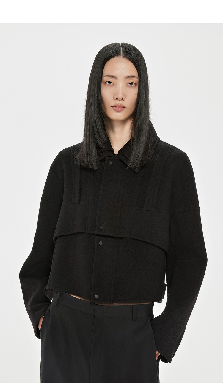 商品名称:秋夹克毛呢宽松翻领毛衫女 493323