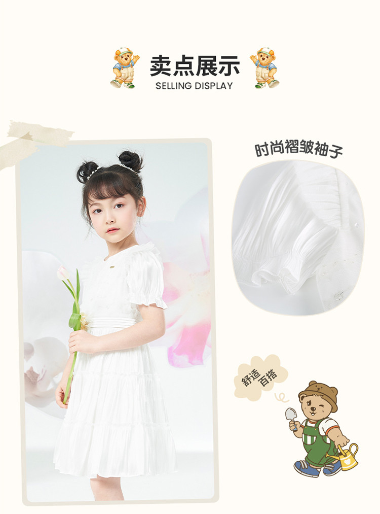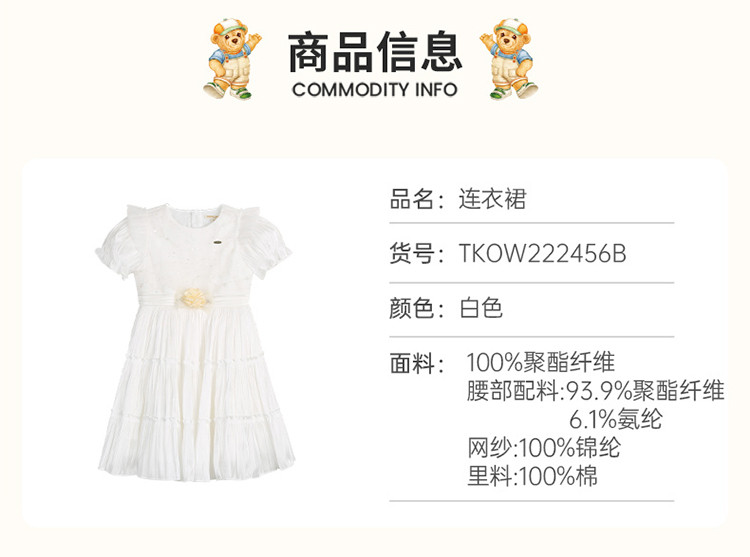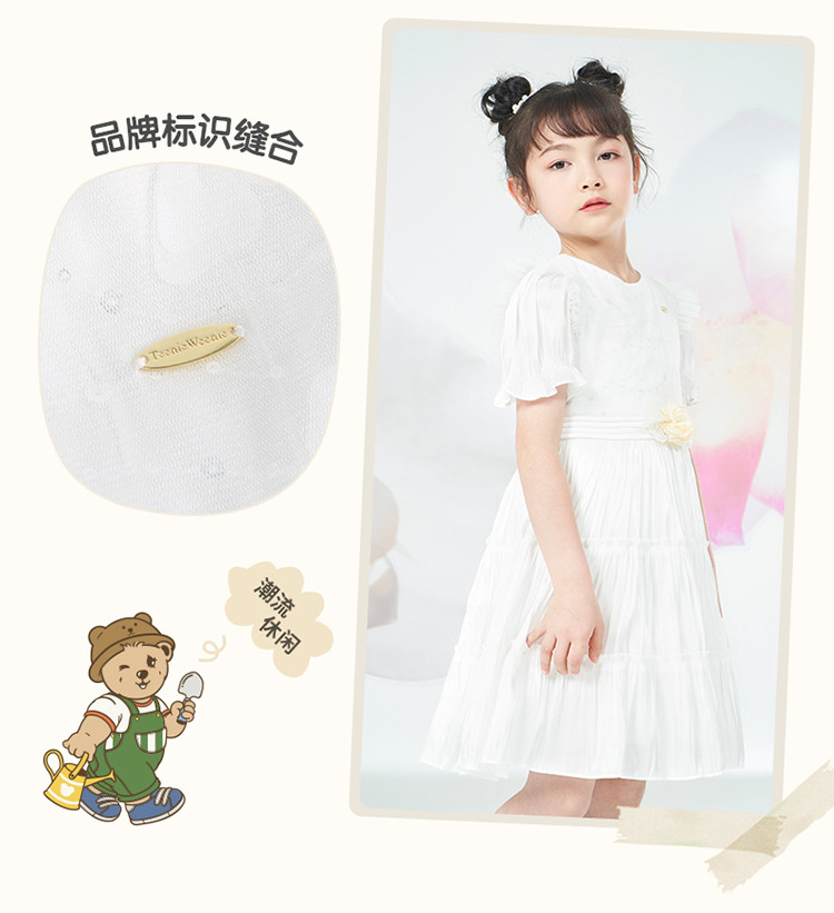 商品名称:小熊童装女童时尚圆领短袖连衣裙 943425