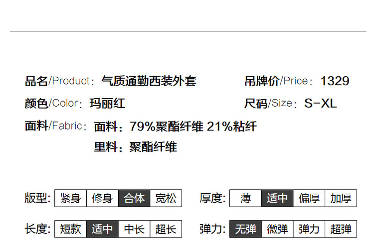 商品名称:【跳针走线工艺】春秋季翻驳领修身合体休闲西装外套女 018625