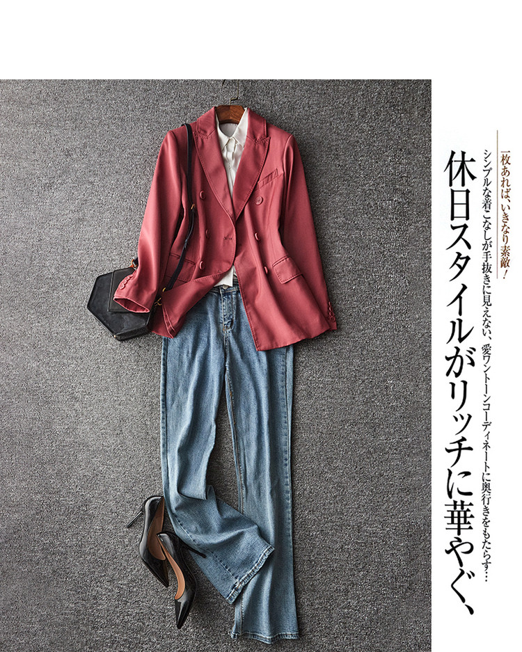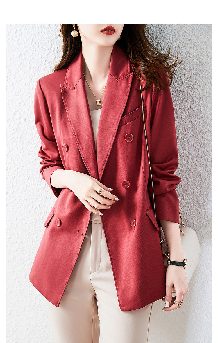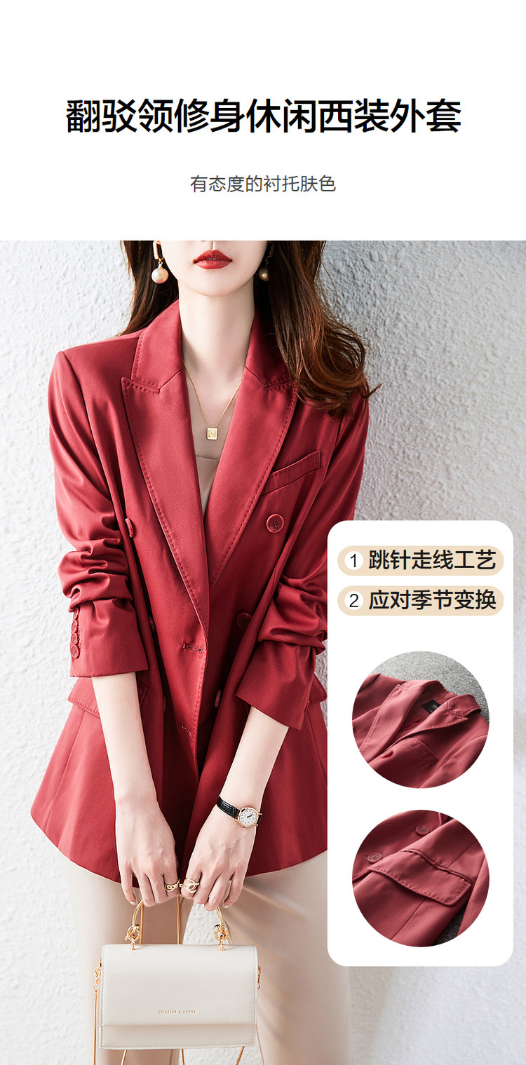 【跳针走线工艺】春秋季翻驳领修身合体休闲西装外套女 018625