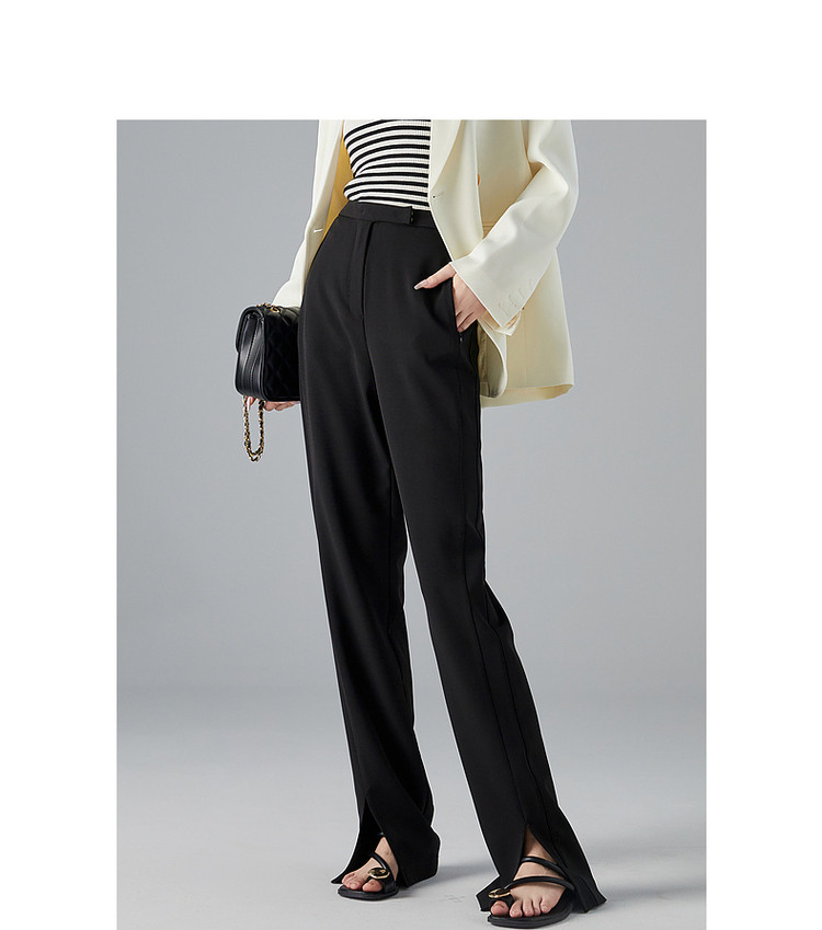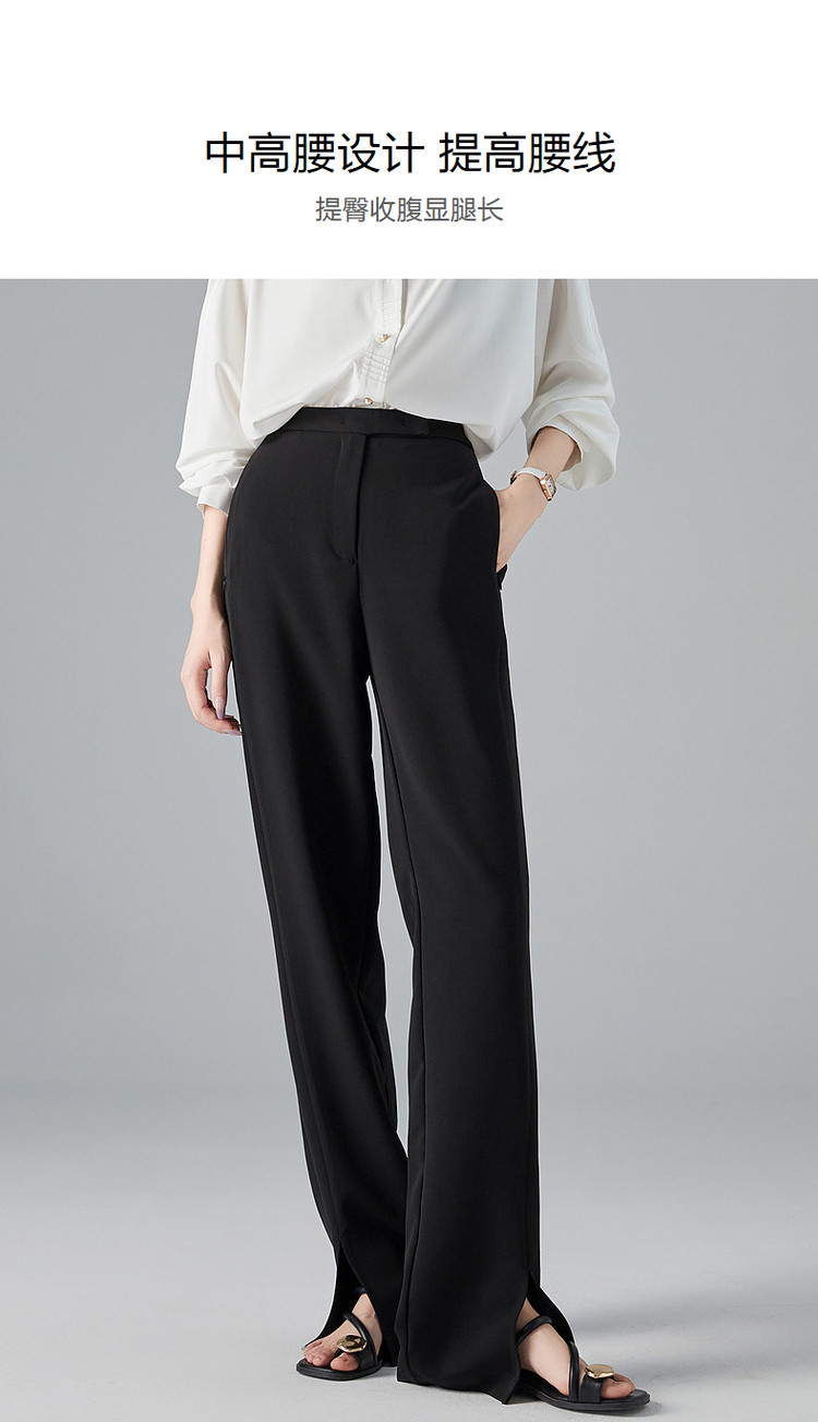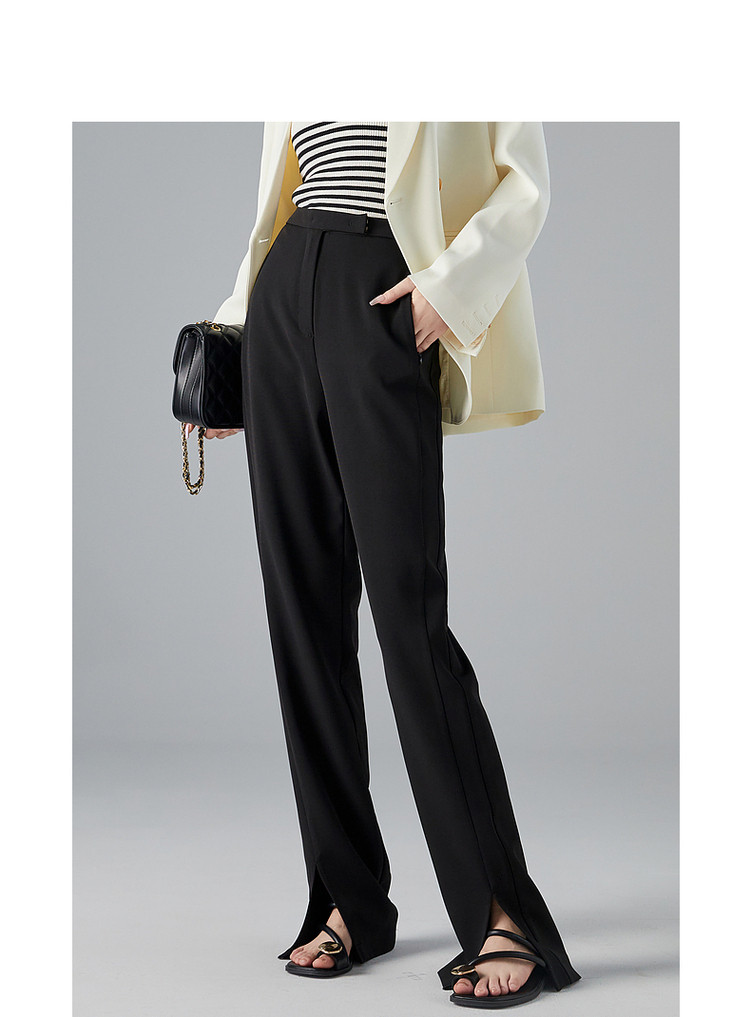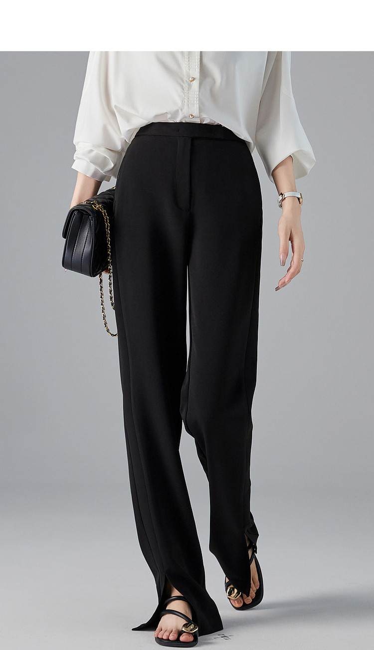 商品名称:【OL简约风长裤】秋高腰开衩微弹女裤子女休闲裤 782593