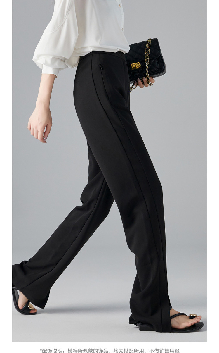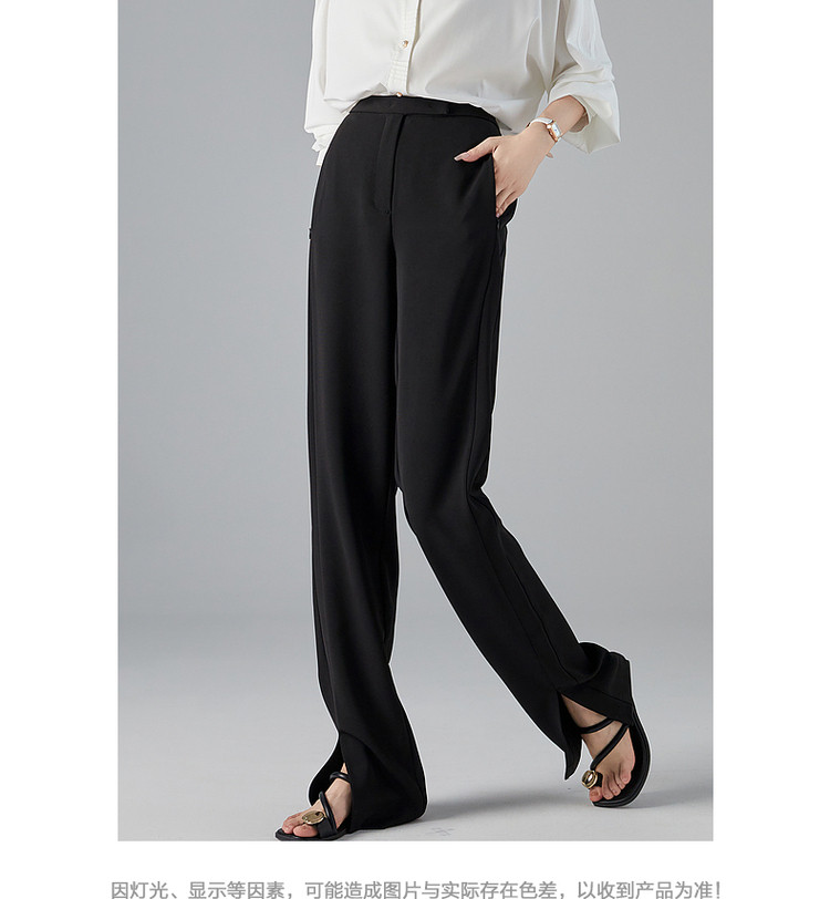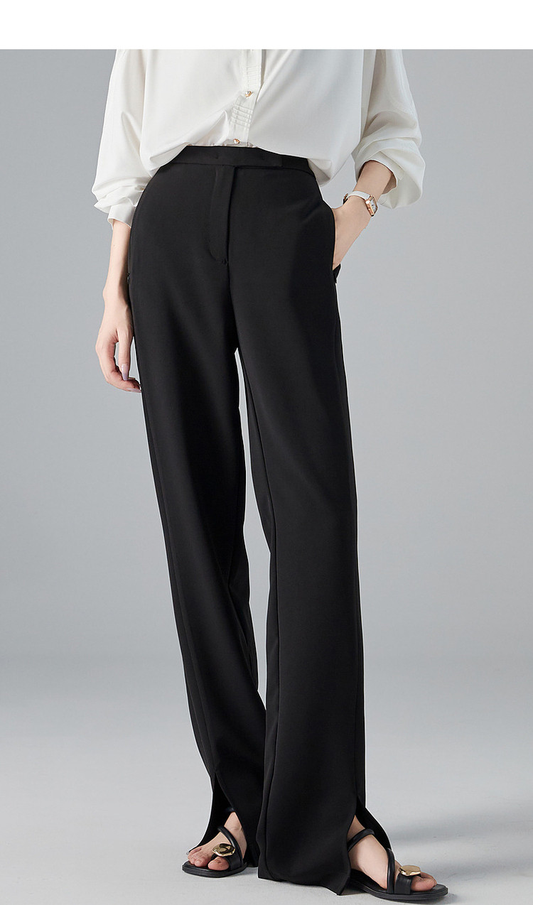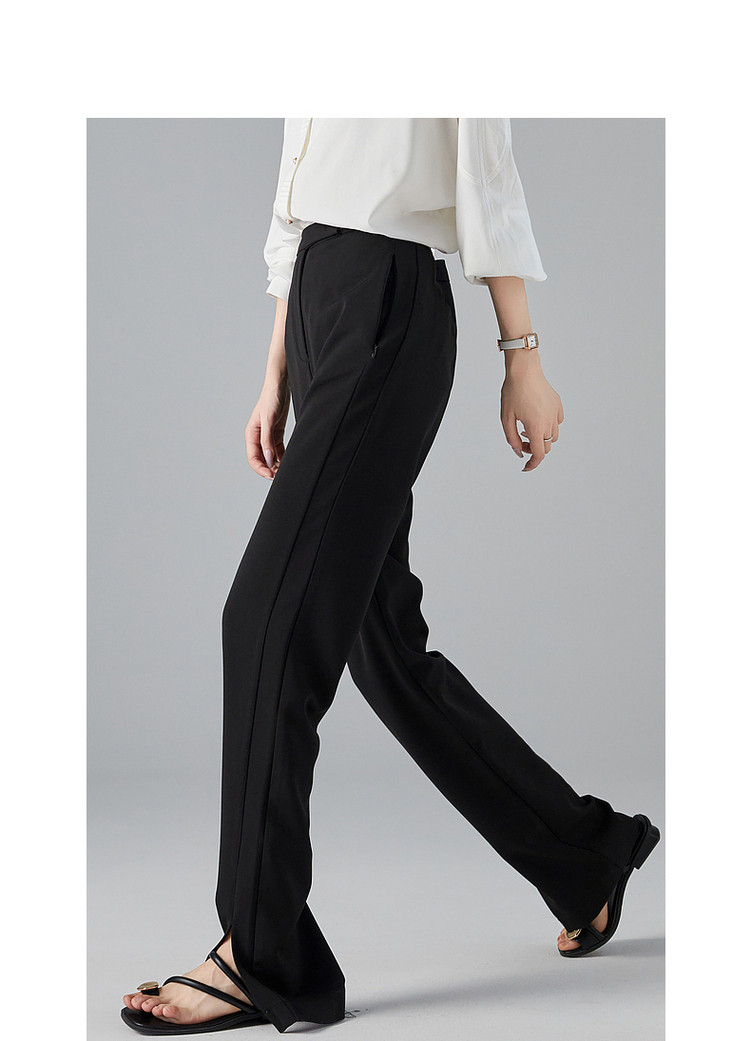 商品名称:【OL简约风长裤】秋高腰开衩微弹女裤子女休闲裤 782593